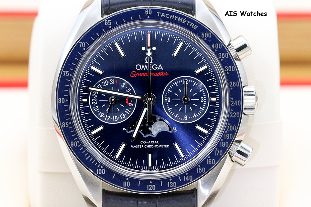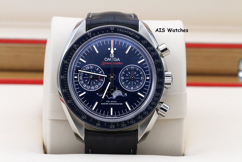** Omega Speedmaster 44.25MM Co-Axial Master Chronograph MoonPhase - Blue Dial on Leather Strap