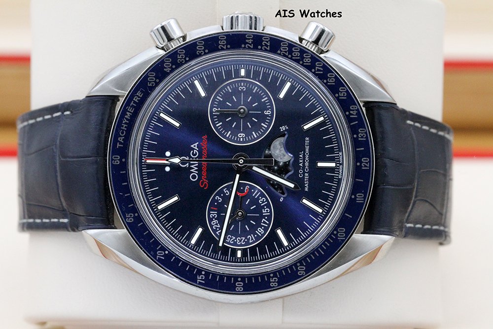 ** Omega Speedmaster 44.25MM Co-Axial Master Chronograph MoonPhase - Blue Dial on Leather Strap