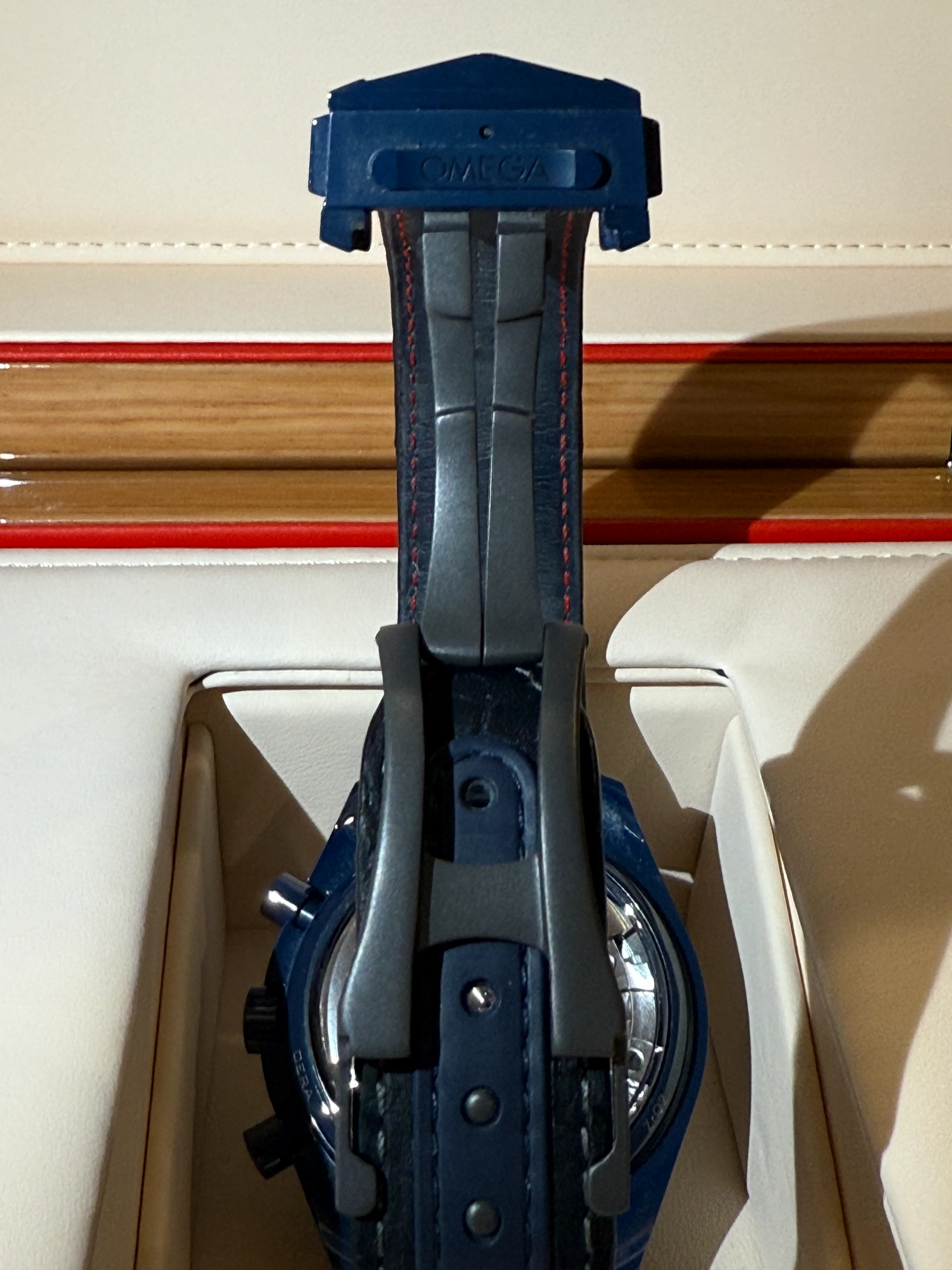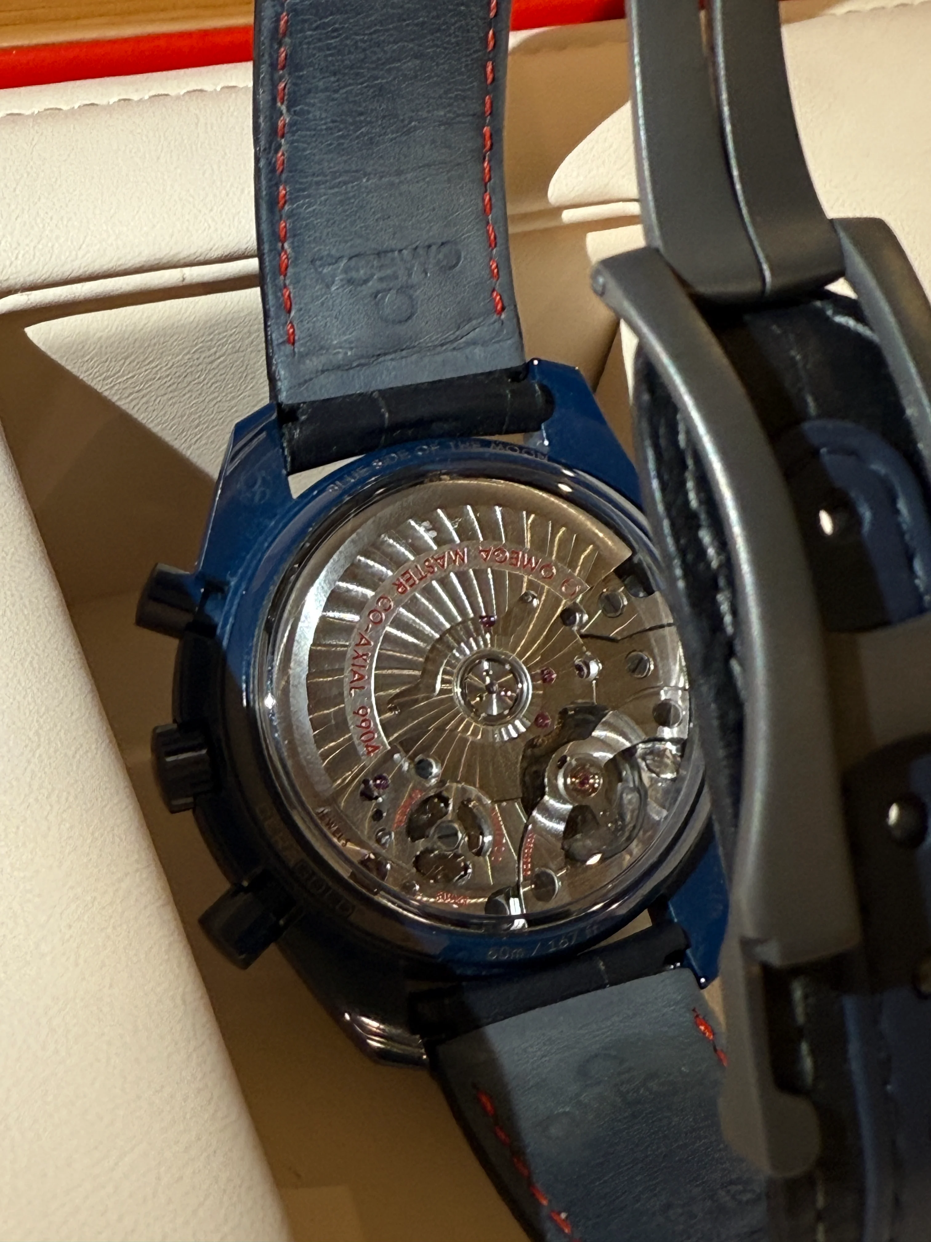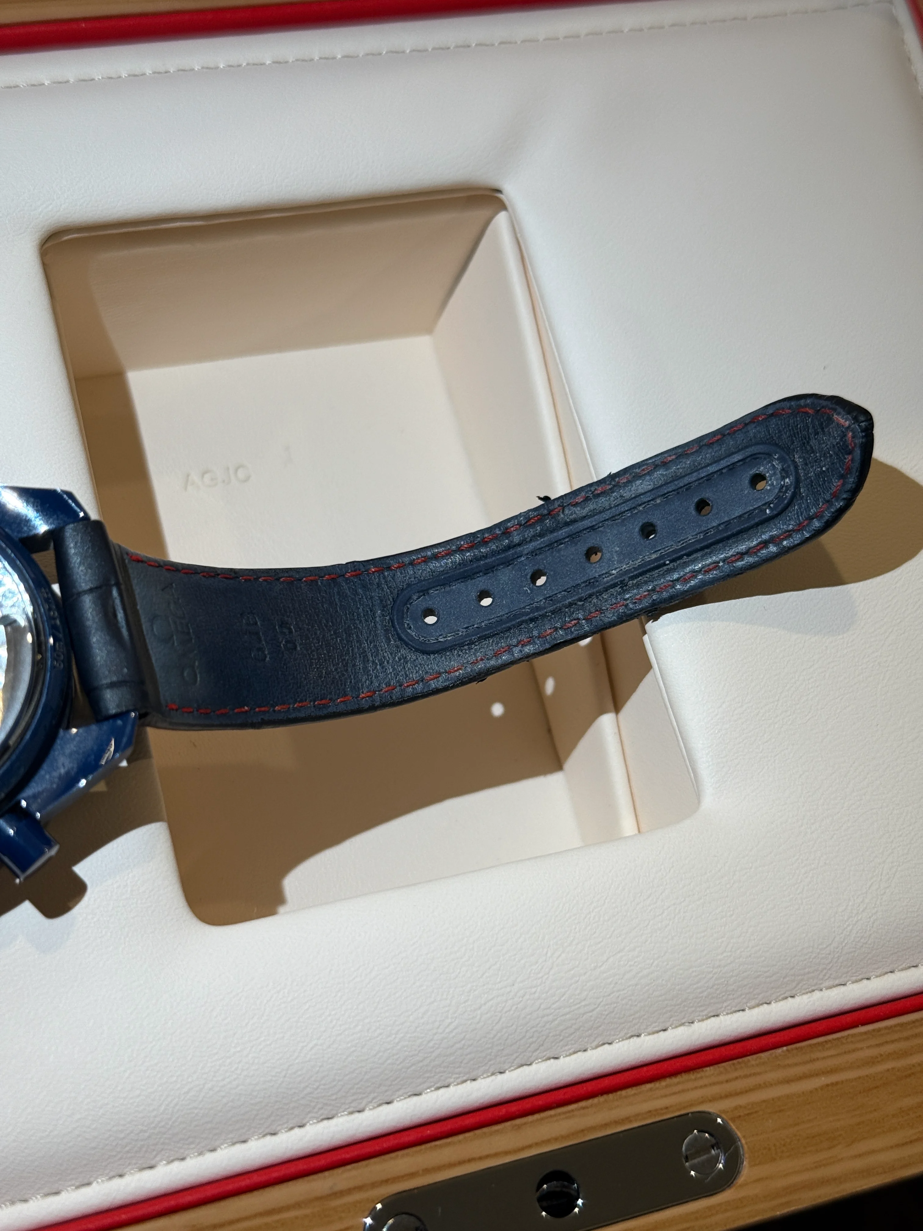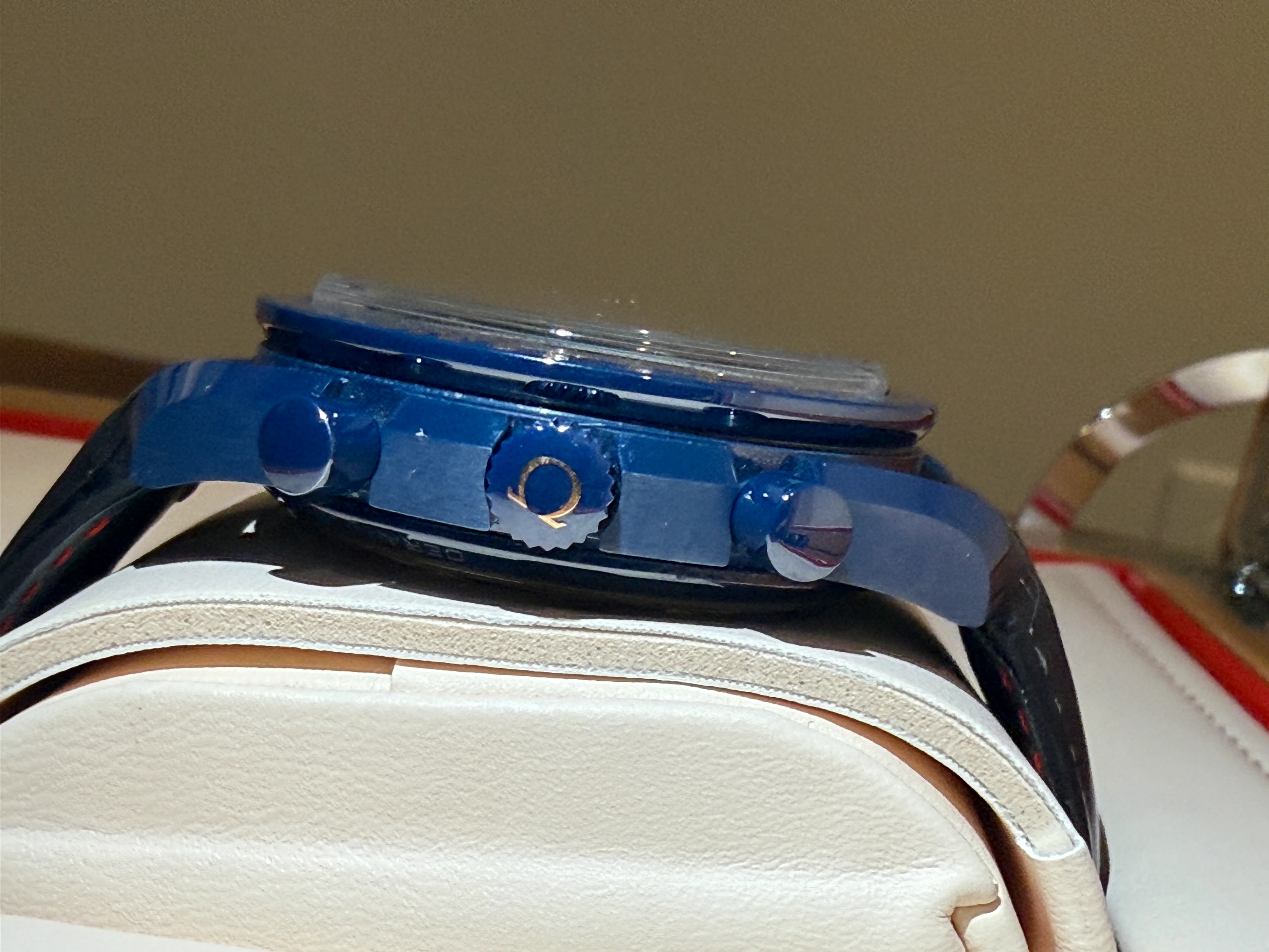 ·Up for sale is an Omega Speedmaster 44.25MM Co-Axial Master Chronograph MoonPhase Caramic Blue Side Of The Moon Aventurine Dial 304.93.44.52.03.002 on Leather Strap Box with International Warranty Card. The timepiece is in excellent condition.