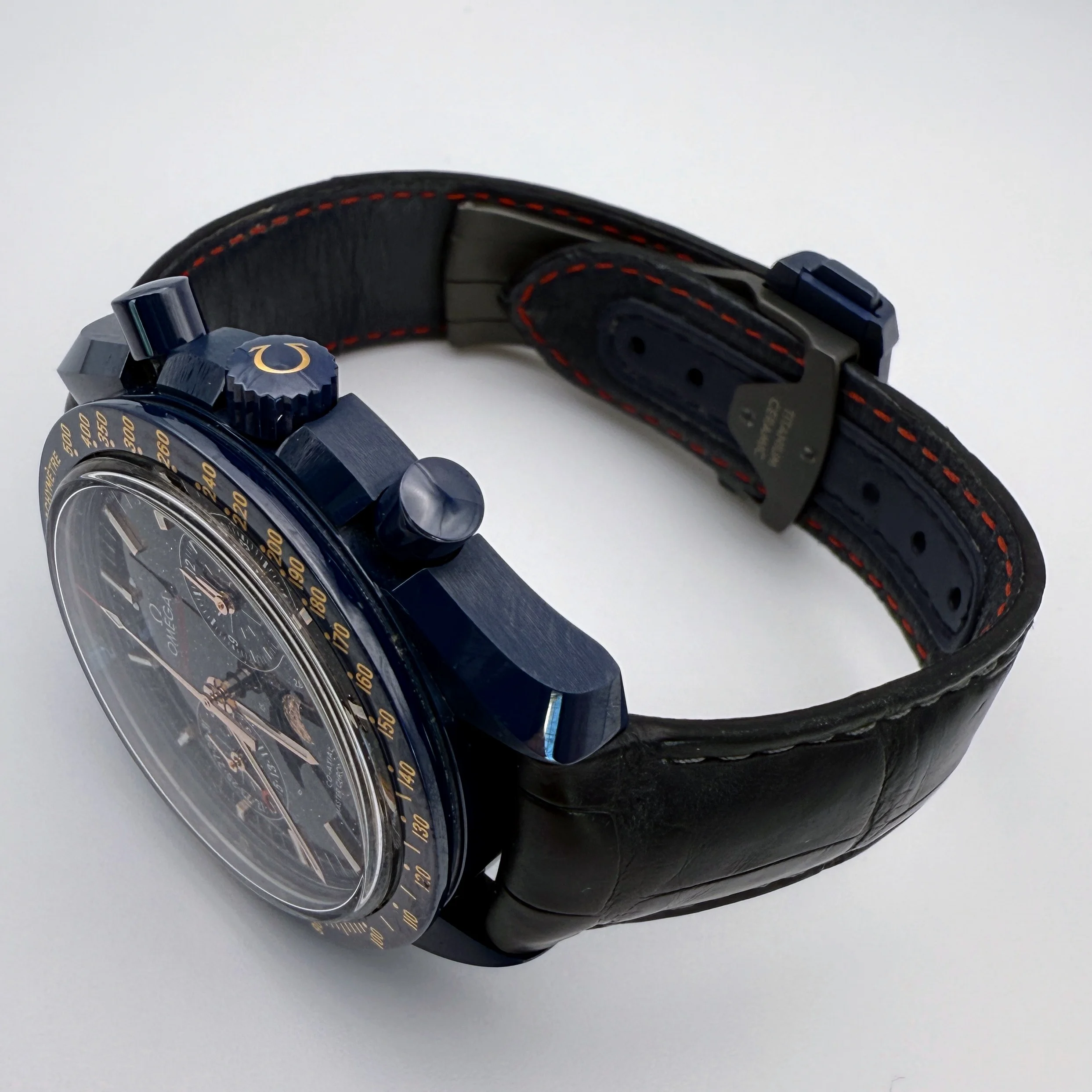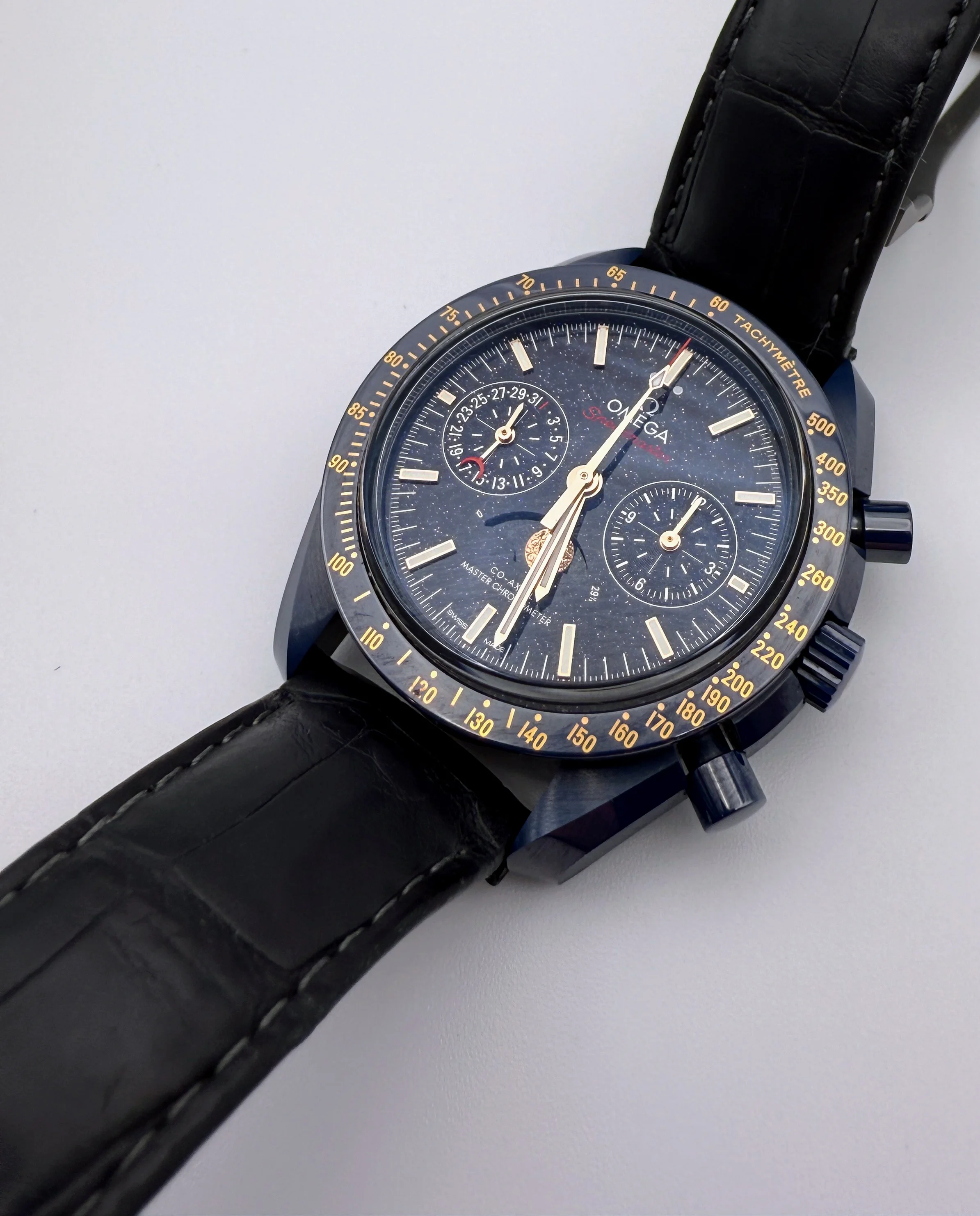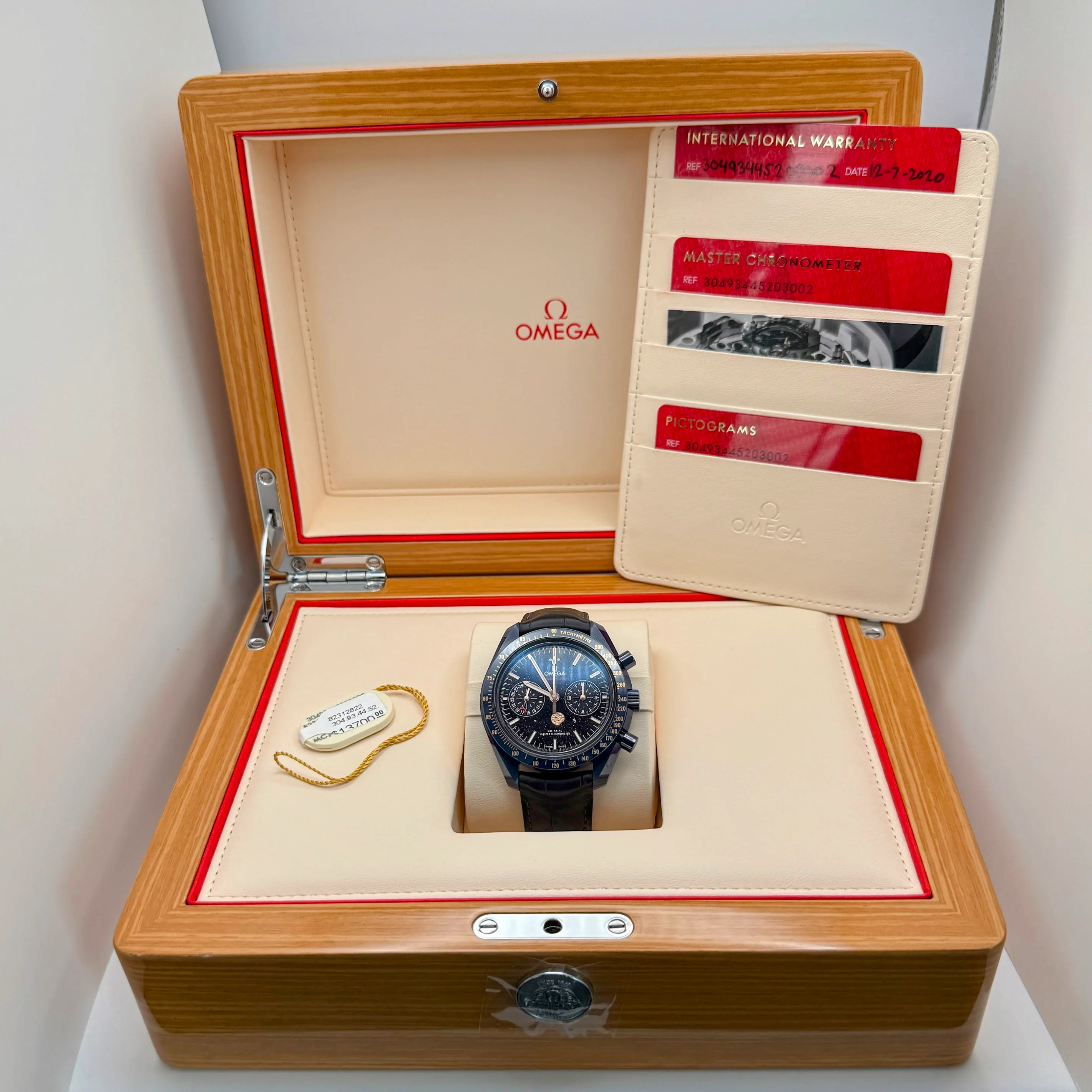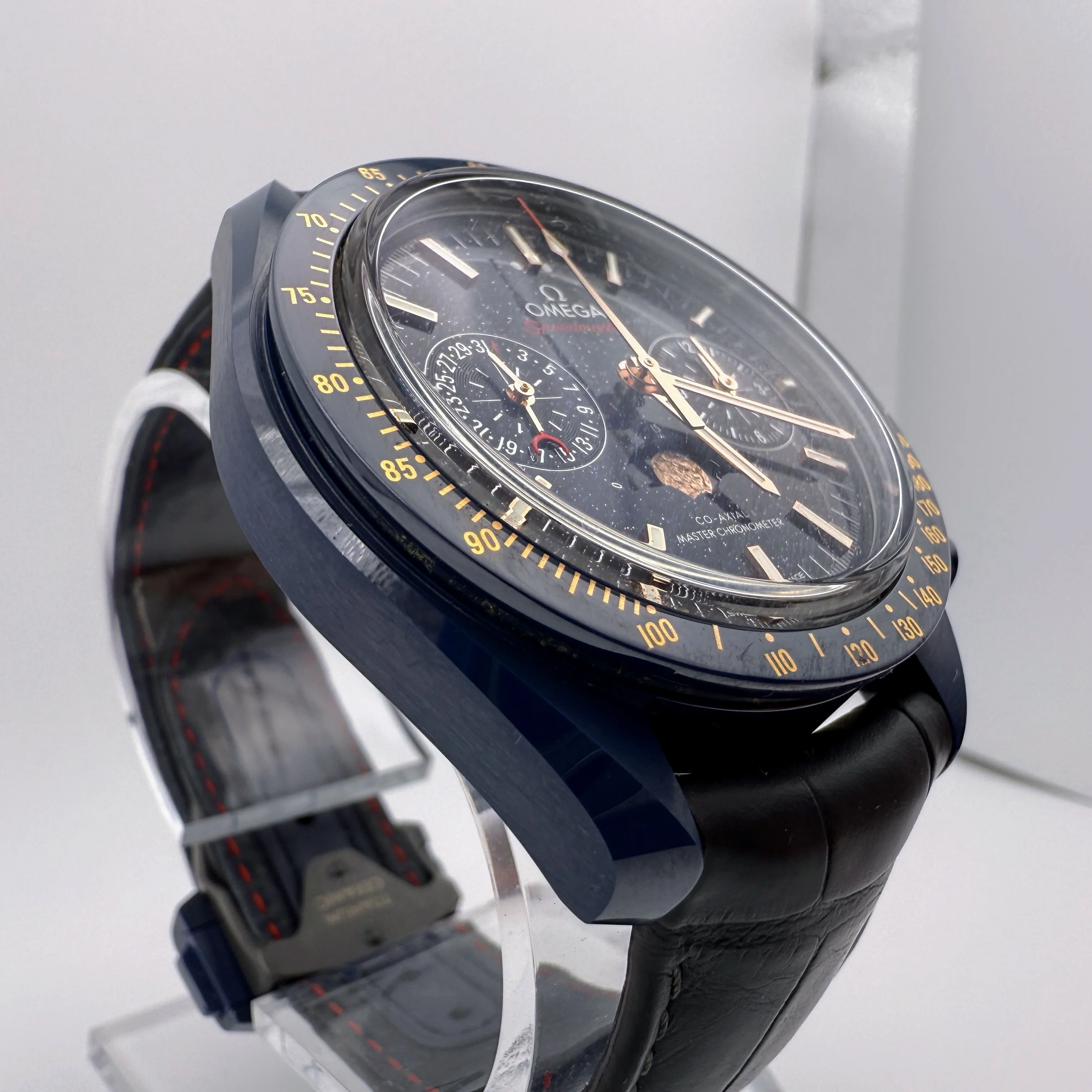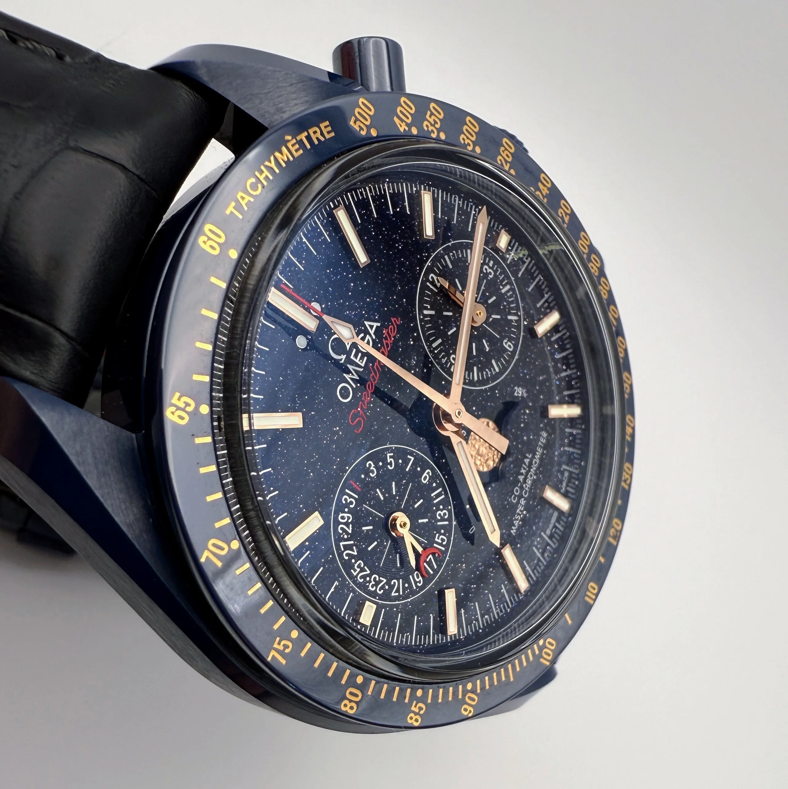 ** Omega Speedmaster 44.25MM Co-Axial Master Chronograph MoonPhase Caramic Blue Side Of The Moon Aventurine Dial 304.93.44.52.03.002 on Leather Strap