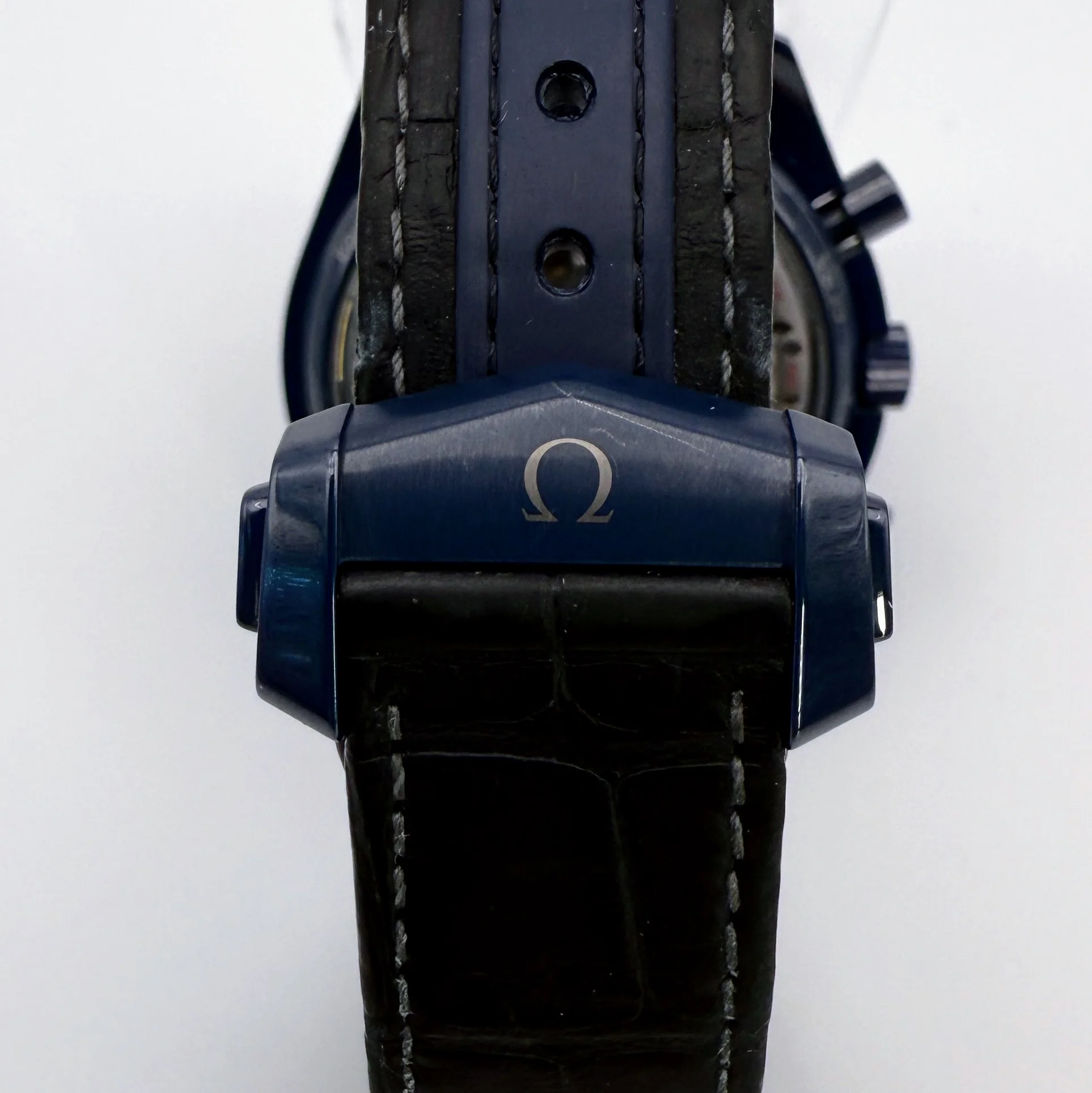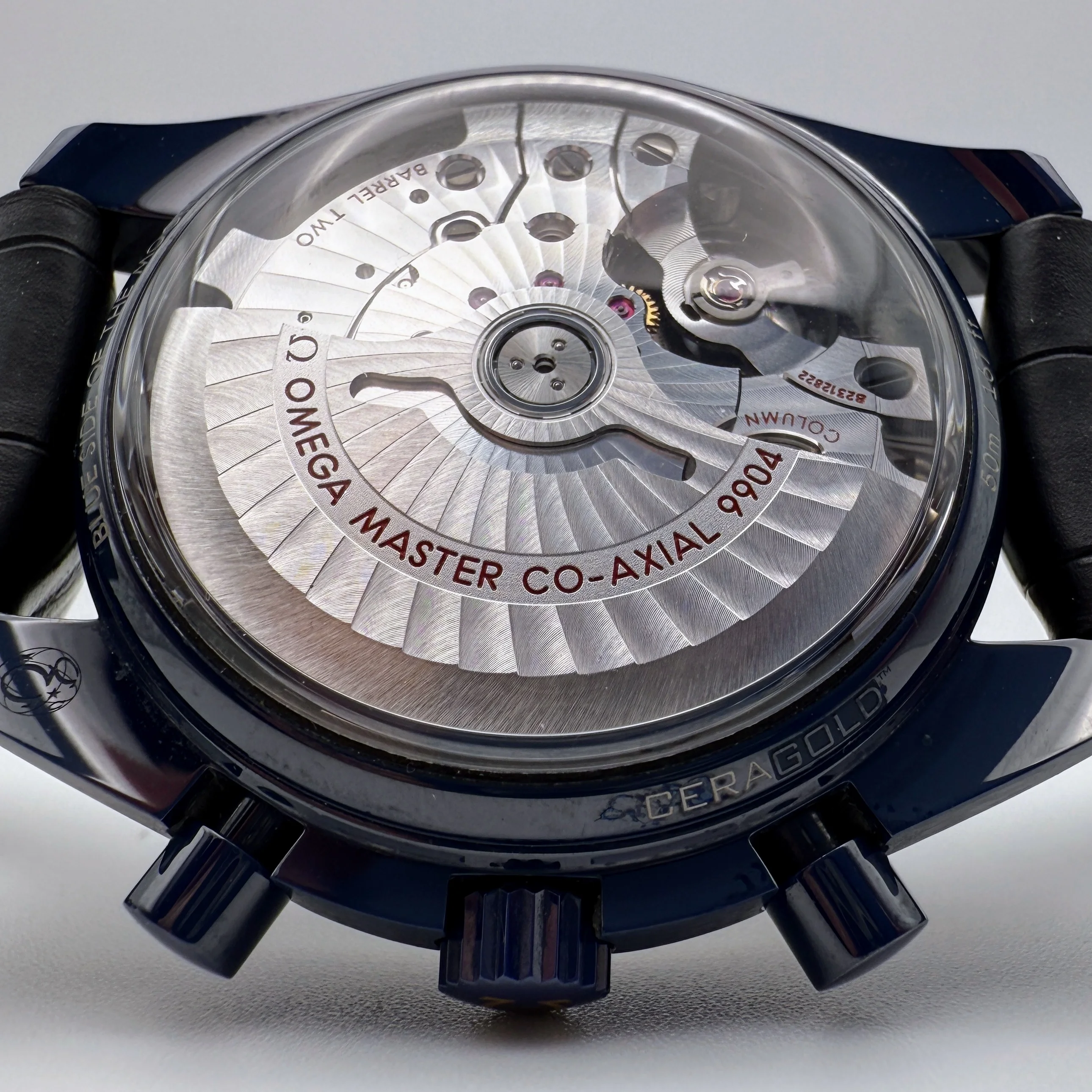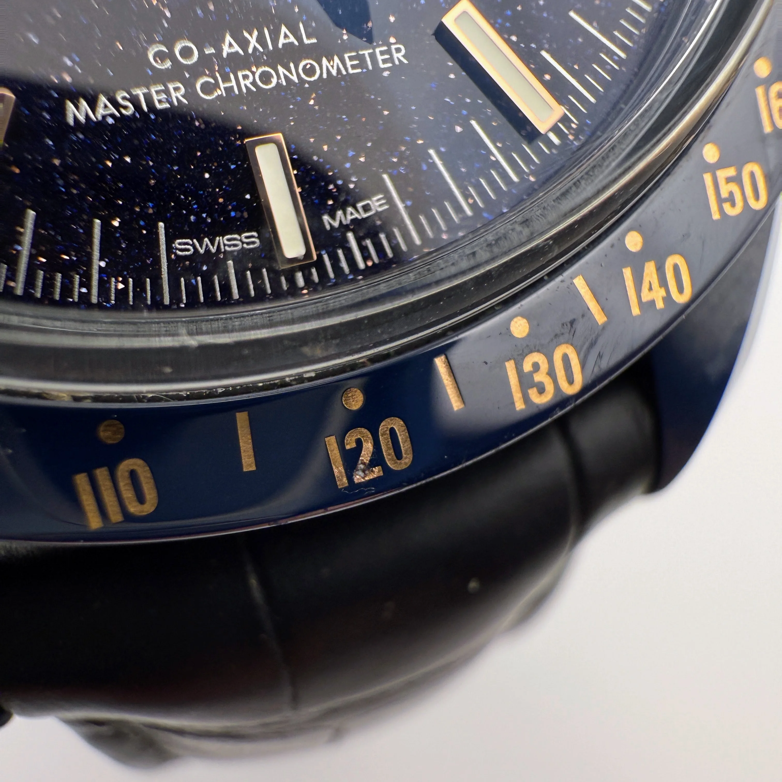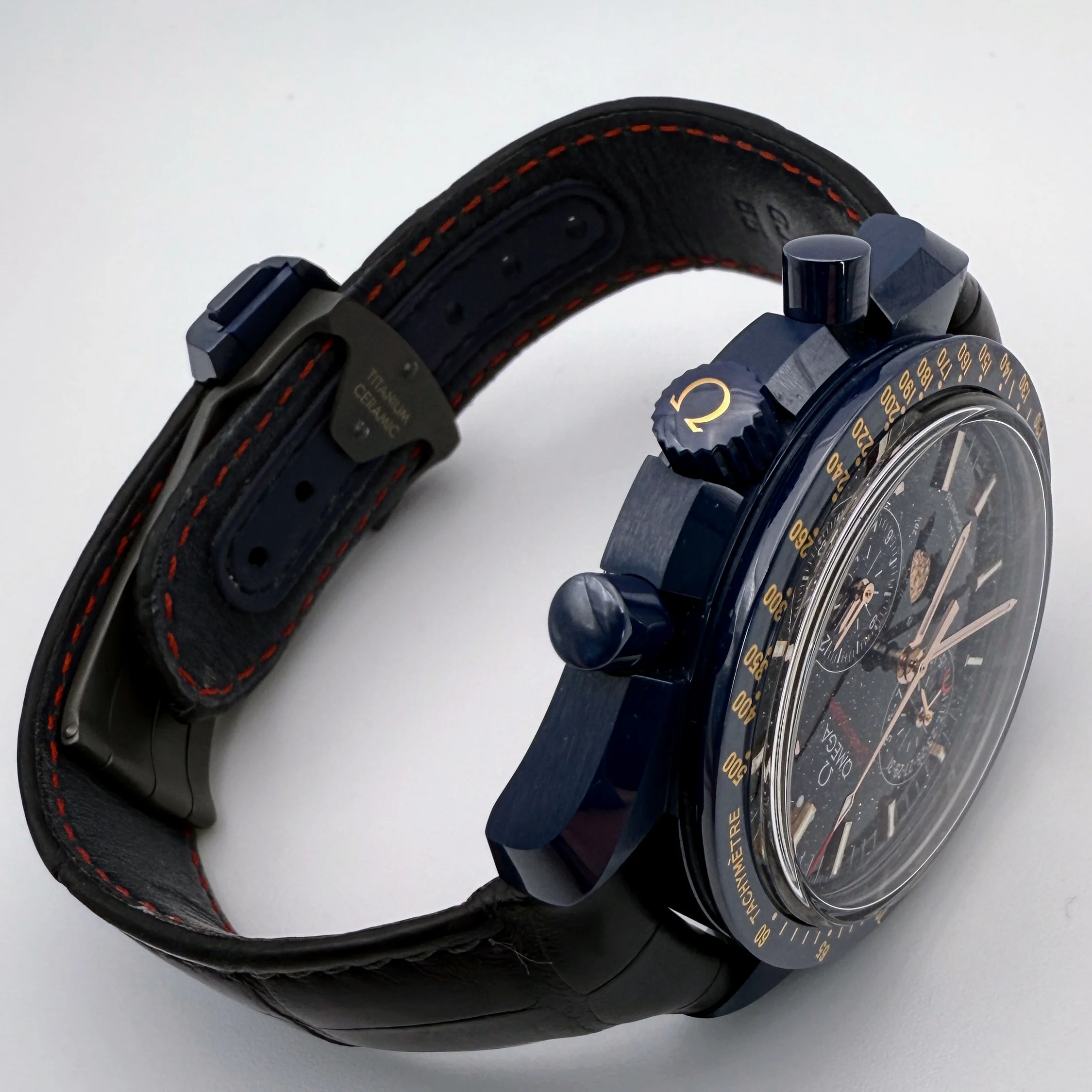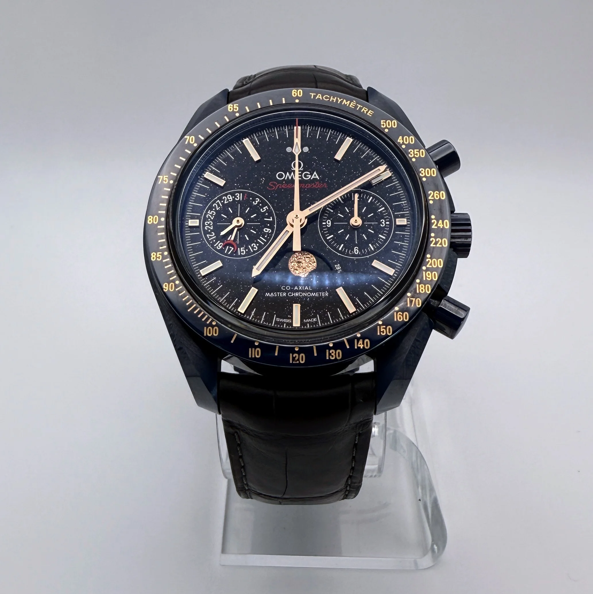 ** Omega Speedmaster 44.25MM Co-Axial Master Chronograph MoonPhase Caramic Blue Side Of The Moon Aventurine Dial 304.93.44.52.03.002 on Leather Strap