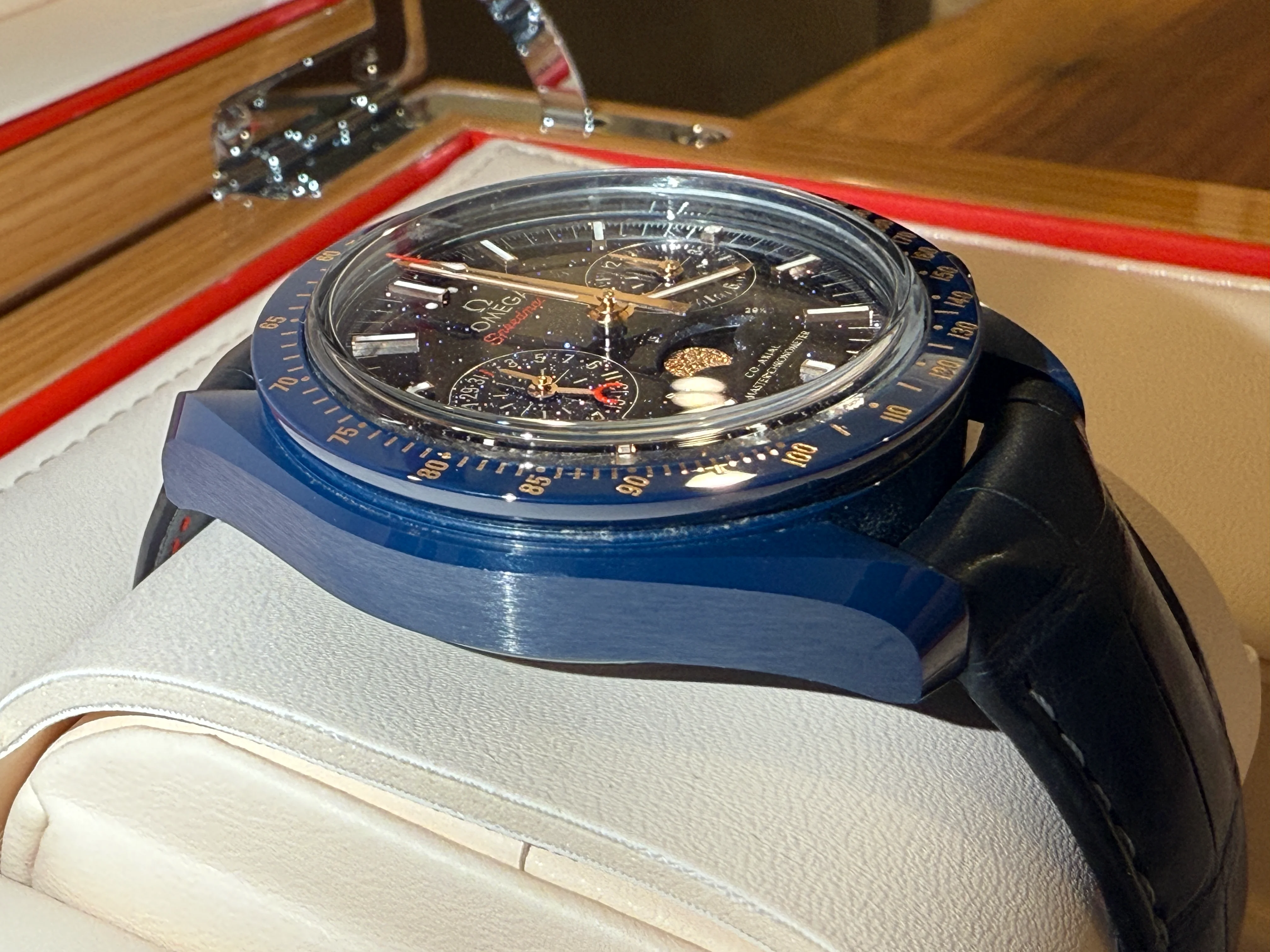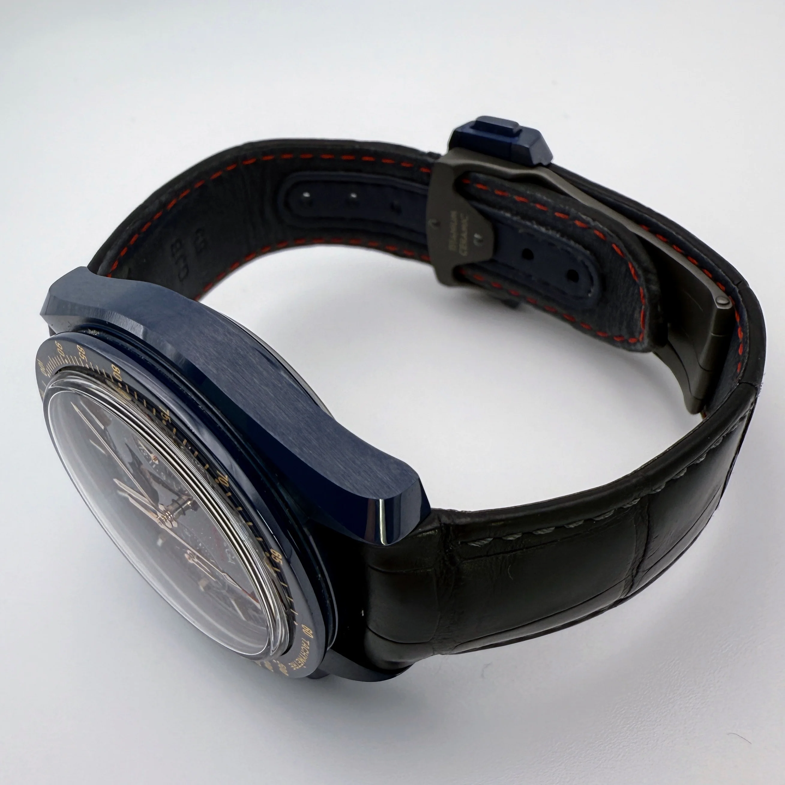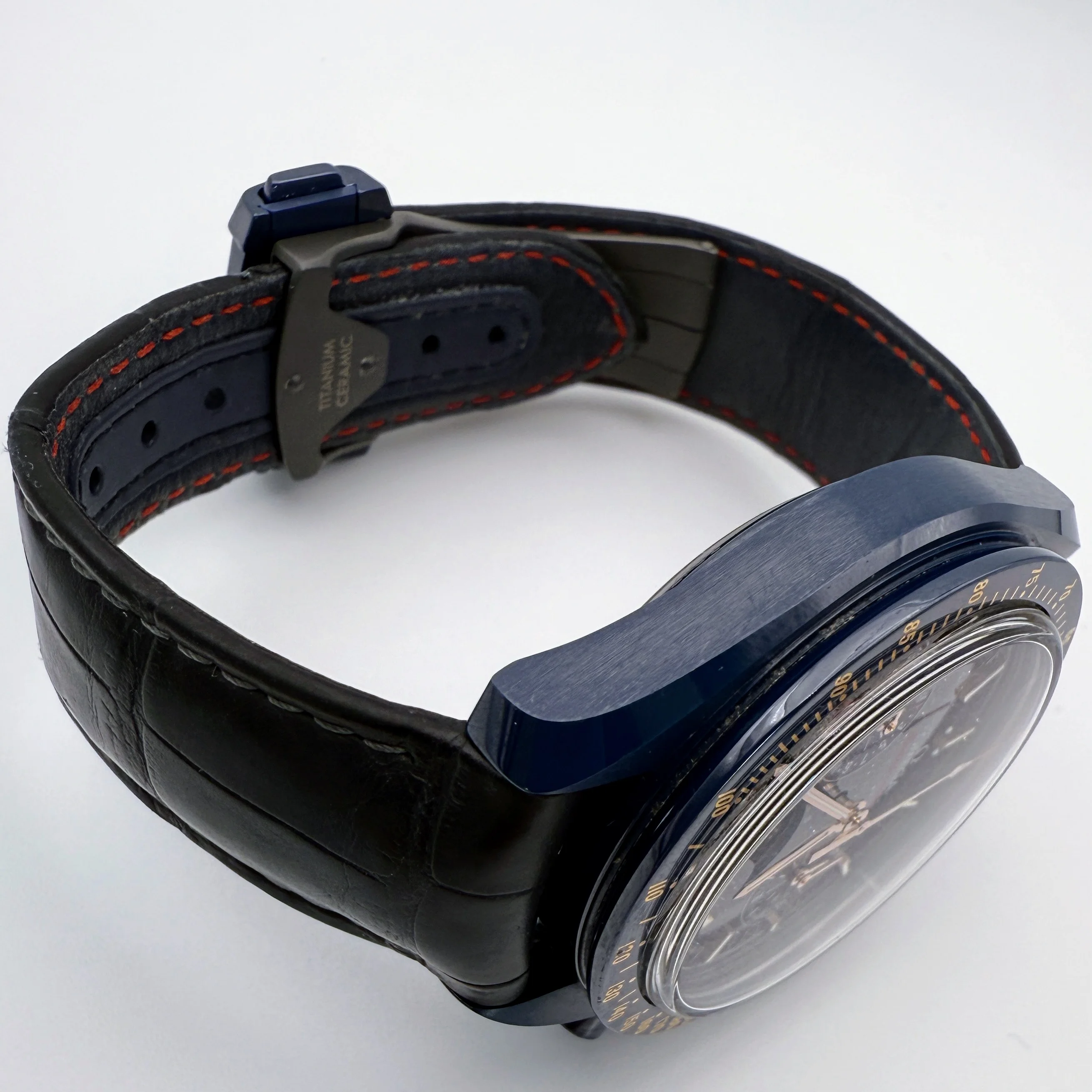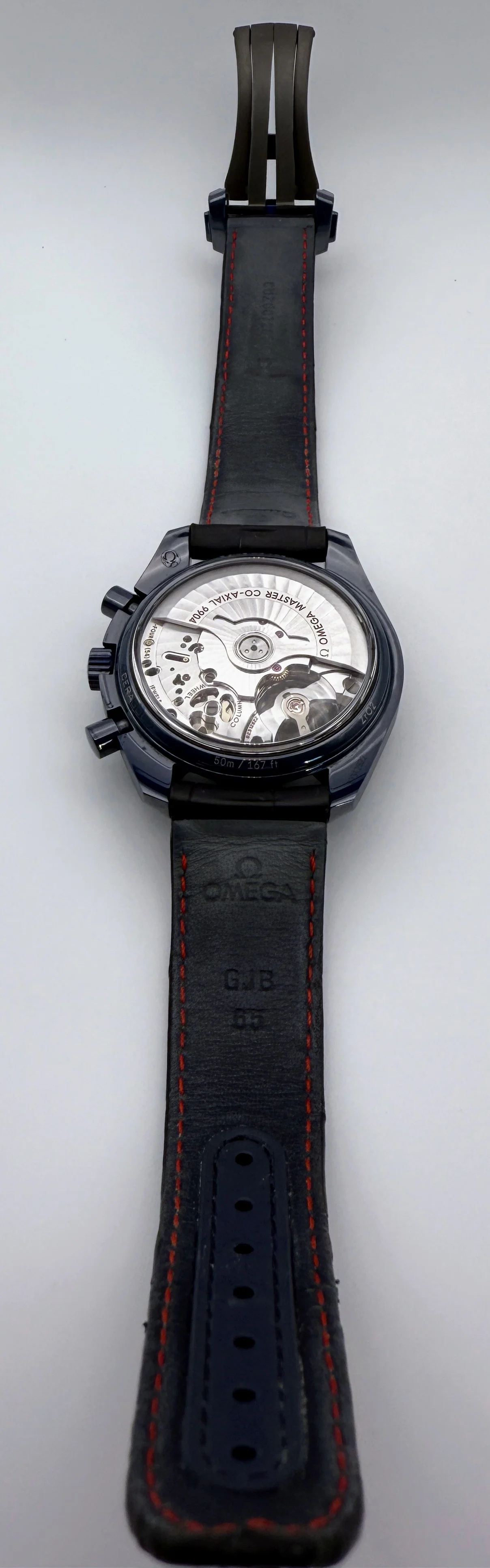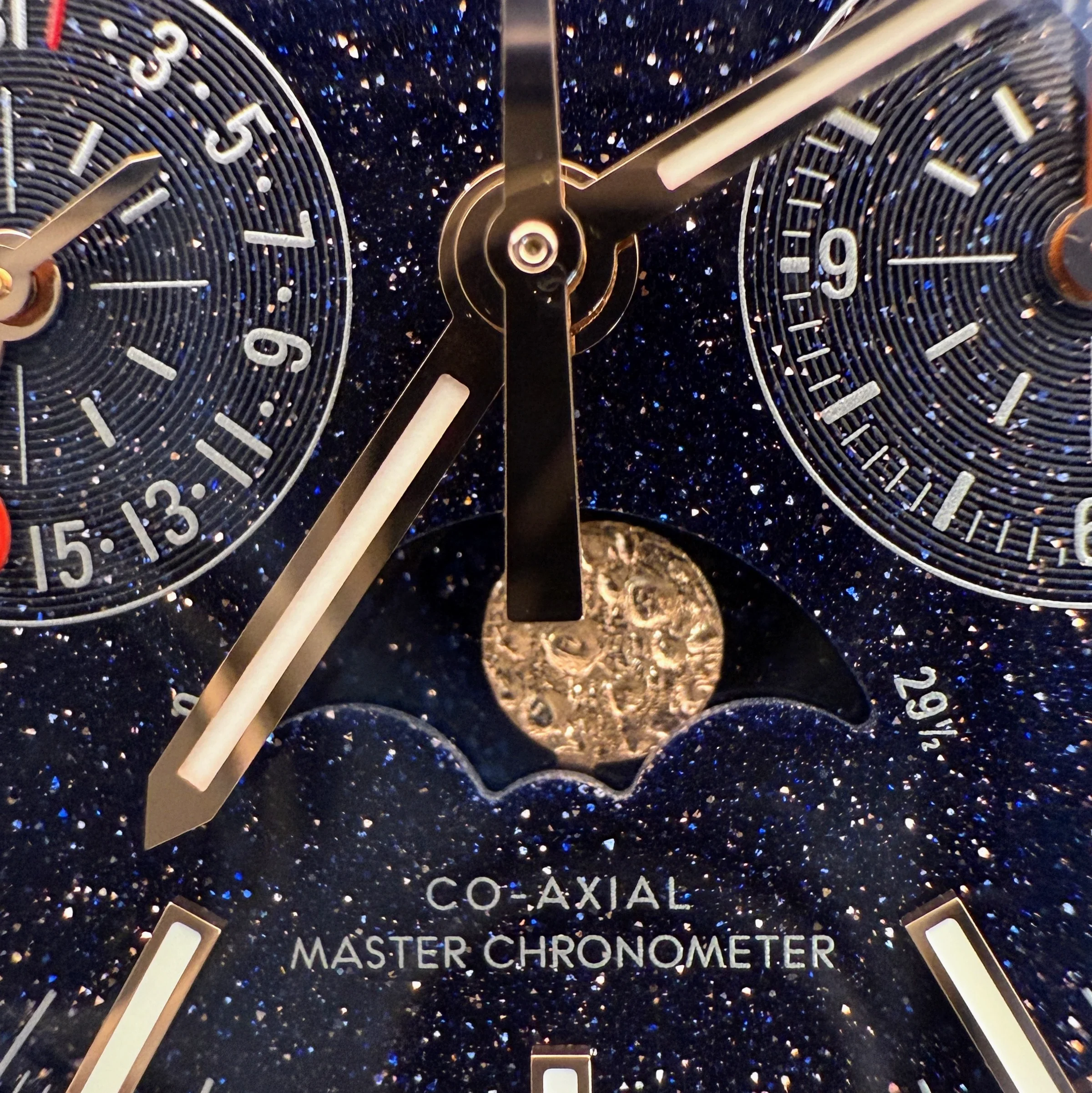 ** Omega Speedmaster 44.25MM Co-Axial Master Chronograph MoonPhase Caramic Blue Side Of The Moon Aventurine Dial 304.93.44.52.03.002 on Leather Strap