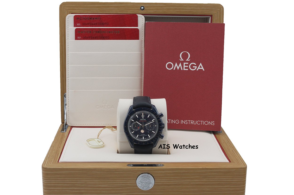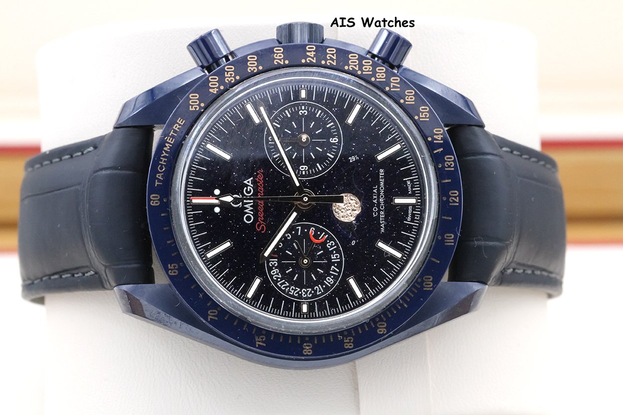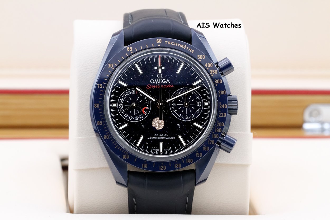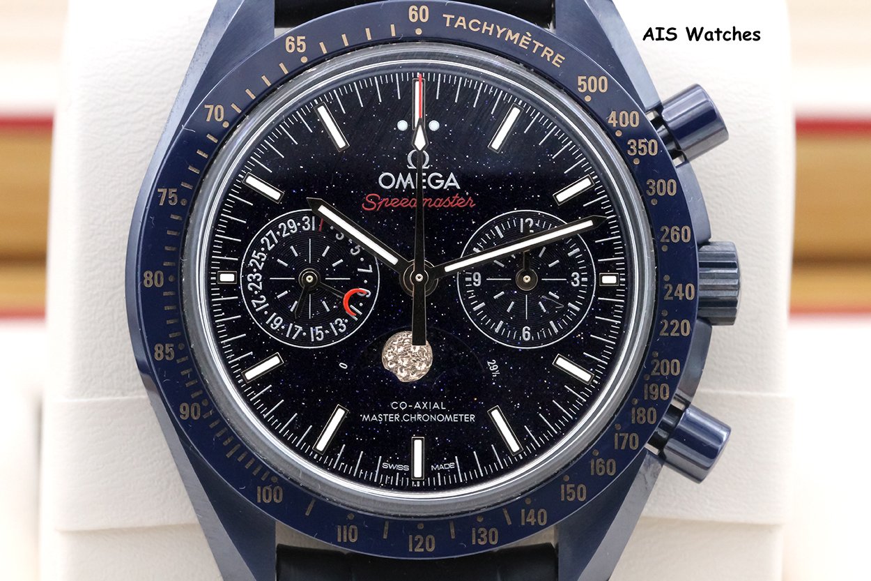 ** Omega Speedmaster 44.25MM Co-Axial Master Chronograph MoonPhase Caramic Blue Side Of The Moon Aventurine Dial 304.93.44.52.03.002 on Leather Strap
