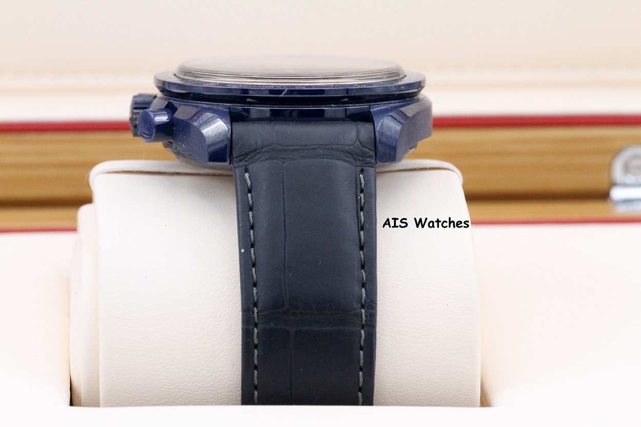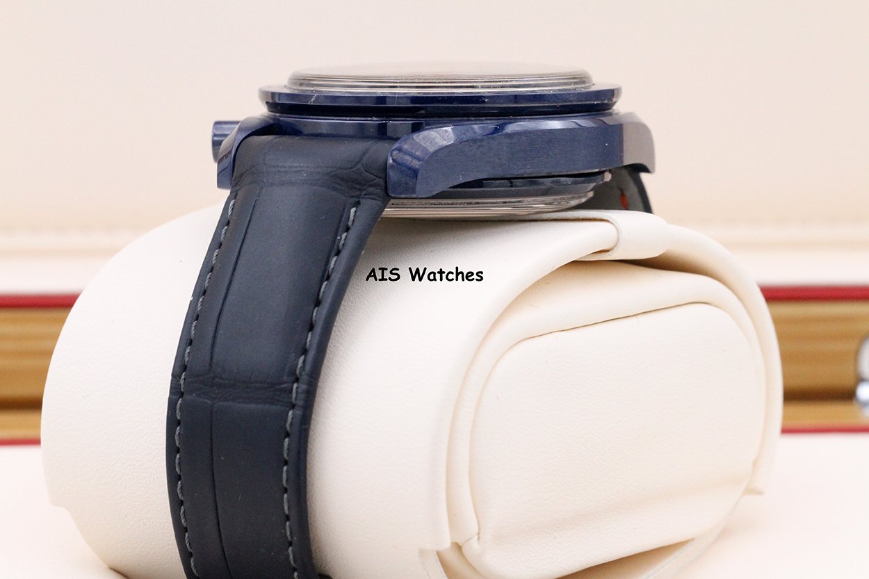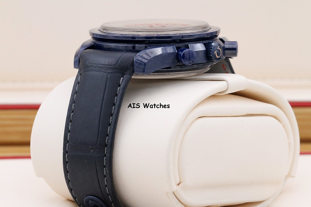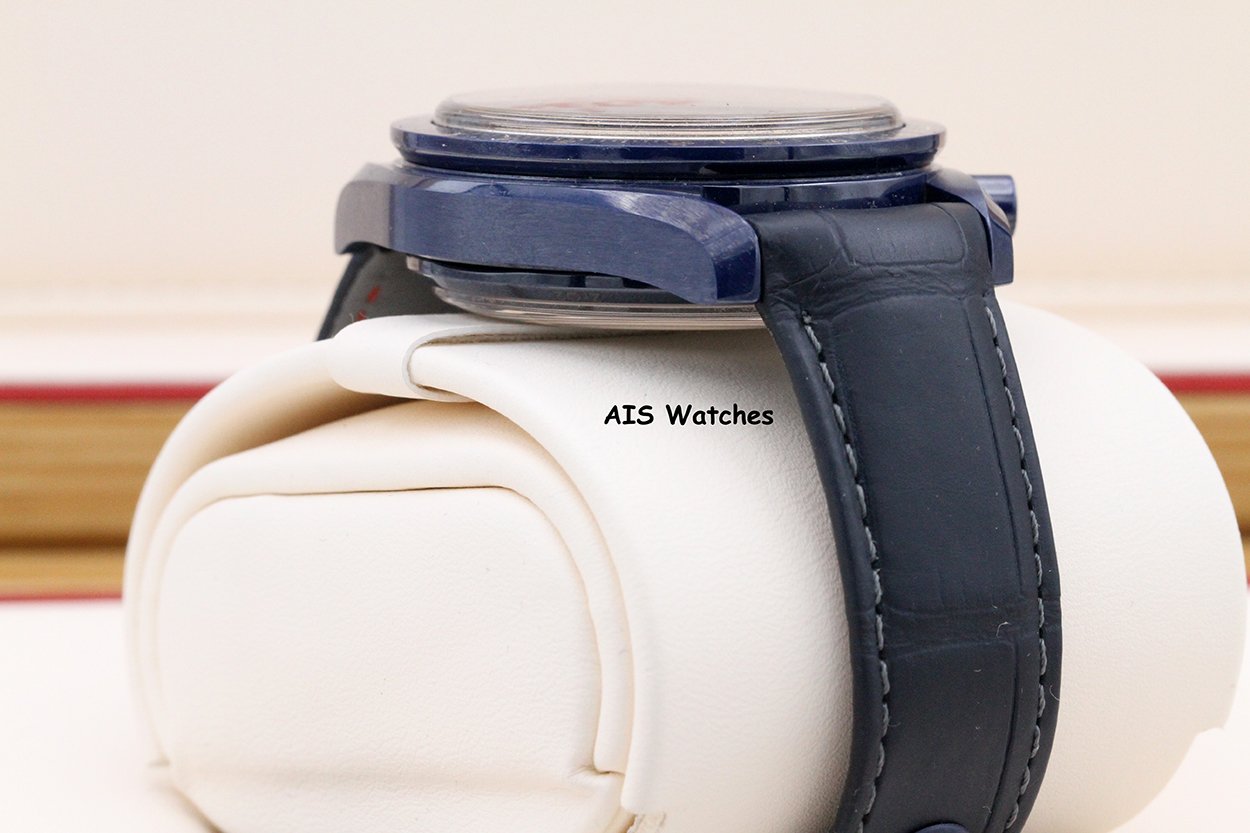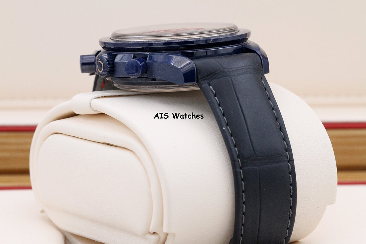 ** Omega Speedmaster 44.25MM Co-Axial Master Chronograph MoonPhase Caramic Blue Side Of The Moon Aventurine Dial 304.93.44.52.03.002 on Leather Strap