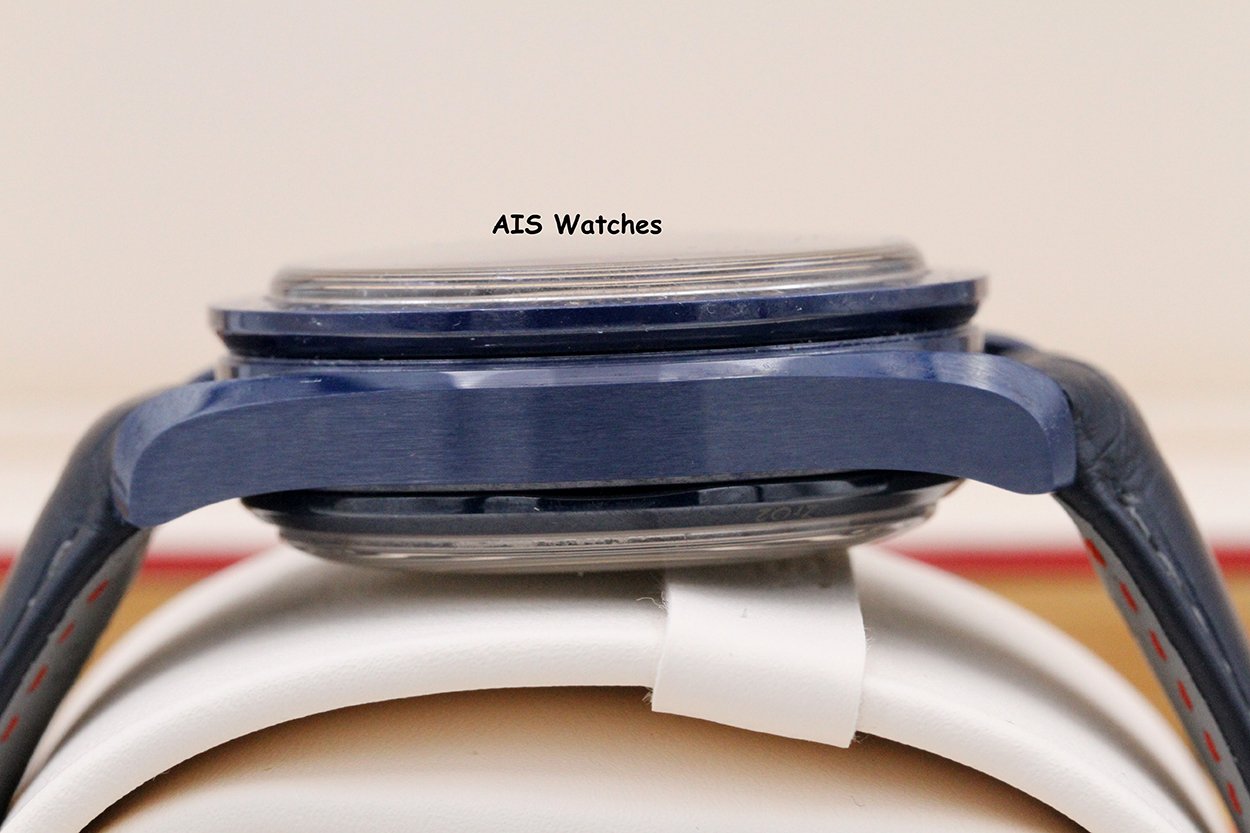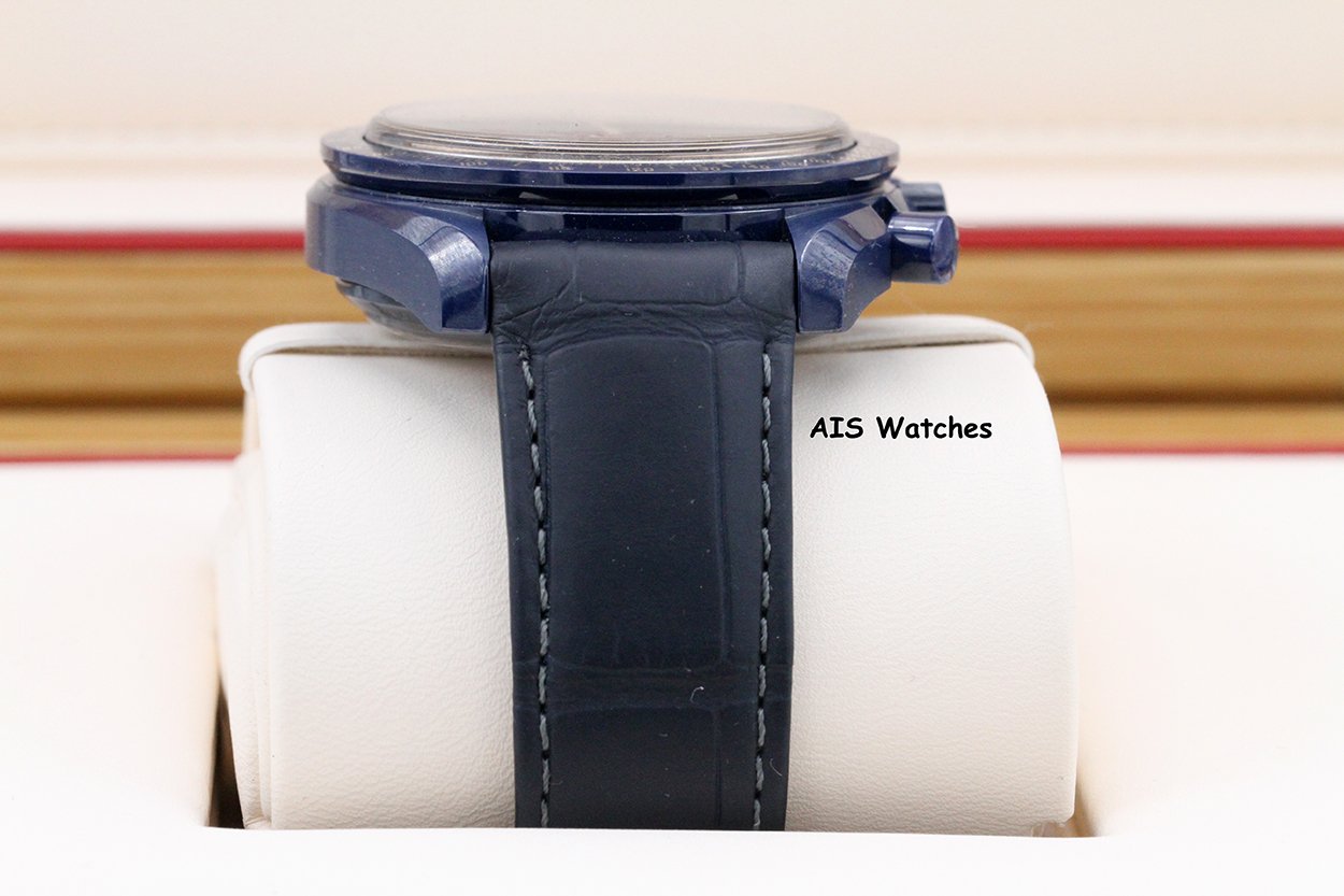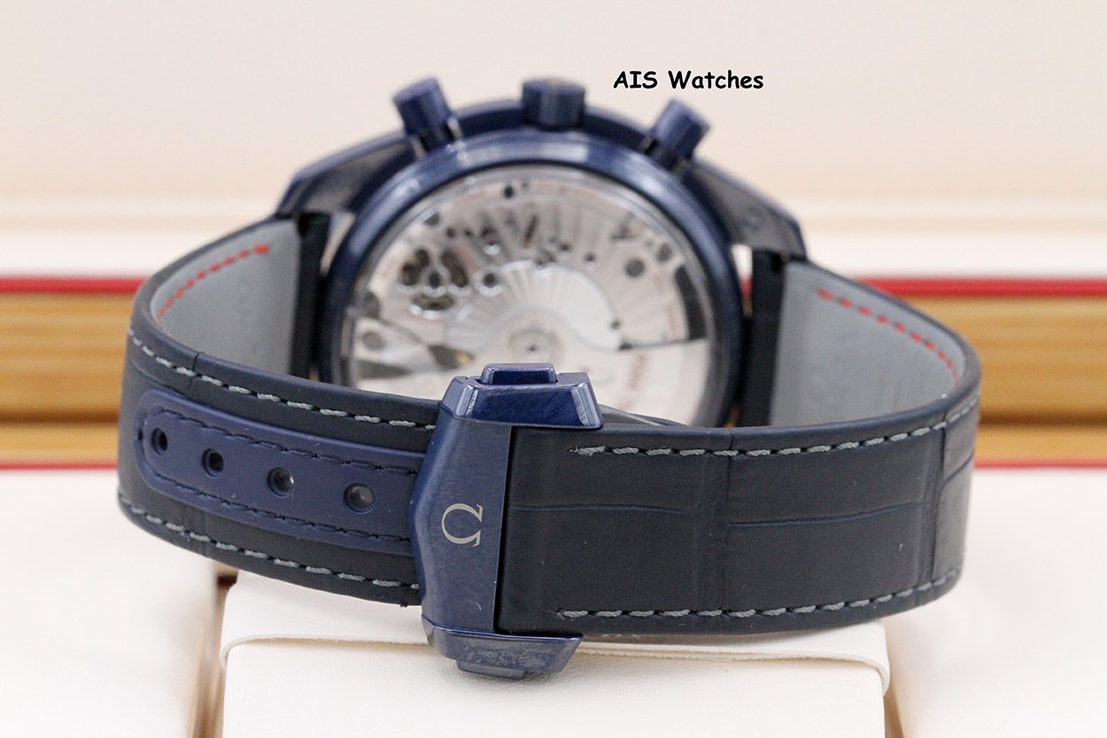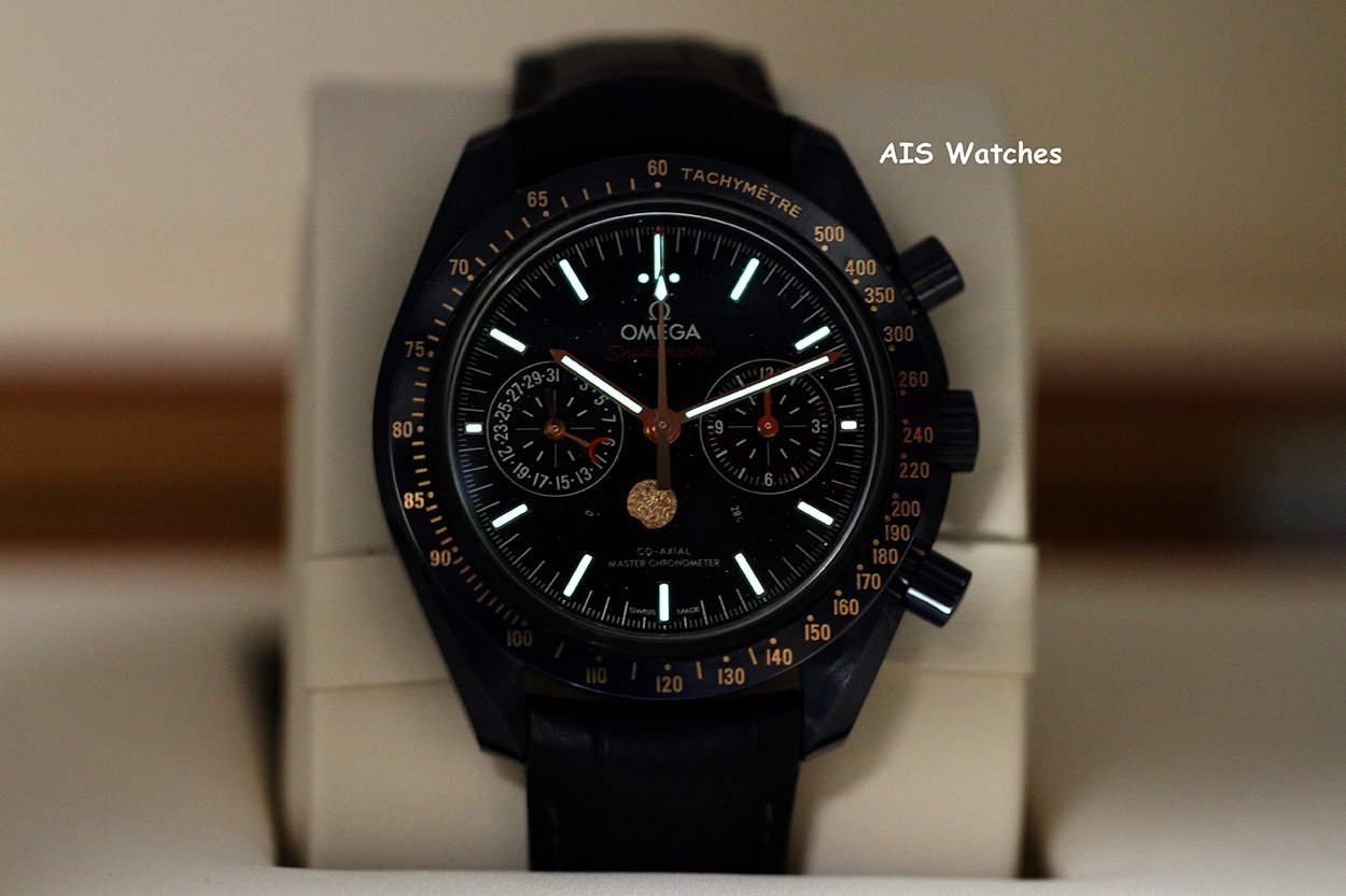 ** Omega Speedmaster 44.25MM Co-Axial Master Chronograph MoonPhase Caramic Blue Side Of The Moon Aventurine Dial 304.93.44.52.03.002 on Leather Strap