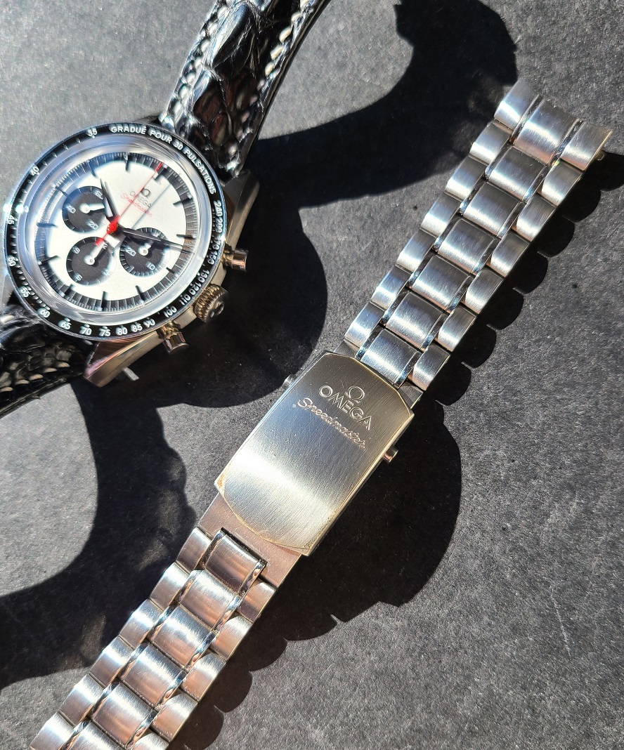 ·OMEGA SPEEDMASTER Moon Watch CK2998 Reference Number: 311.32.40.30.02.001. Full kit including original outer box. Purchased from Topper Fine Jewelers. Warranty Card dated 09/04/2018. I wore this watch in rotation with several others. There are a couple of very small scratches on the case (see pictures). There are some small strap change marks as well. The original strap is brand new, never worn. I also purchased an OEM Omega bracelet, model 1564/975 that fits the watch perfectly. The original plastic is still on the clasp. Overall, in very good condition. Watch is running perfectly, keeping excellent time.