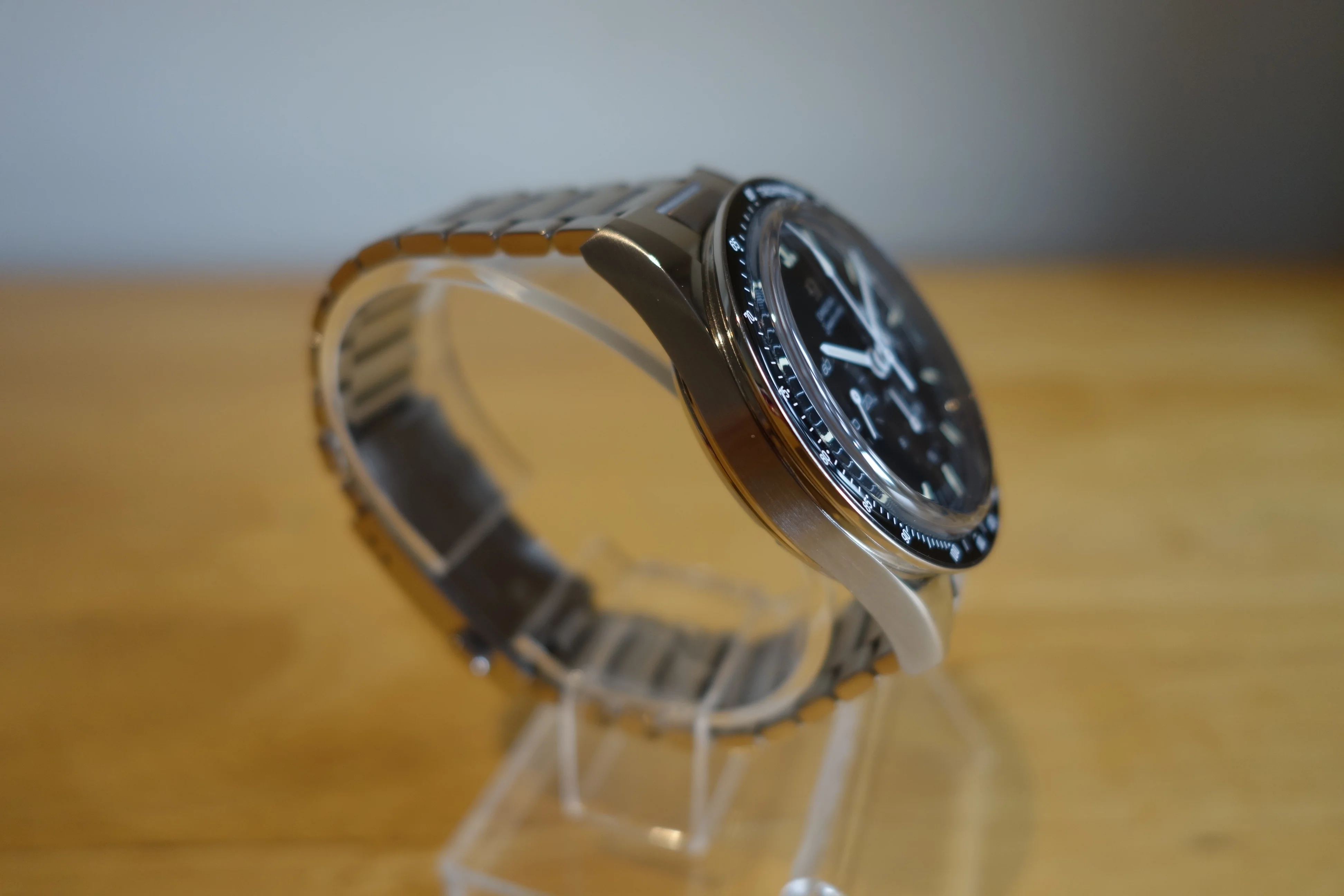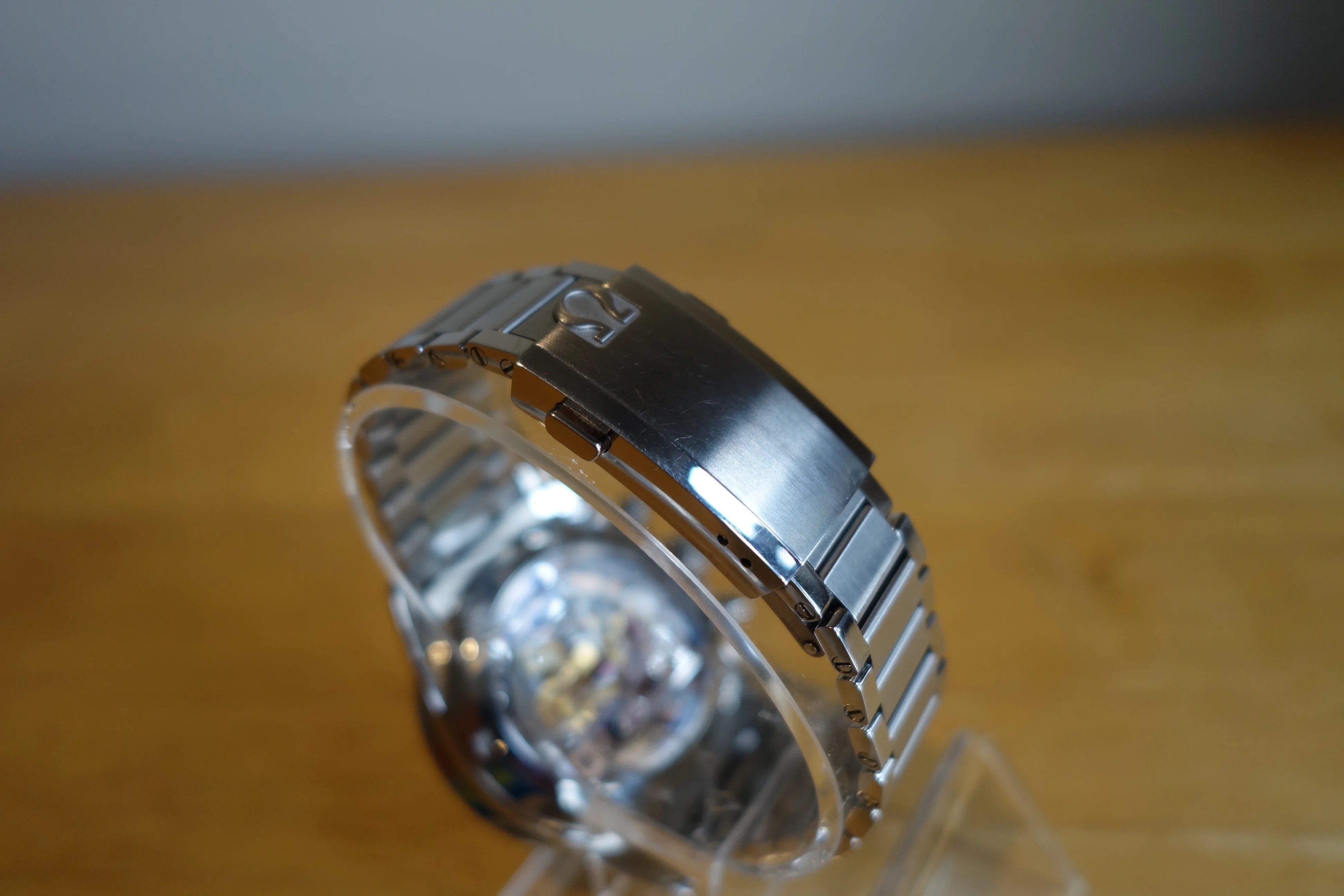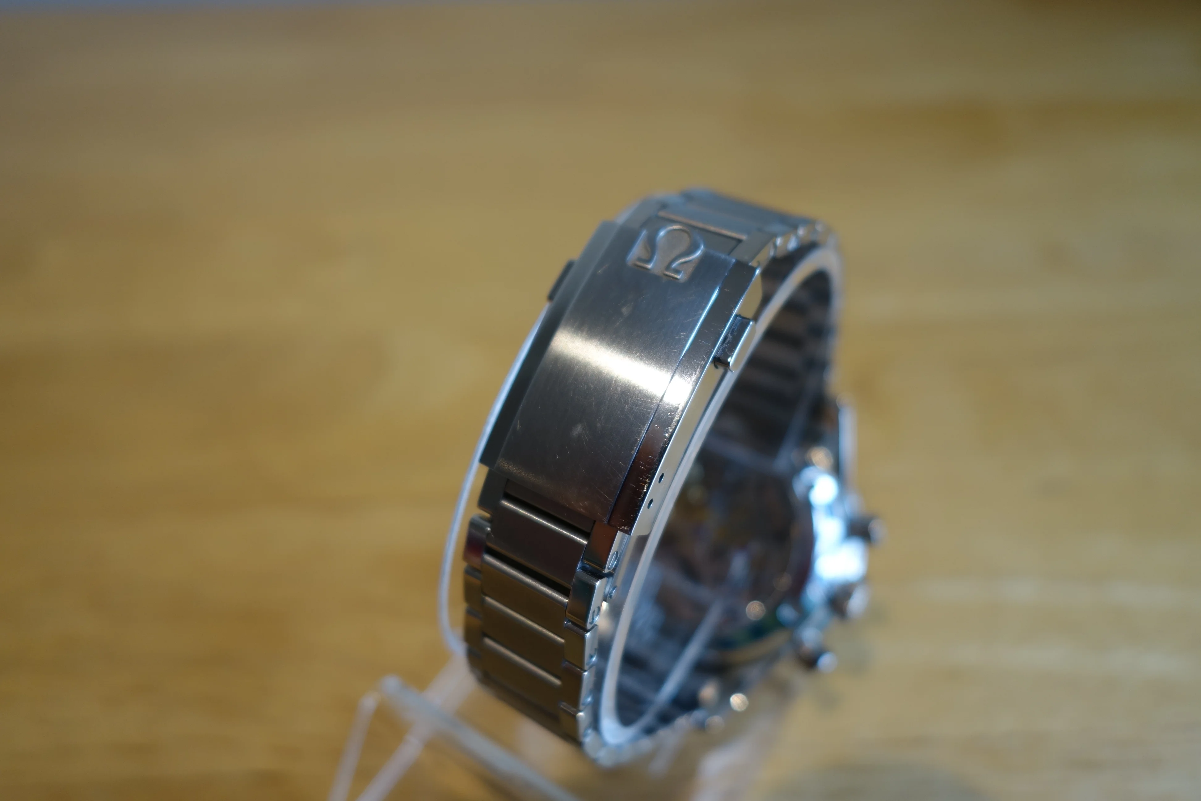 Purchased by me at a US OB in 2023 and worn occasionally since. Good condition, showing minor scuffs around clasp and bracelet. Includes everything shown; cardboard carton, warranty cards, all links, and hang tag.