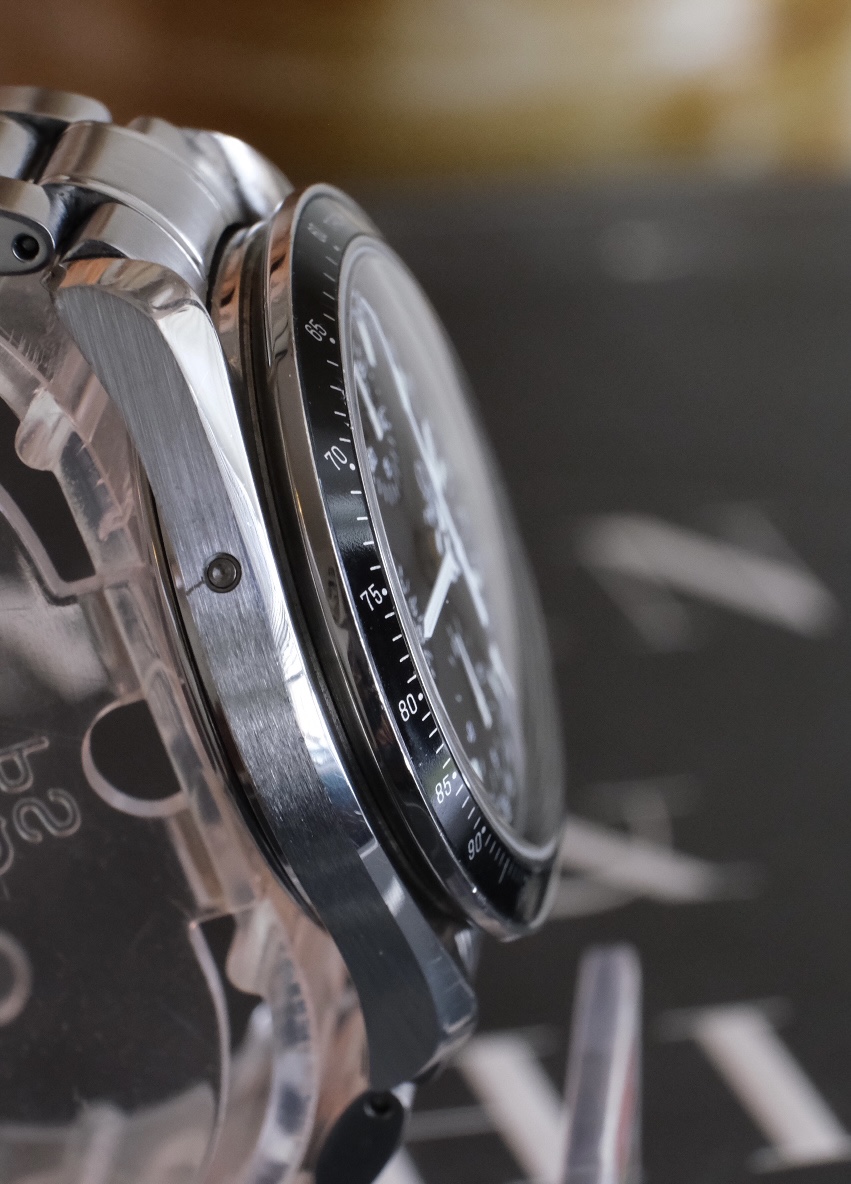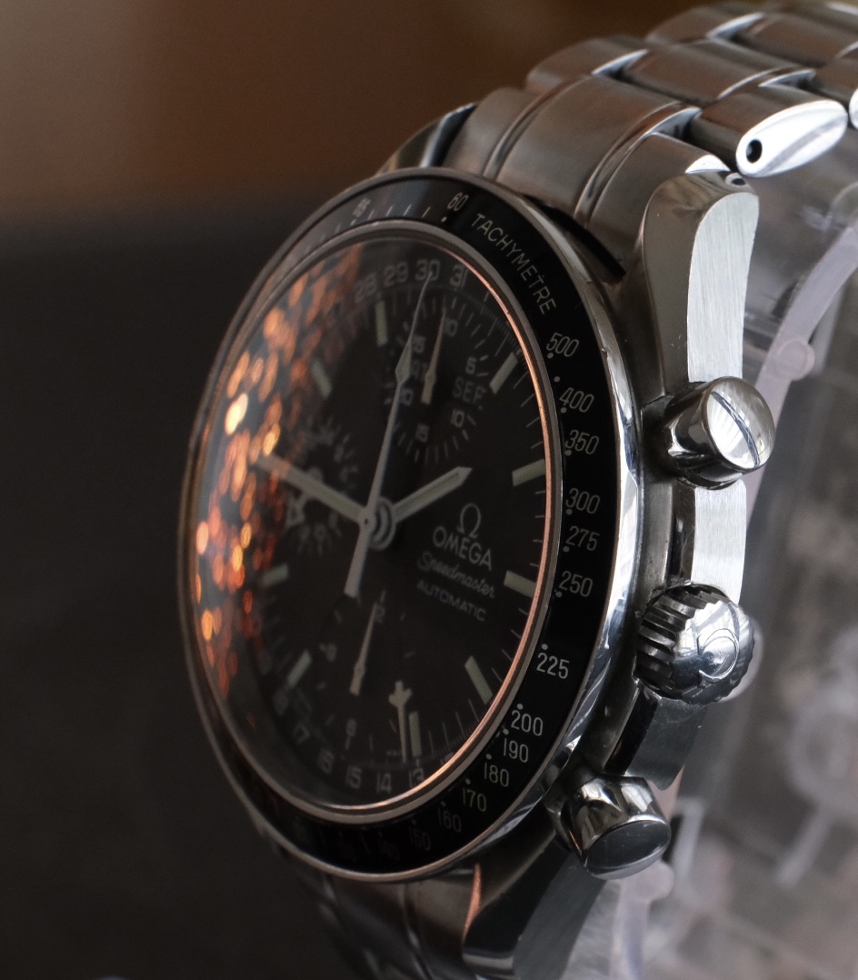 As you can see even in macro, this thing is sharp! Retains crisp original lines, with very minimal wear, throughout - a tiny bit on the bezel, but overall very clean, including the beautiful sapphire crystal. (Getting fancy with a little bokeh reflection on the weekend!)