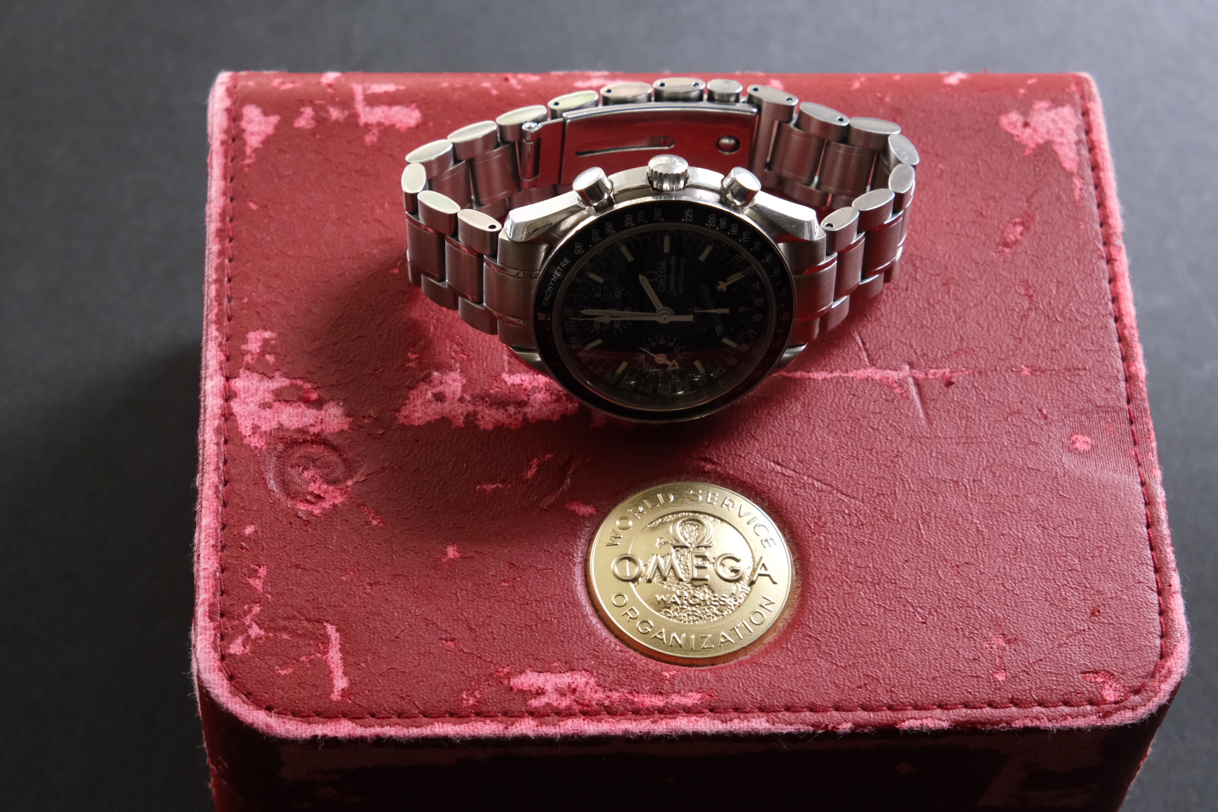 Based on the serial number this one dates to 1999, and comes with the original Omega box.