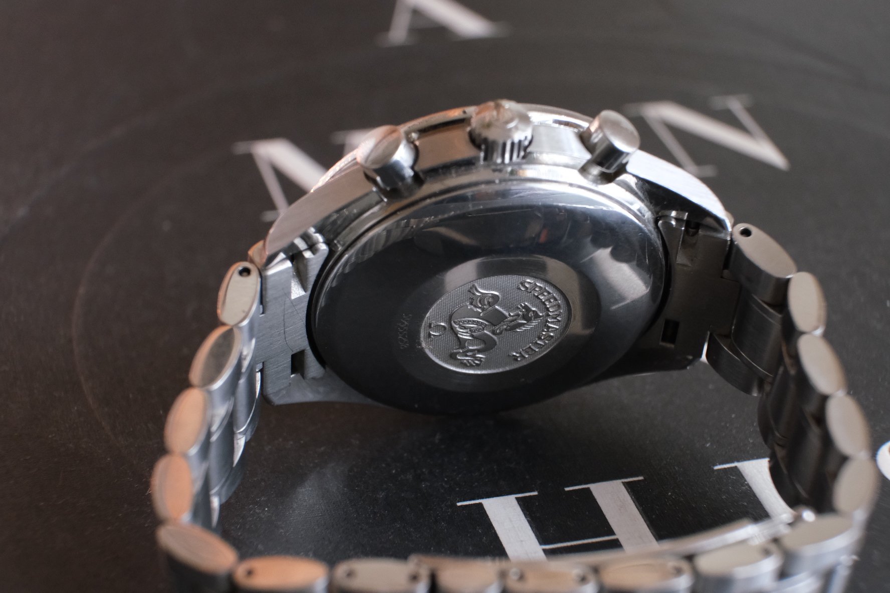 The Omega cal 1150 automatic movement is working beautifully. No service history that I know, but this came from a small collection and it was worn lightly. Keeping fantastic time, within 10 seconds a day or so on my wrist, winds and sets perfectly with all chrono functions snapping back exactly as they should.