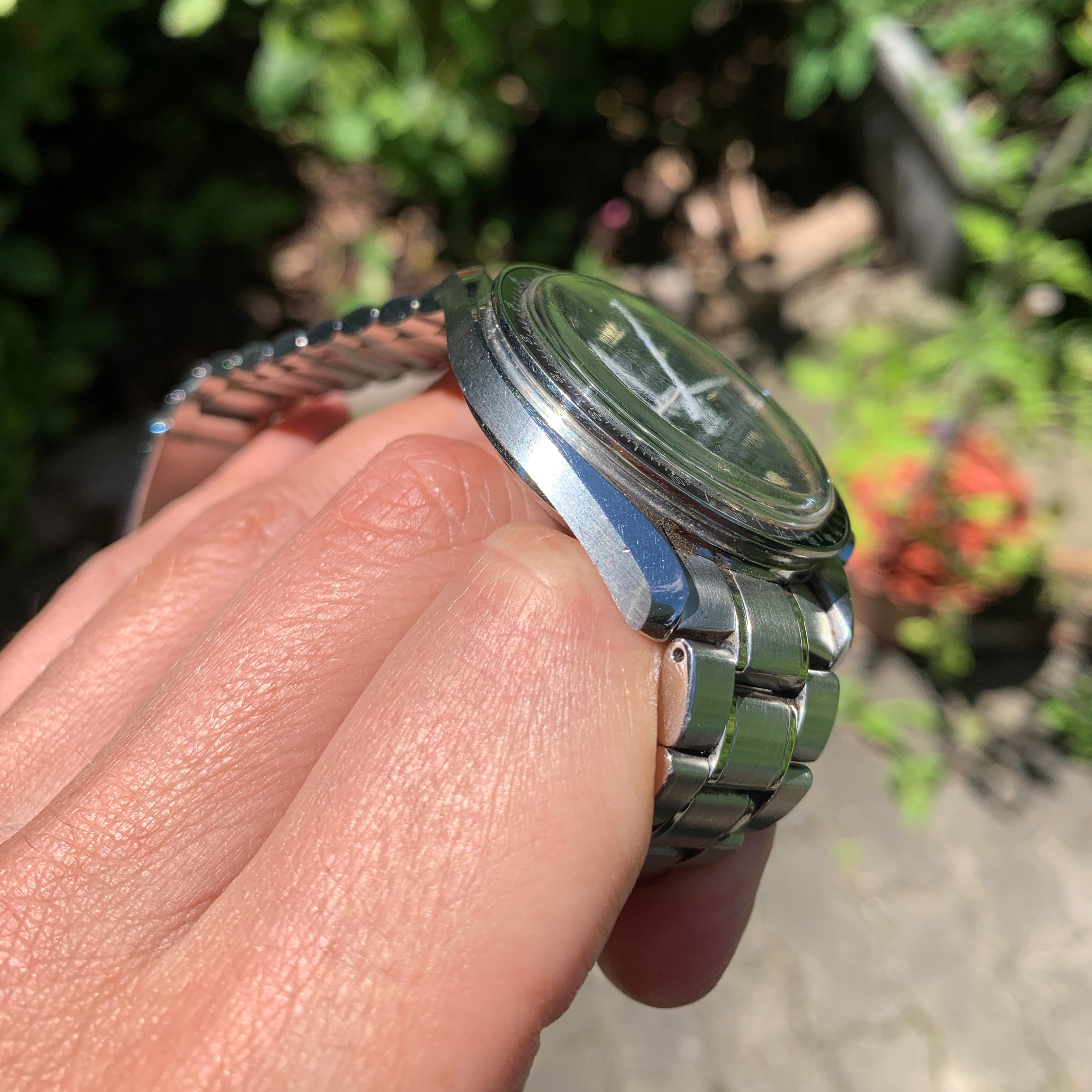 The plexi could do with a proper polish. It did not get one at service. The bezel is also in fine condition, no chips or dings.
