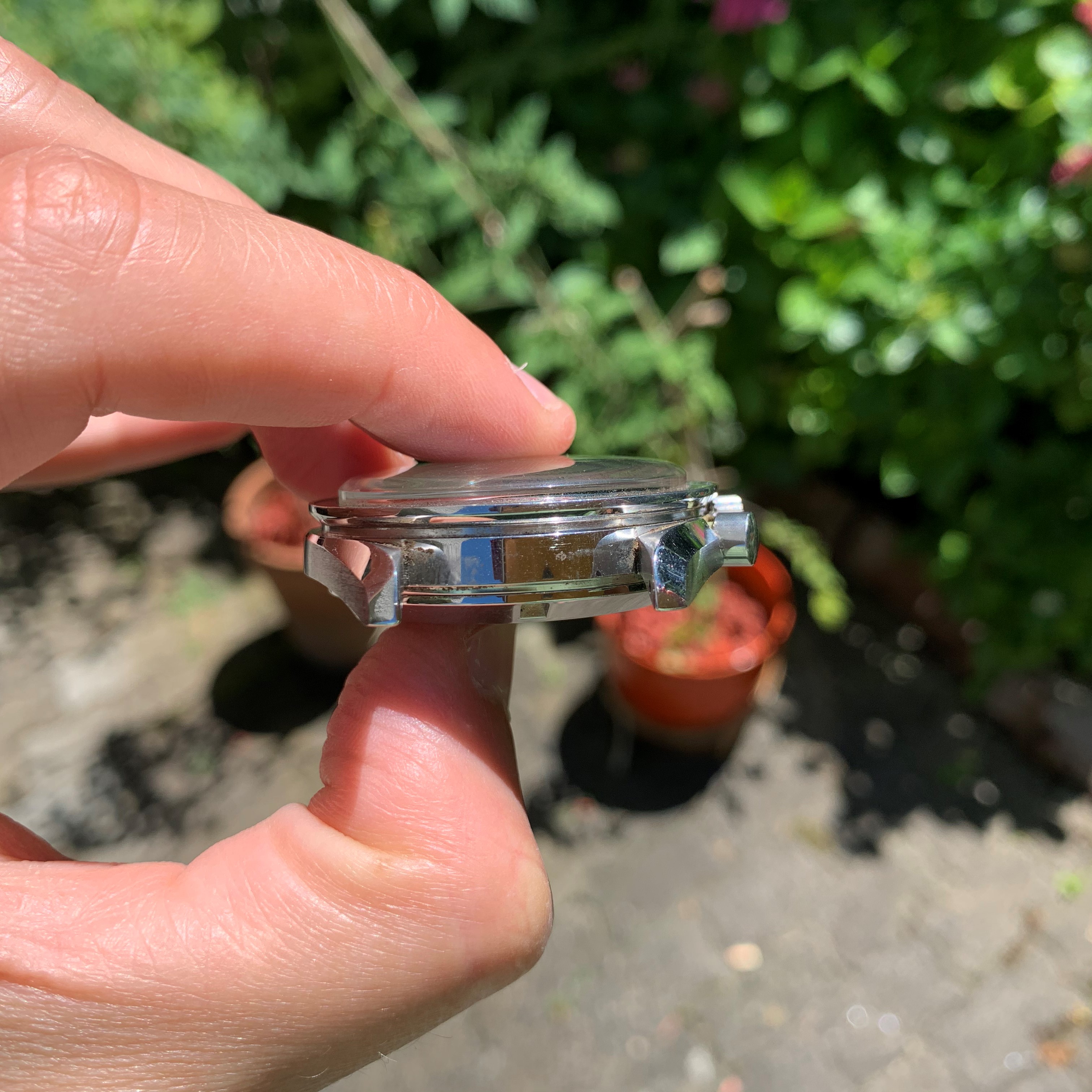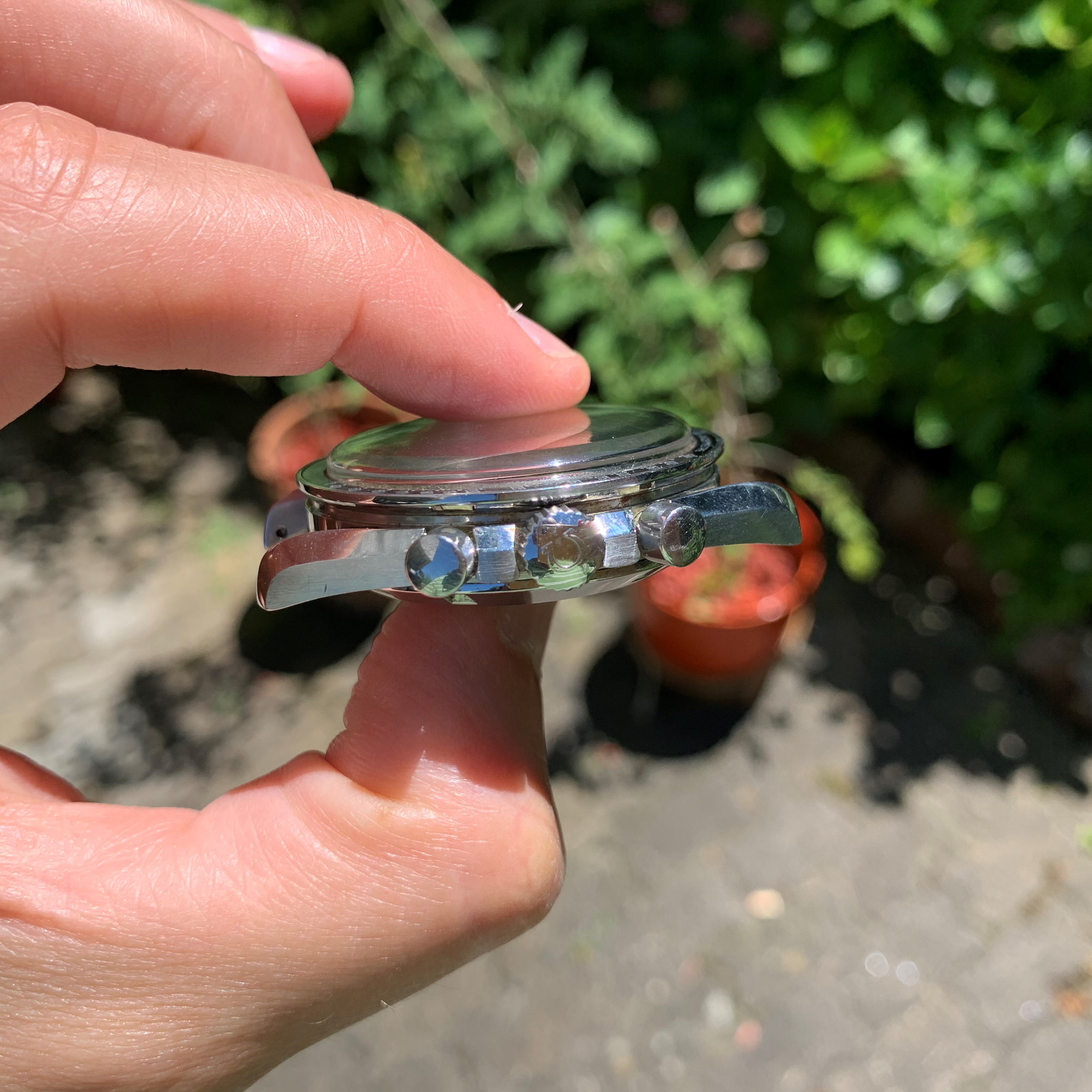 Crown and pushers too are original. There is still a bit of cheese left behind. Not from me.