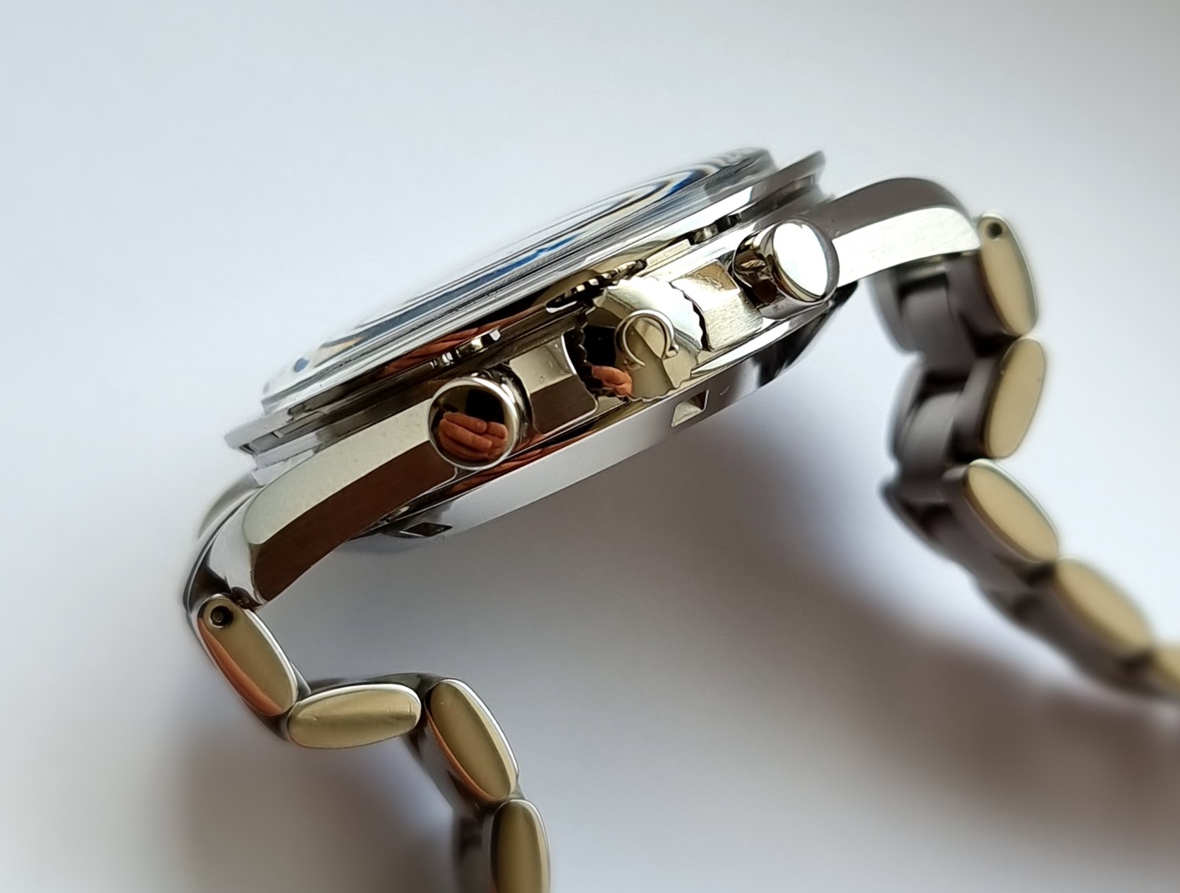 This watch is in superb condition and is unpolished. The original finish is still very sharp and the watch appears to have been worn very lightly. The dial and hands have the lovely chestnut patina associated with this 90s reference. The 1499/842 bracelet is larger, and should fit a wrist size of approx 8 inches. There are no real marks to the clasp, which again indicates light wear.