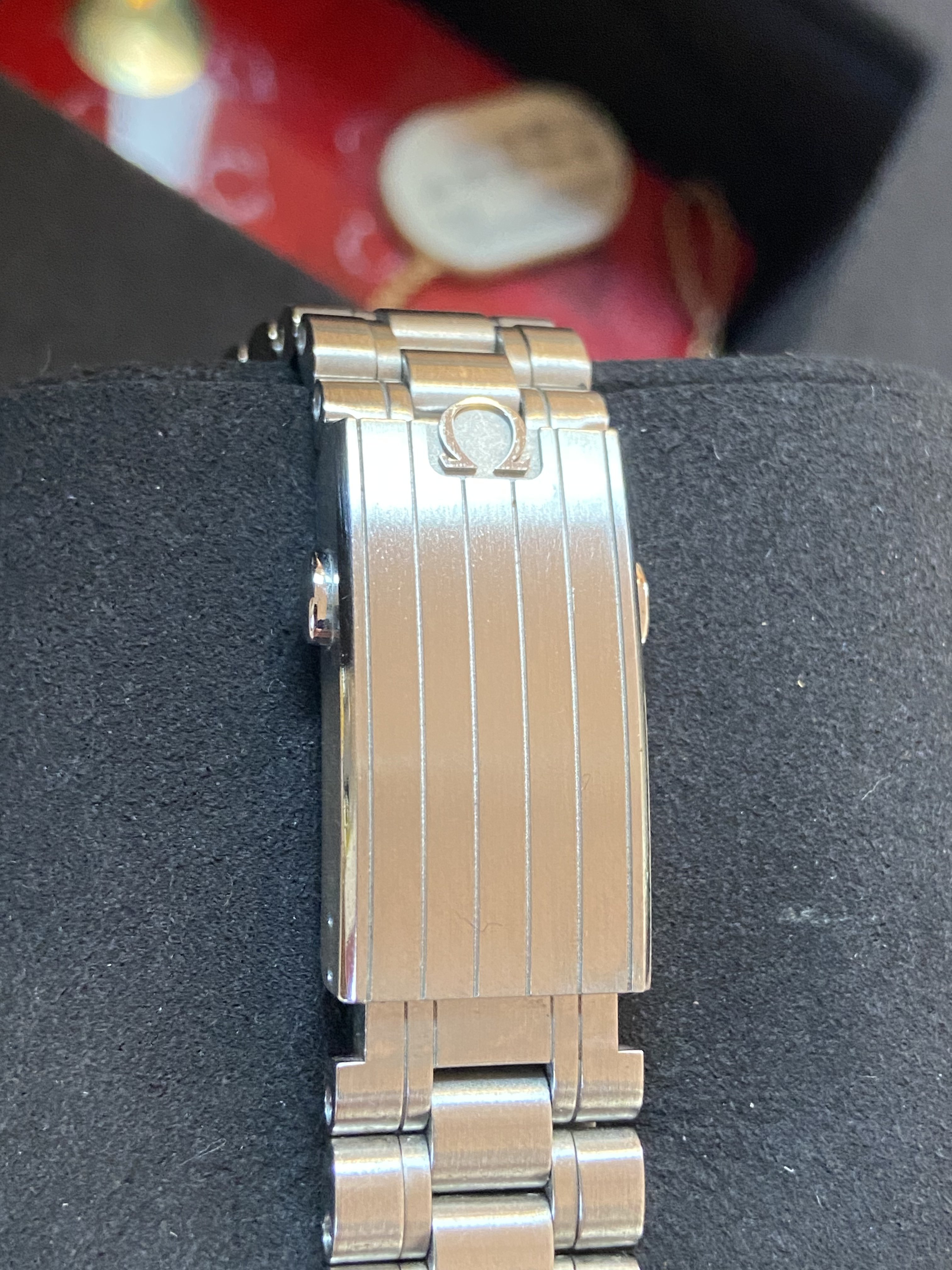 I have had protective tape on the clasp as I wore it so the bracelet is in great shape. It has been sized for my 7" (18cm) wrist with all original "extra" links present and included. This is the new style bracelet and is really a comfortable fit and with all links being half sized finding a good fit is easier than most bracelets (IMO)