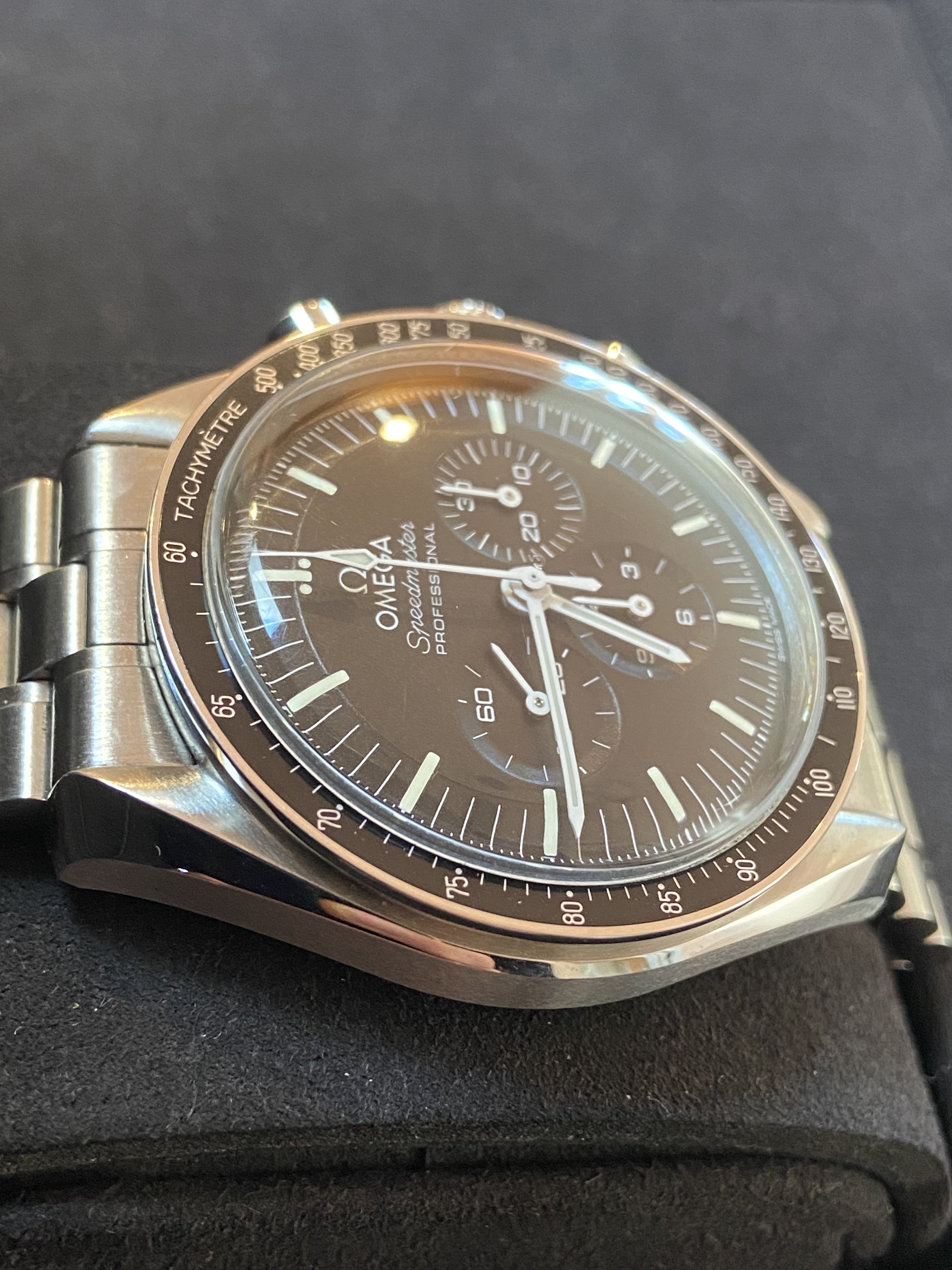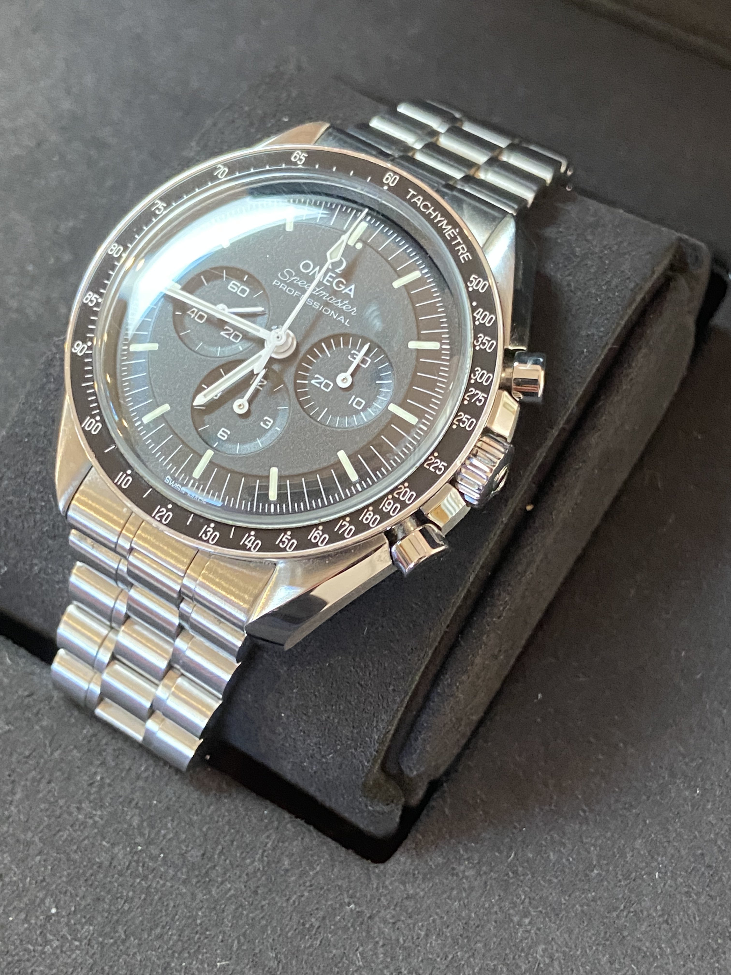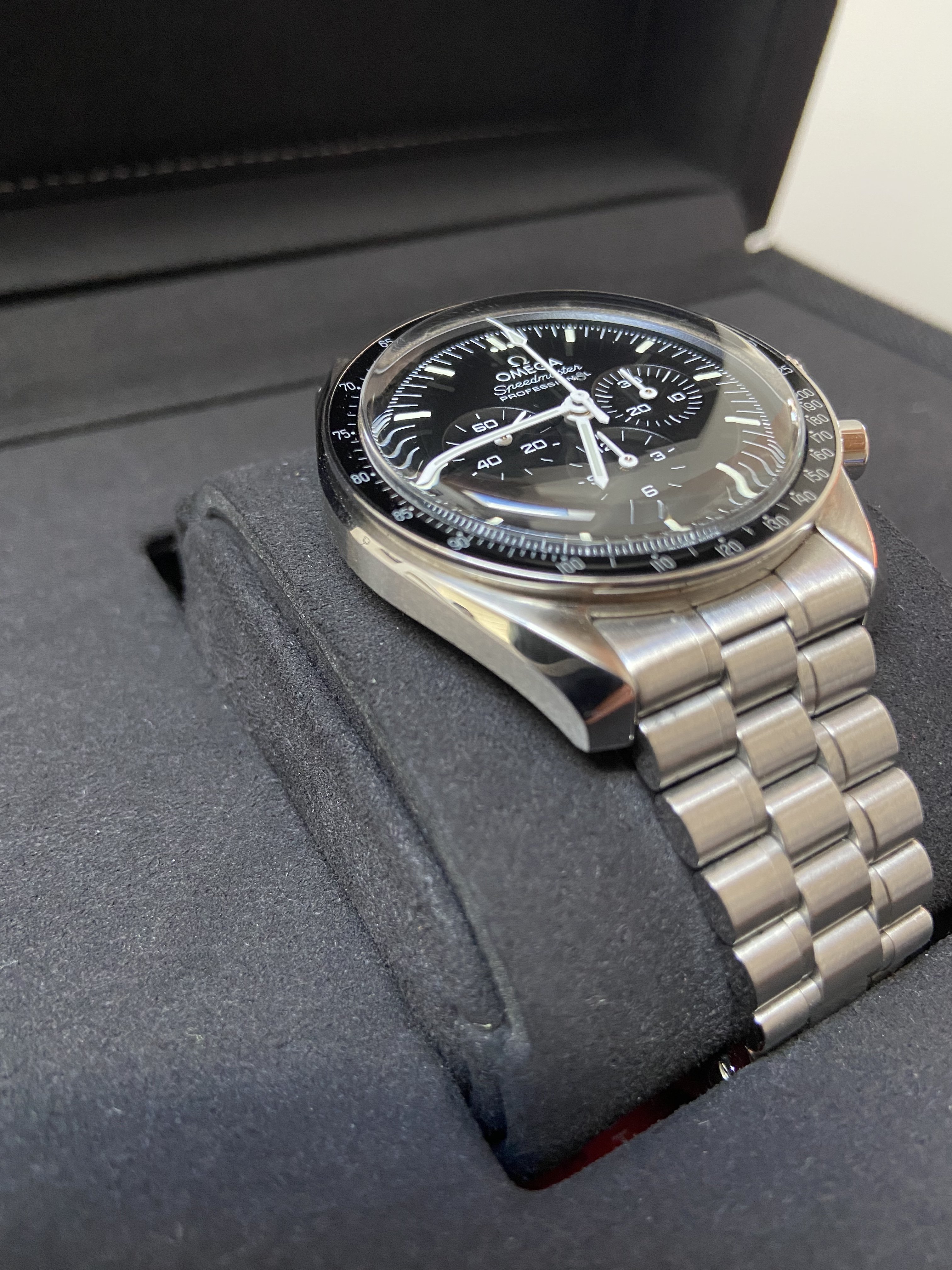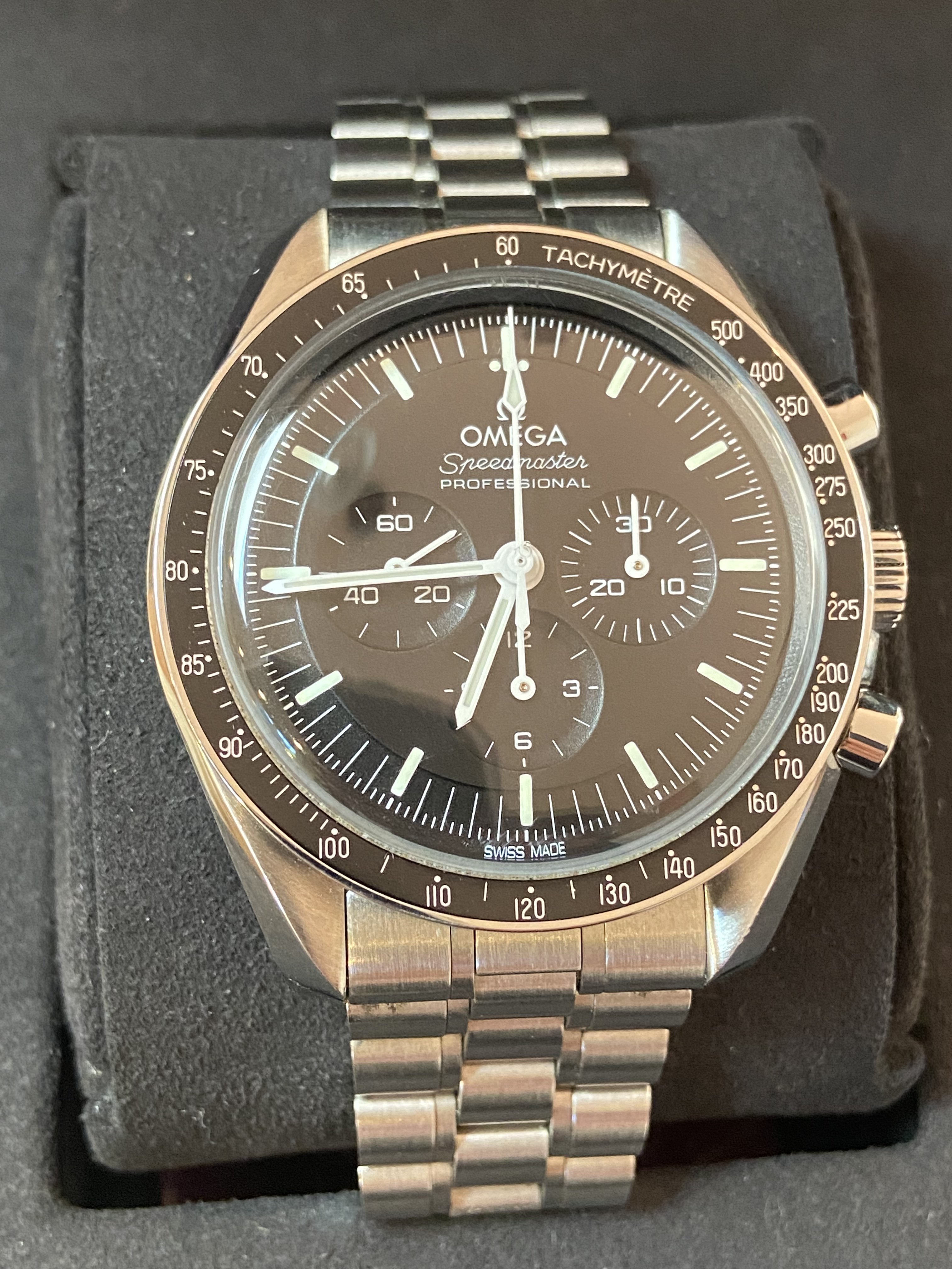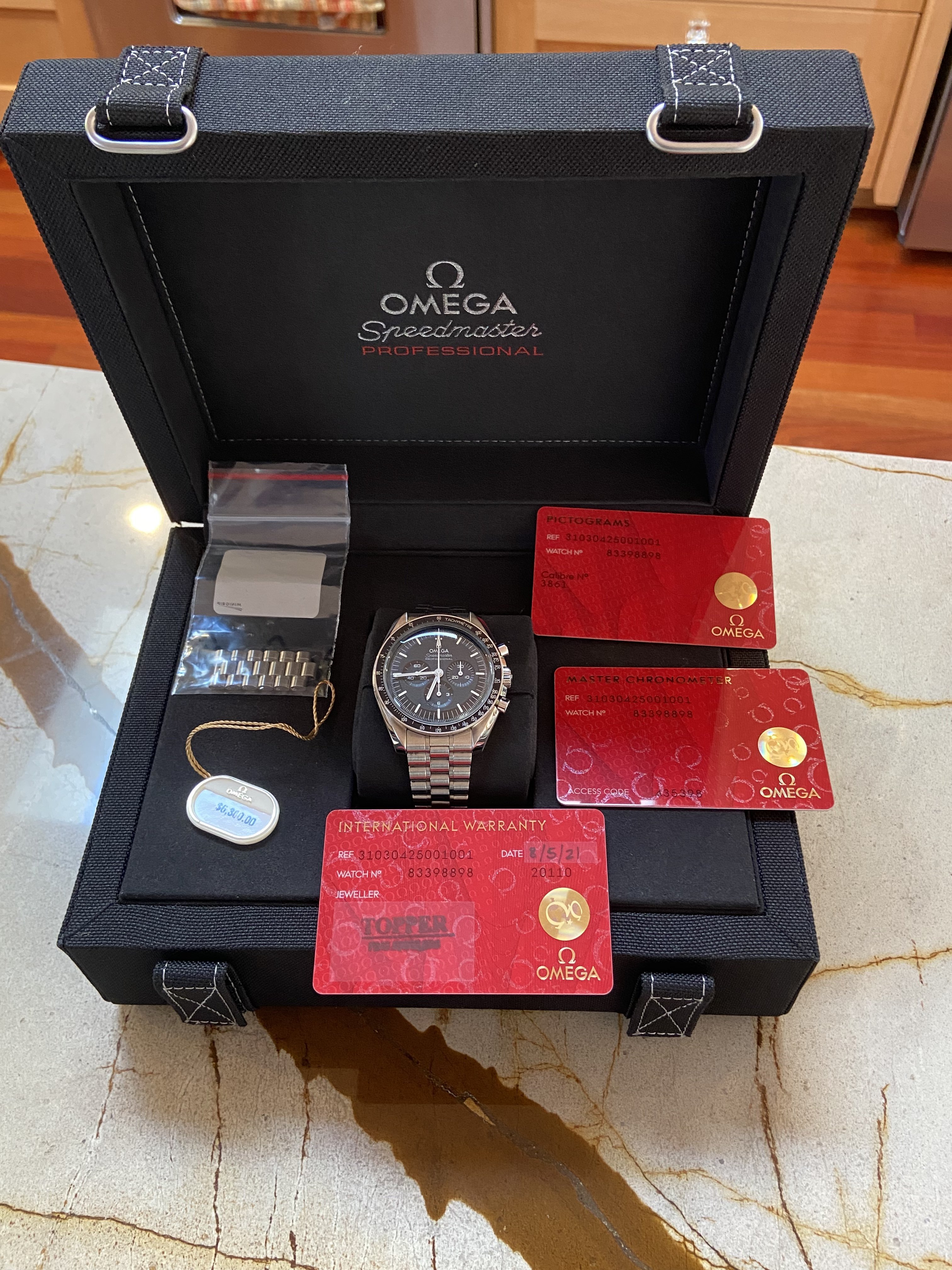 Well, I think I bought too many Speedmaster's this year and need to let one go. I bought this new 3861 just a couple months ago at Toppers, I really like it, but just tried on a FOIS at the OB (they had one left) and I bought it. I dont think I need 2 modern Speedy's so my loss can be your gain!