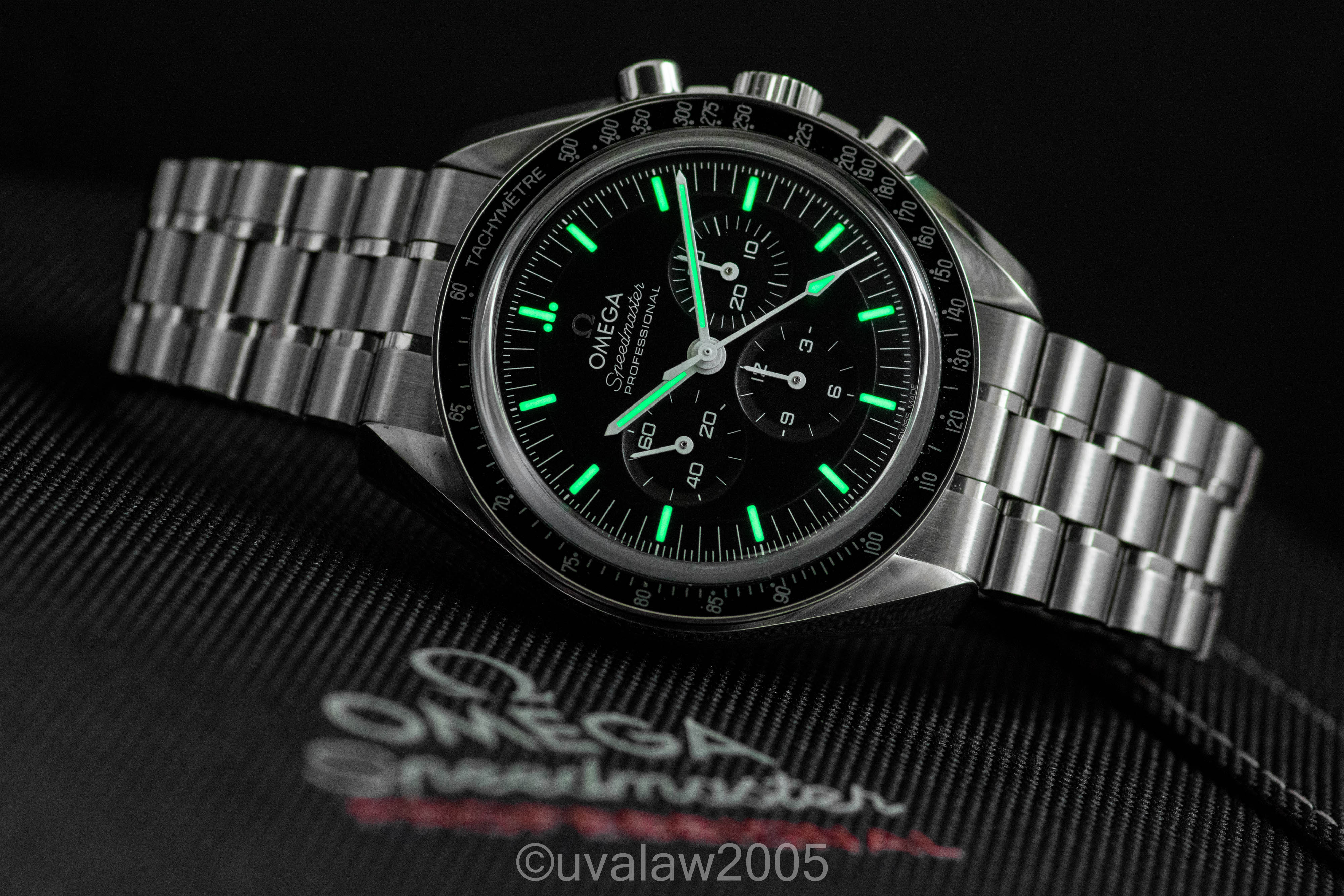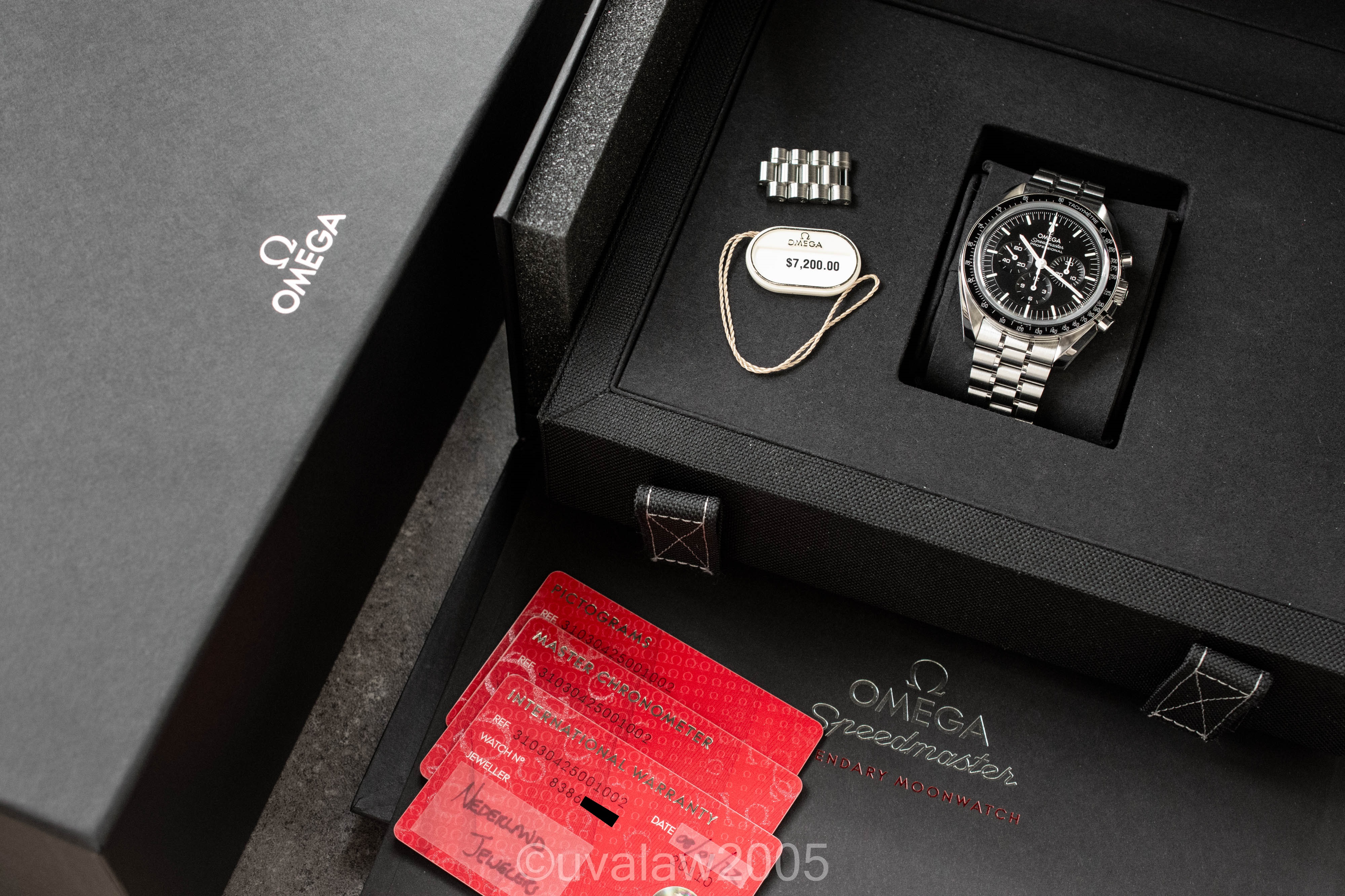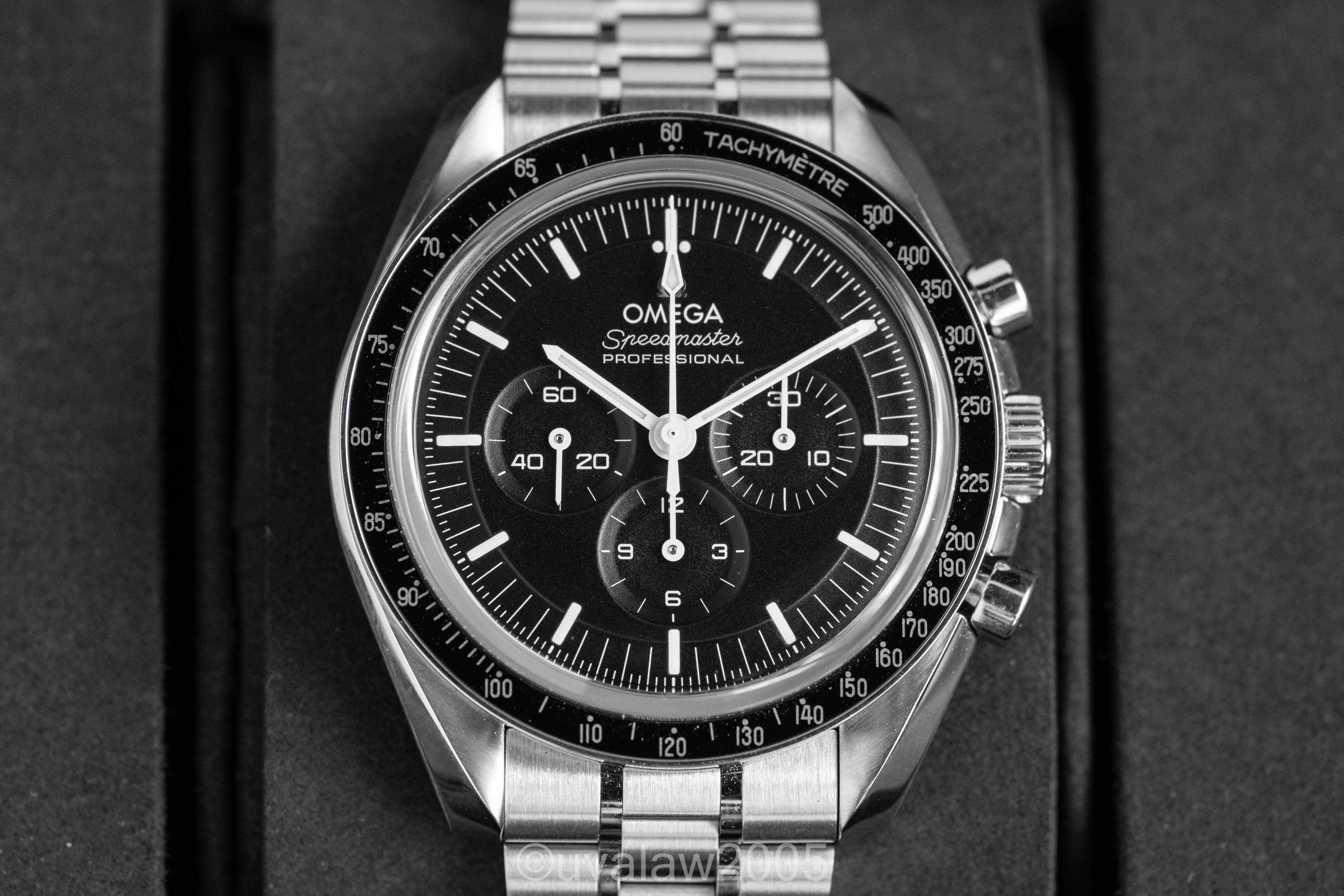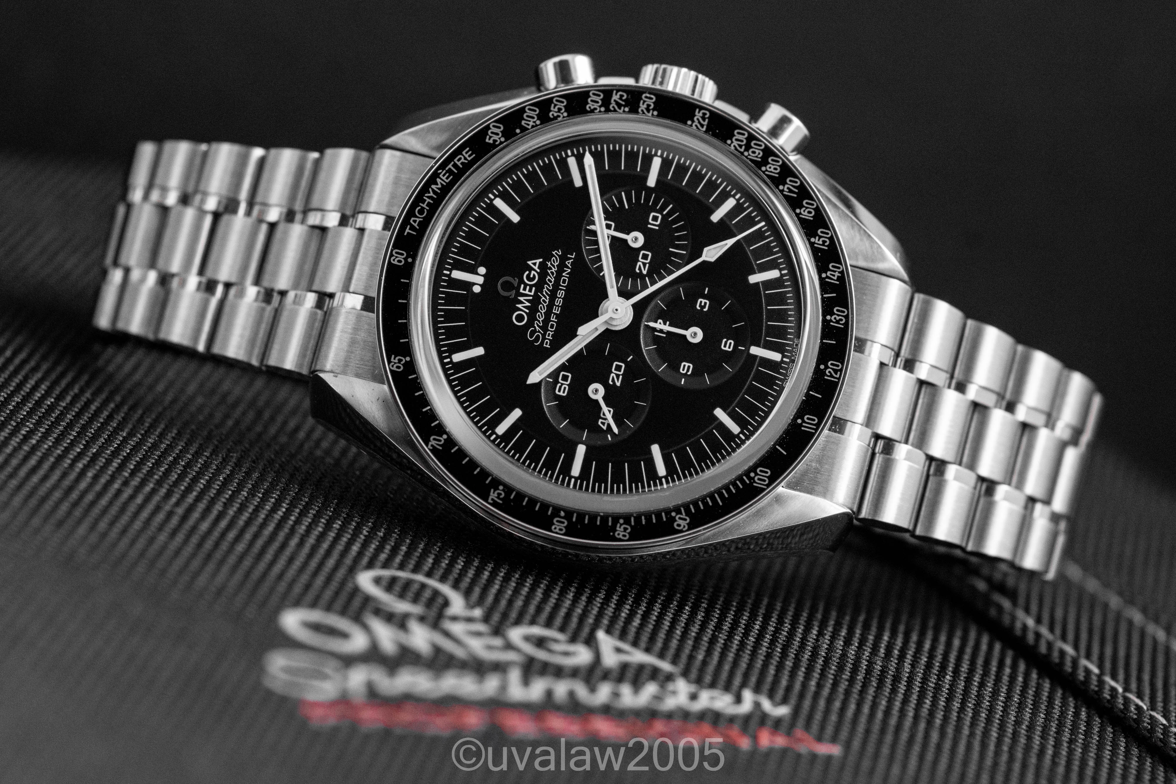 ·For sale is an Omega Speedmaster Professional Moonwatch Sapphire Sandwich with 3861 Co-Axial Master Chronometer movement, ref. 310.30.42.50.01.002, on OEM bracelet with all links. Near mint condition with only a few hints of wear to the polished surfaces.