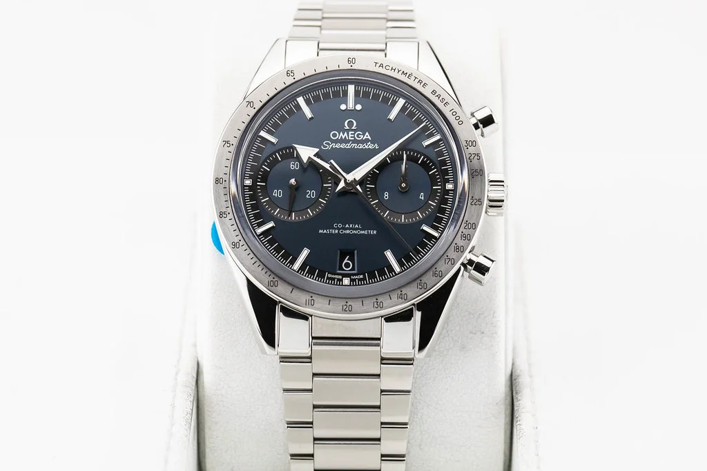 ·Up for sale is a brand new Omega Speedmaster '57 Blue Dial 40.5mm on Bracelet, reference # 332.10.41.51.03.001. It comes complete with all boxes, papers, booklet, hang tag and Omega Warranty Card dated December 2025.