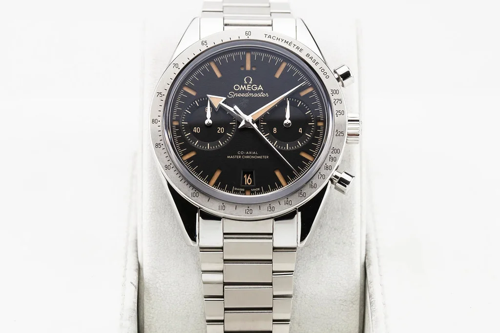 ·Up for sale is an excellent condition Omega Speedmaster '57 Novelties 2022 40.5mm on Bracelet, reference # 332.10.41.51.01.001. It comes complete with all boxes, papers, booklets, hang tag and Omega Warranty Card dated September 2022.