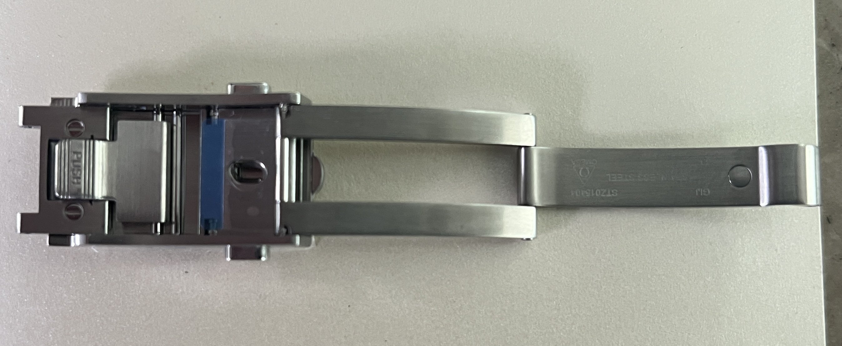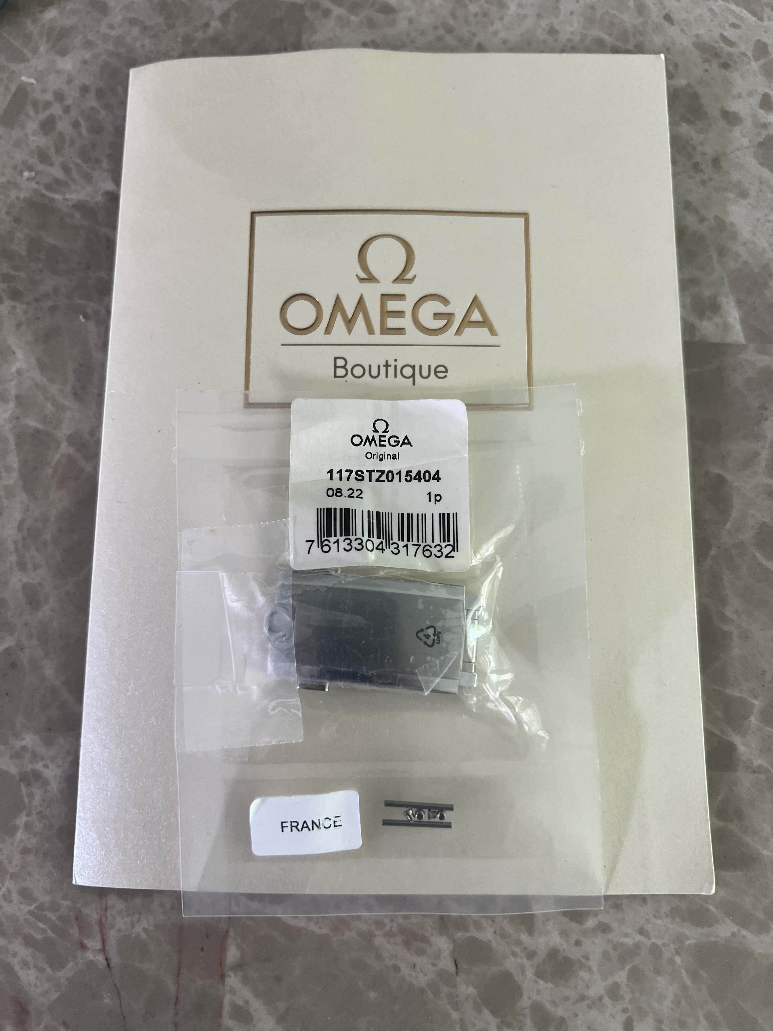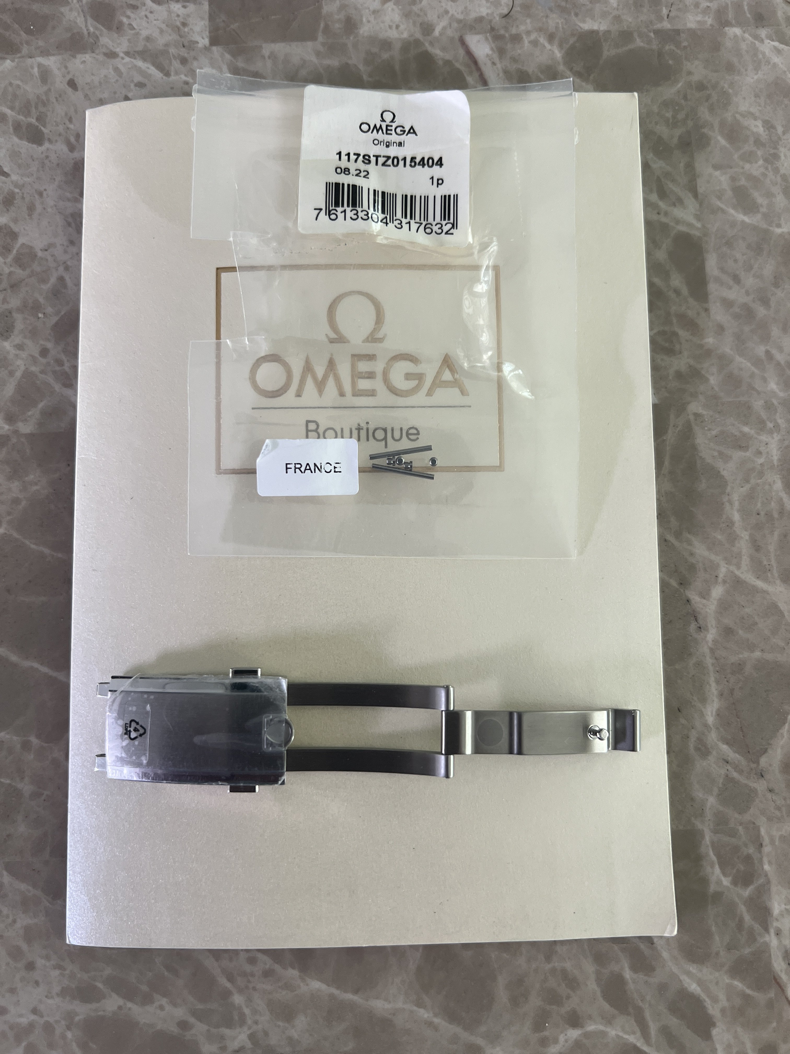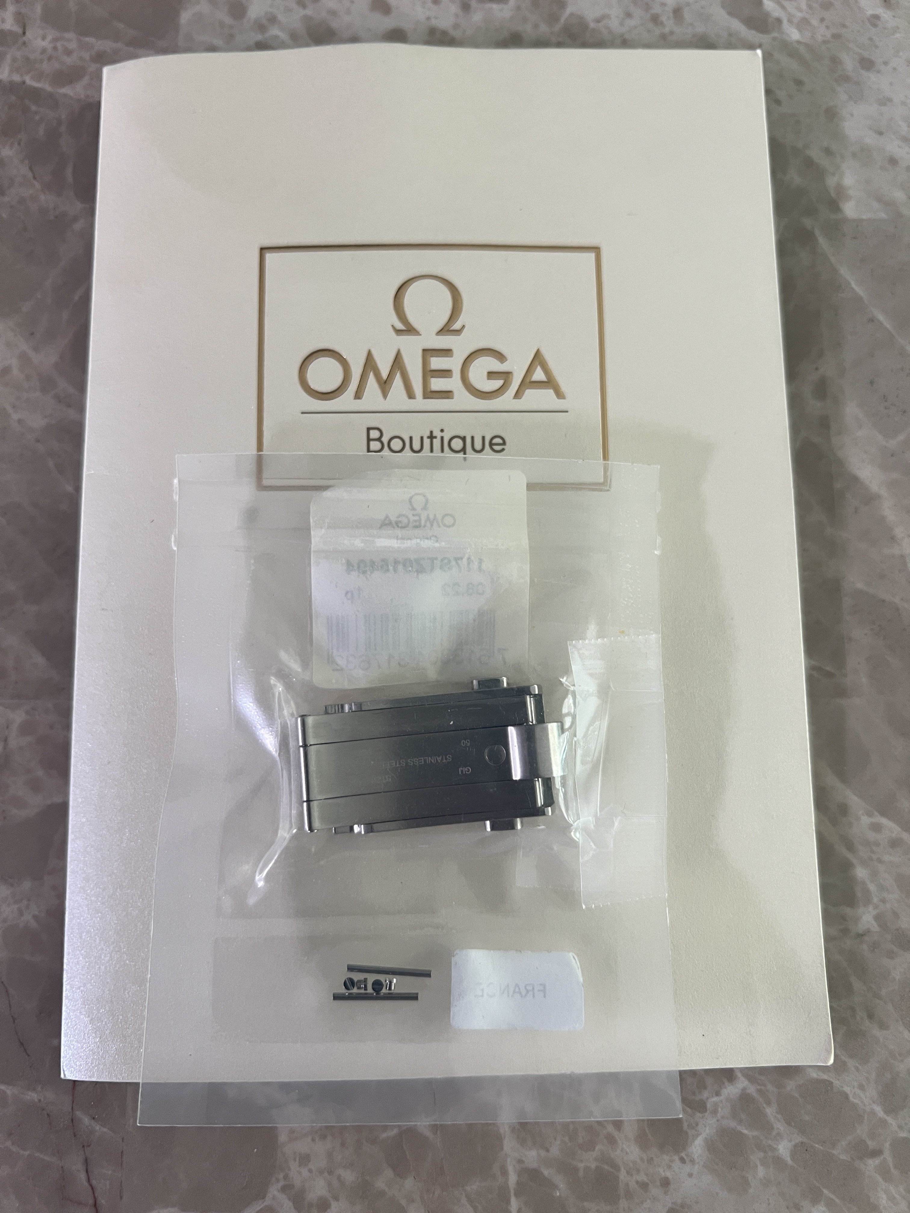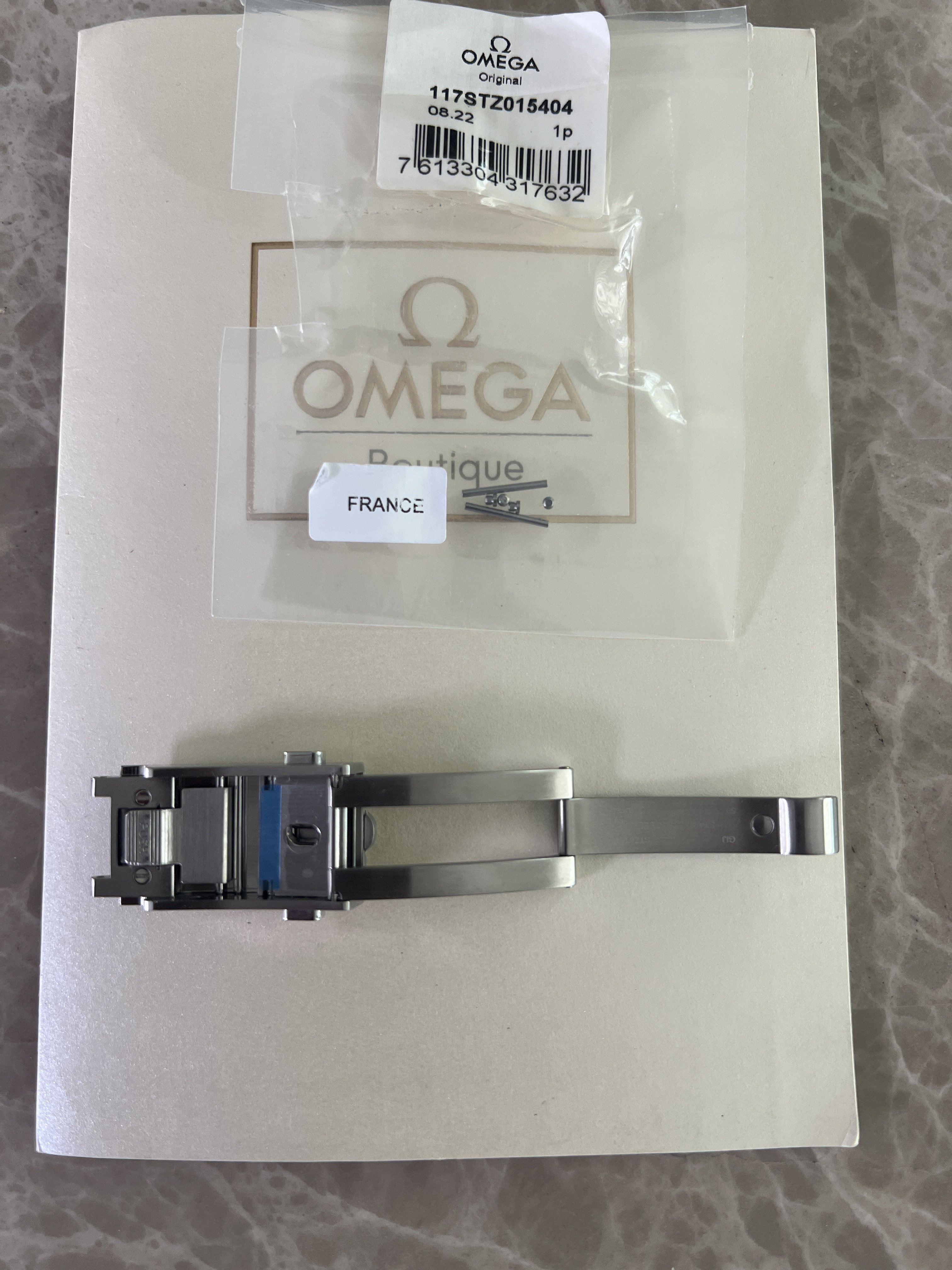 ·*SOLD* For sale ($295 OBRO) have a genuine 20 MM Omega Speedmaster flat link bracelet clasp, reference 117STZ015504. This clasp comes from factory on the Speedmaster 57 bracelet (reference 020STZ015403) and has pushbutton adjustable length clasp. The clasp is very desired by many as can be adapted on various current Omega flat link bracelets, such as the Speedmaster 50th anniversary, the Speedmaster 321, etc. and likely on other vintage Omega / third party flat link bracelets to obtain the nice vintage style Omega symbol plus the pushbutton length adjustment (check on Internet for more details on the subject).