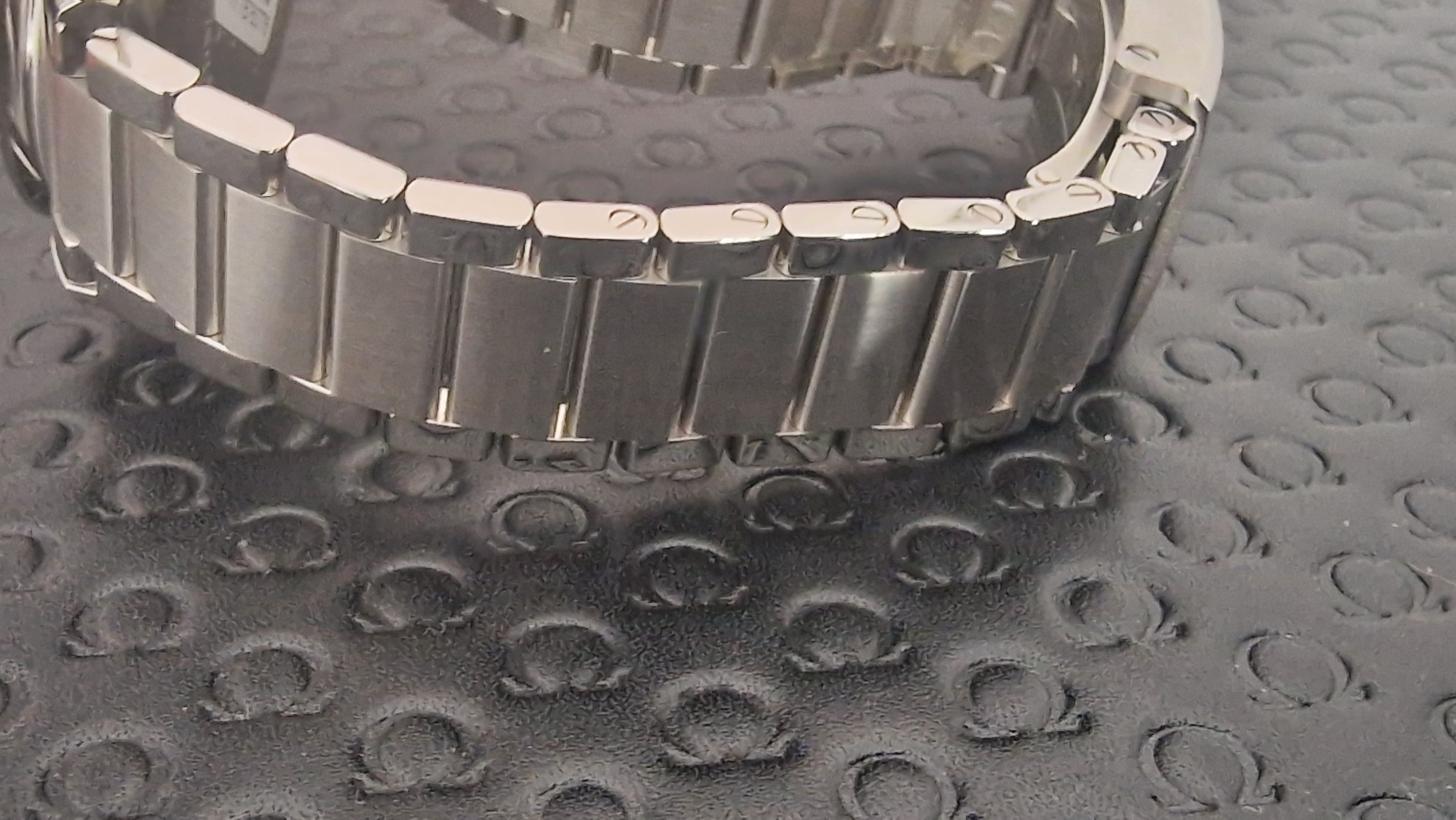 The updated stainless steel bracelet features a retro-style OMEGA logo on the clasp. It is powered by OMEGA calibre 1861.