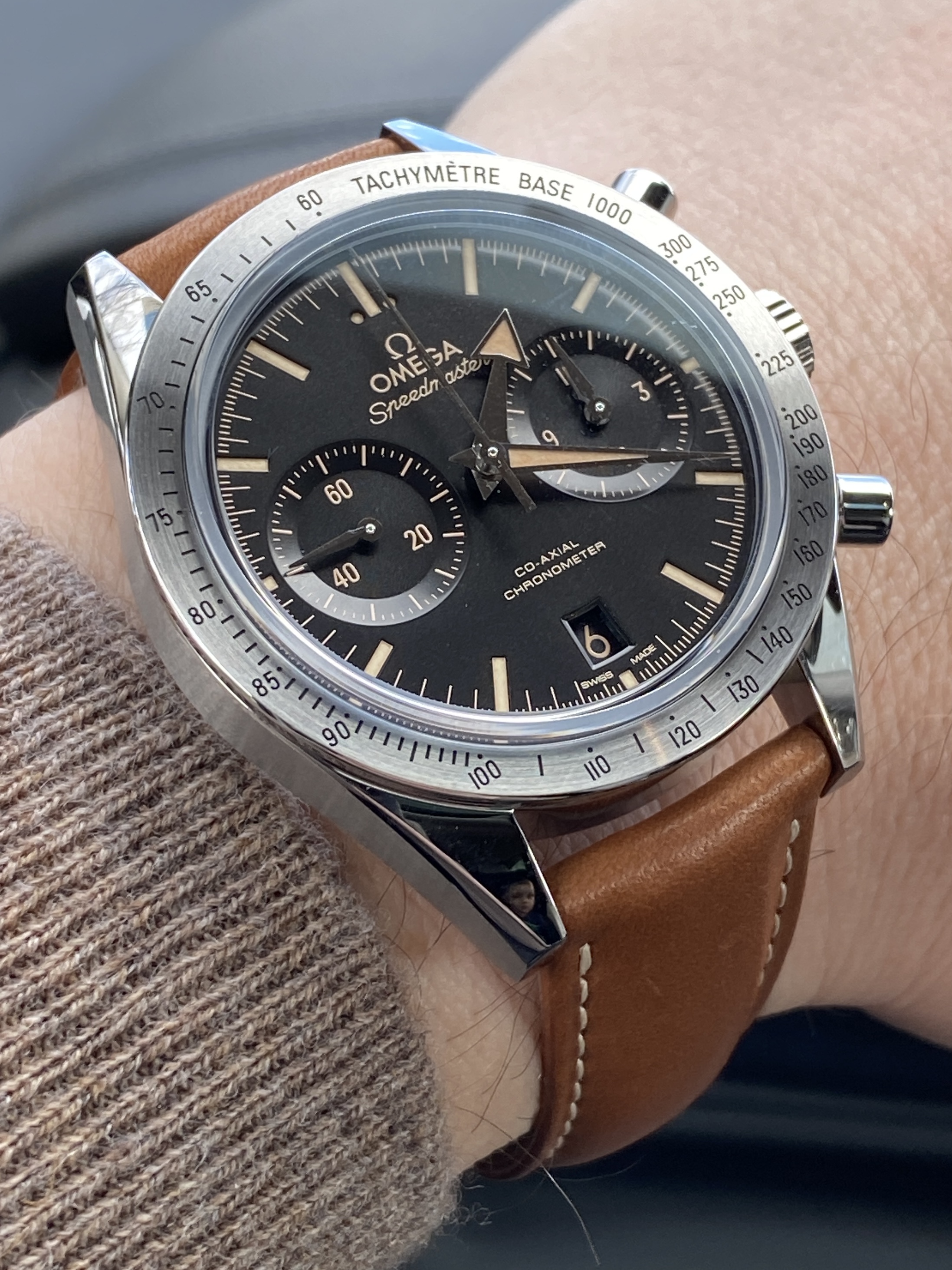 I am huge OMEGA freak with Omega only collection (7 pieces now, 8 soon). Last weekend after search for a two-counter chronograph I eventually pulled the trigger for good old '57. Now after two first days together and trying to browse some more info about this watch I wonder why it is so unpopular. Is it the thickness? Price? Anything else?