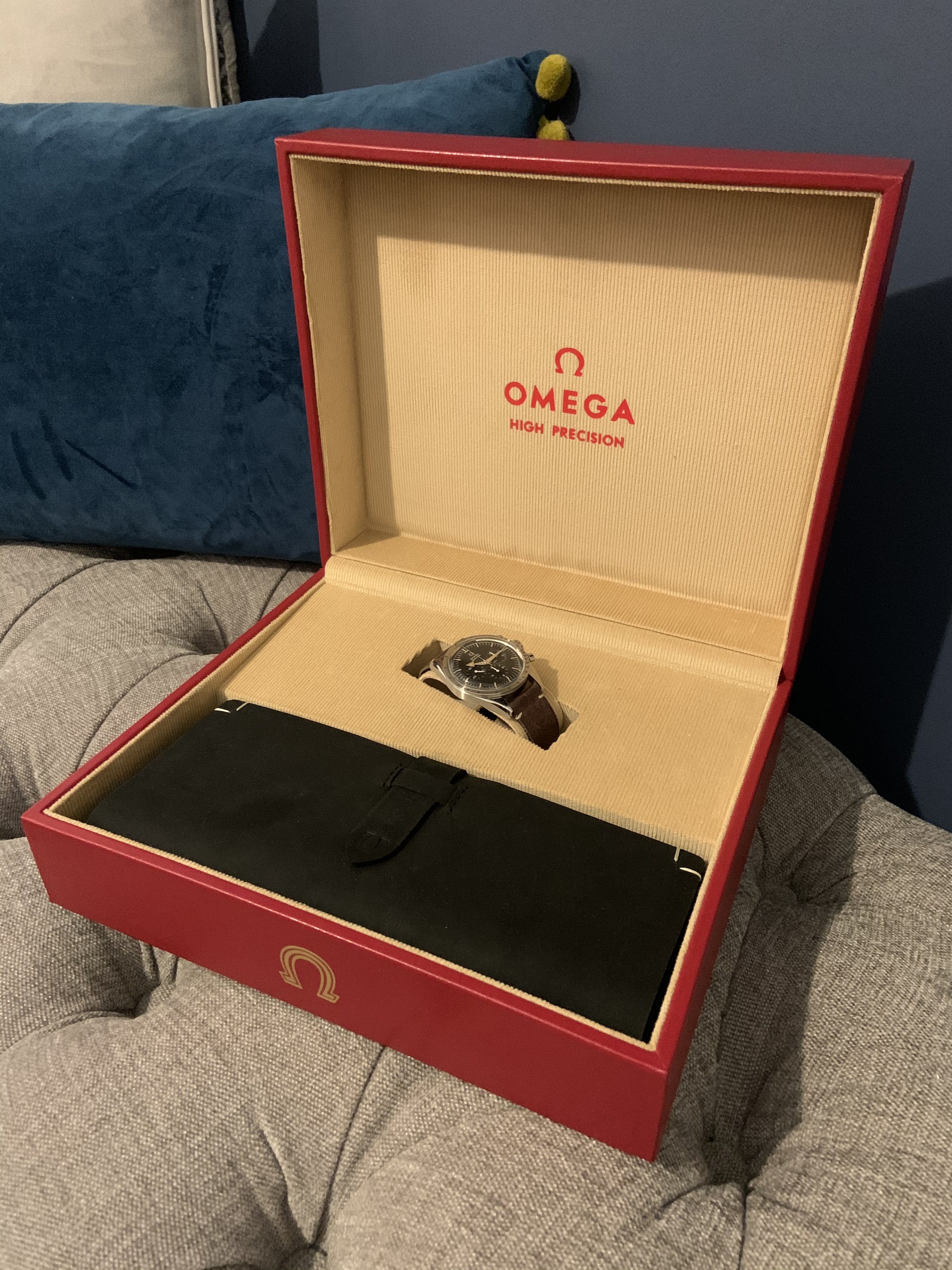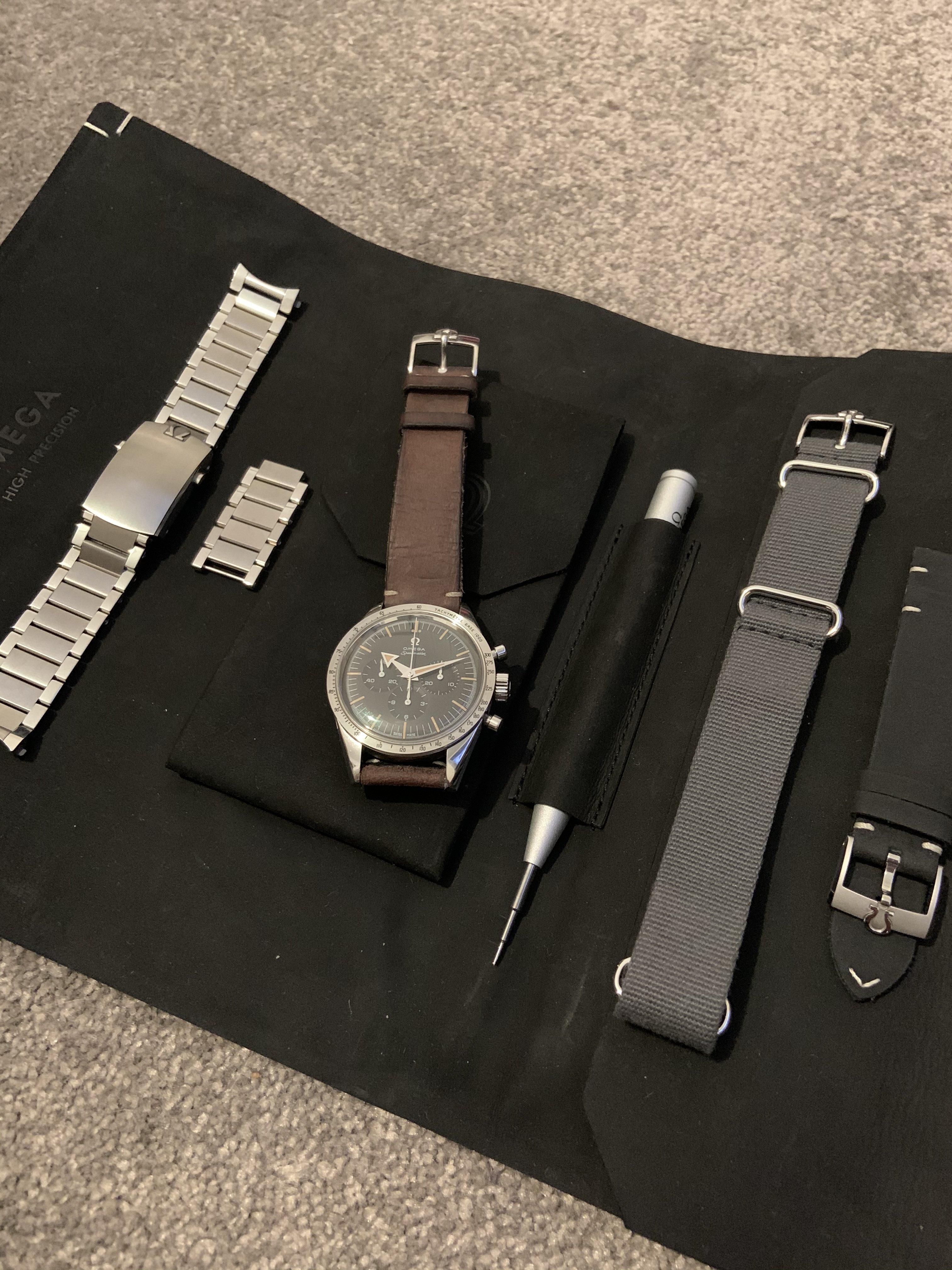 Full set from my collection as original owner. The bracelet and NATO have NEVER been worn. The leather strap has been used and so a brand new, original Omega soft leather strap in black has been included with the set.