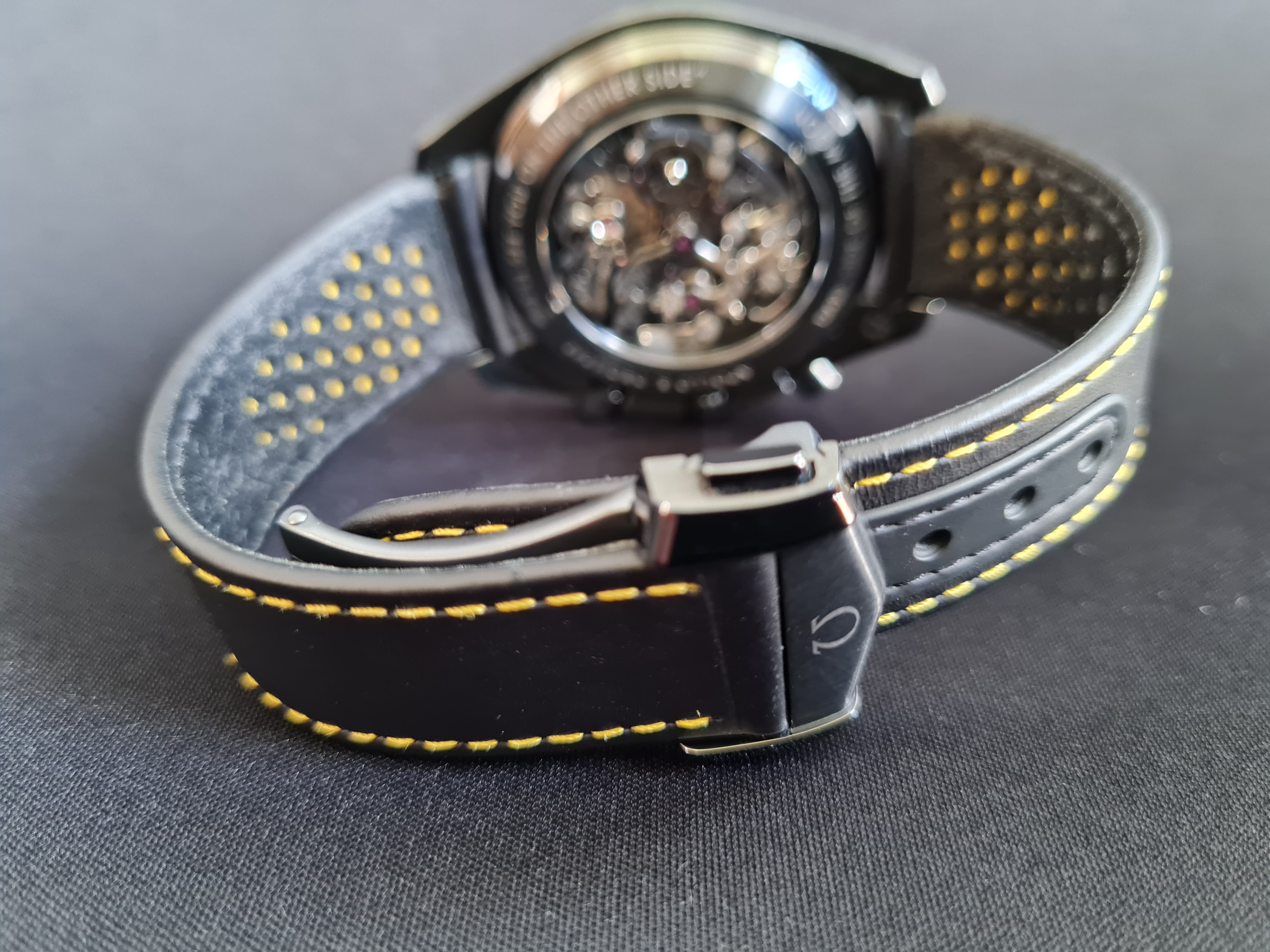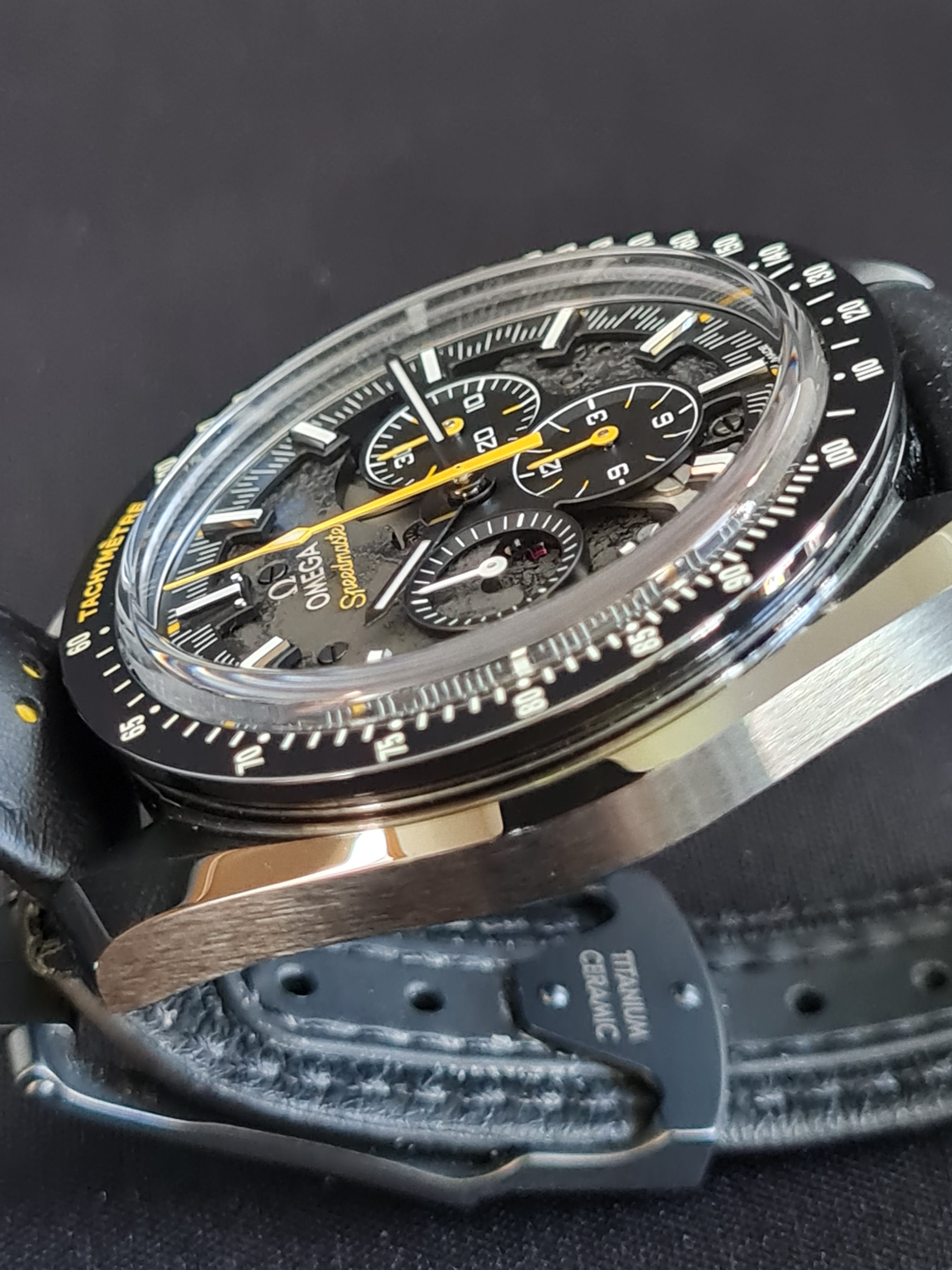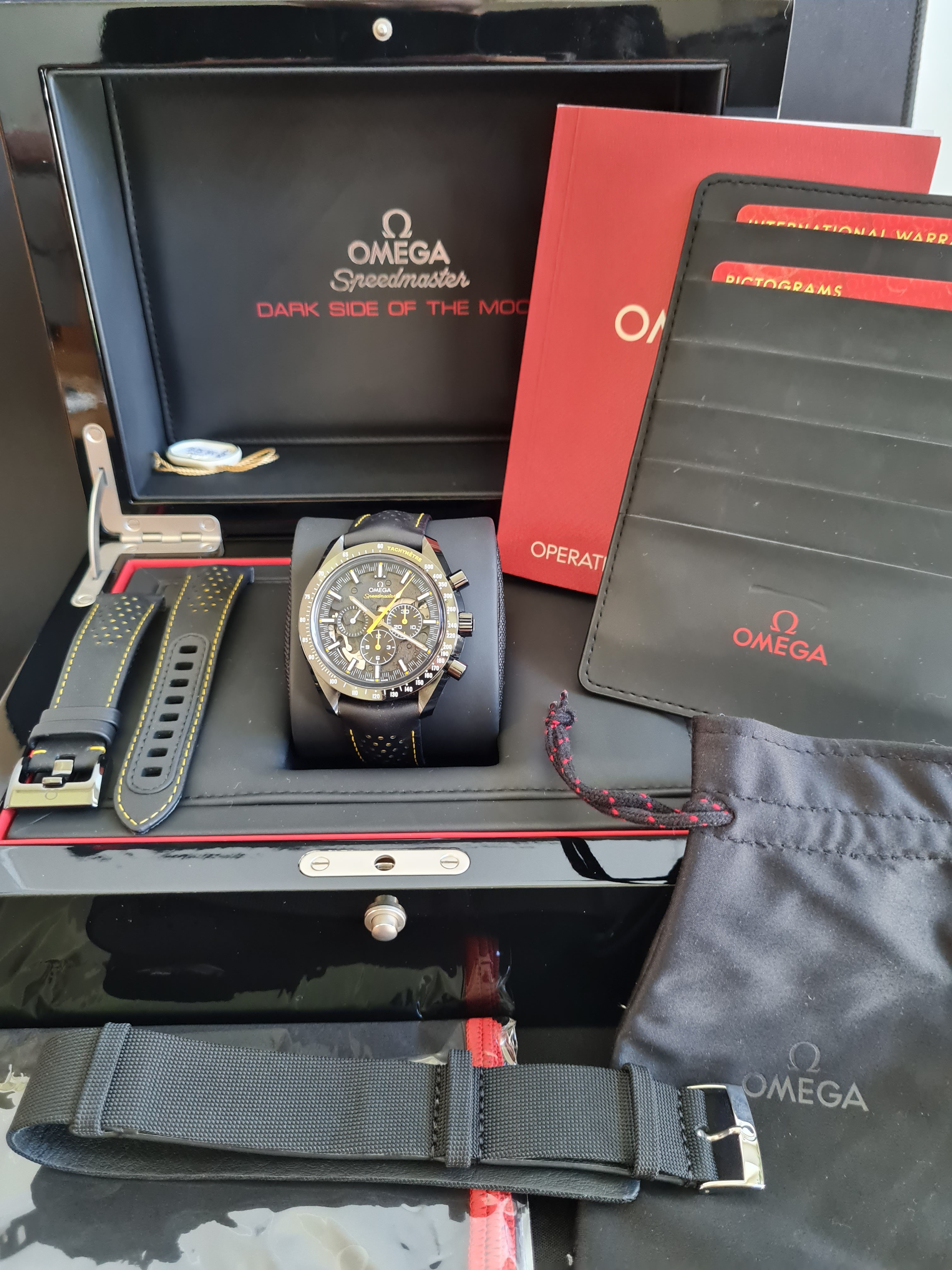 The extras: I am selling with the alternative Omega strap (the same colours and materials as the original strap) with original Omega titanium/ceramic buckle. It fits this watch perfectly and it was recommended as an alternative in many threads. I find it very comfortable and easier to wear vs the original strap. Currently this alternative strap is on the watch as you can see on the pictures. Addtionally I am also selling the watch with an original Omega black fibric/leather NATO that fits this watch very nicely.