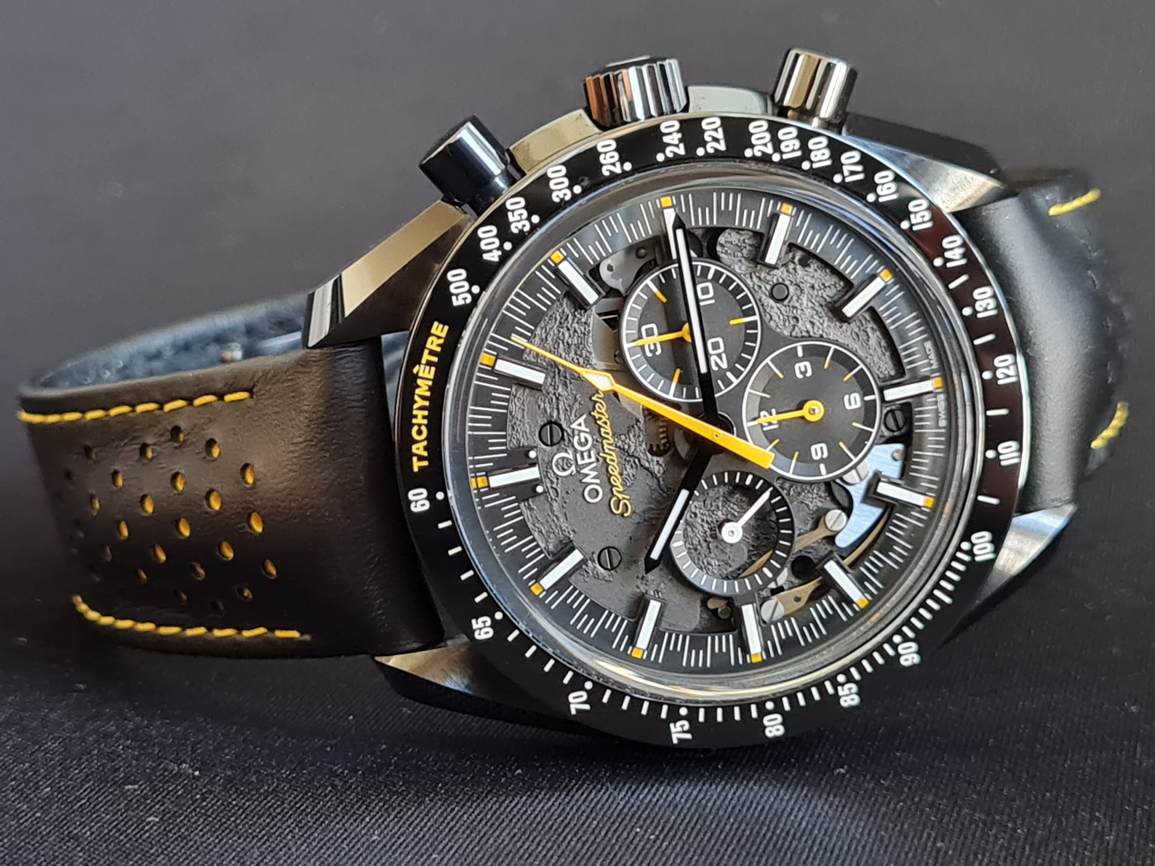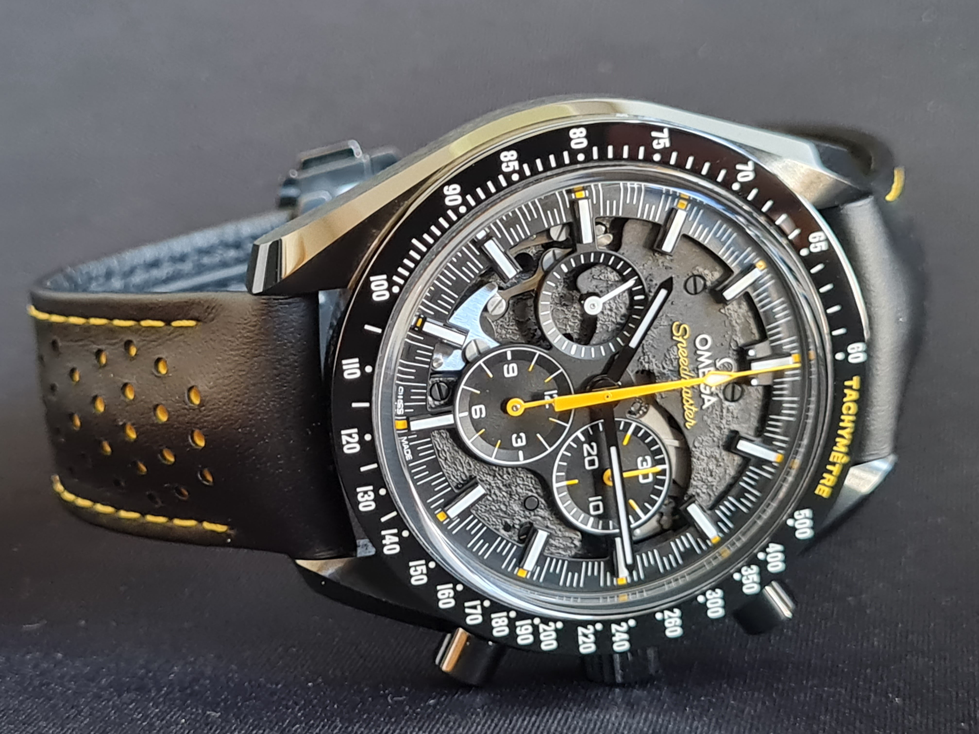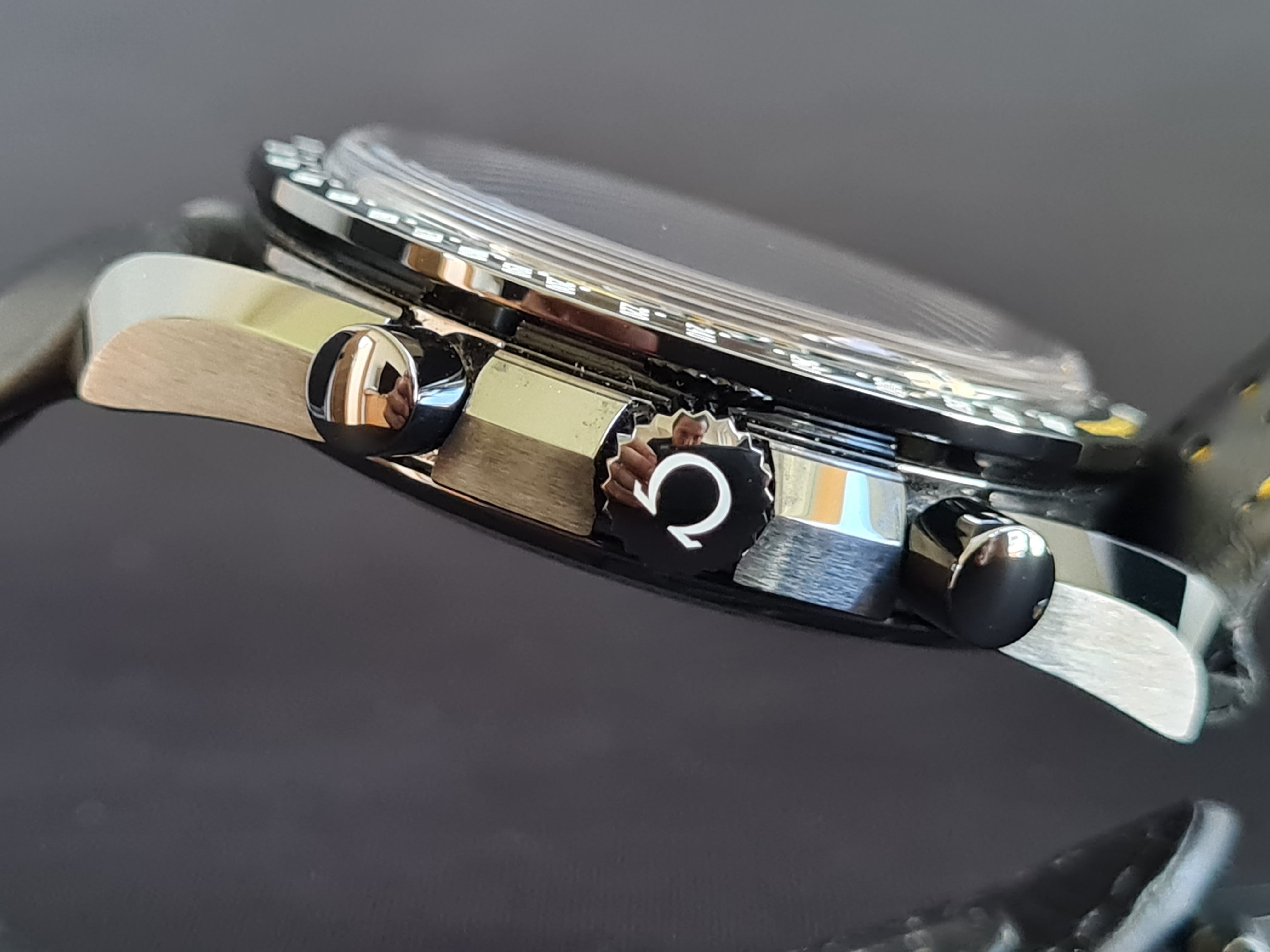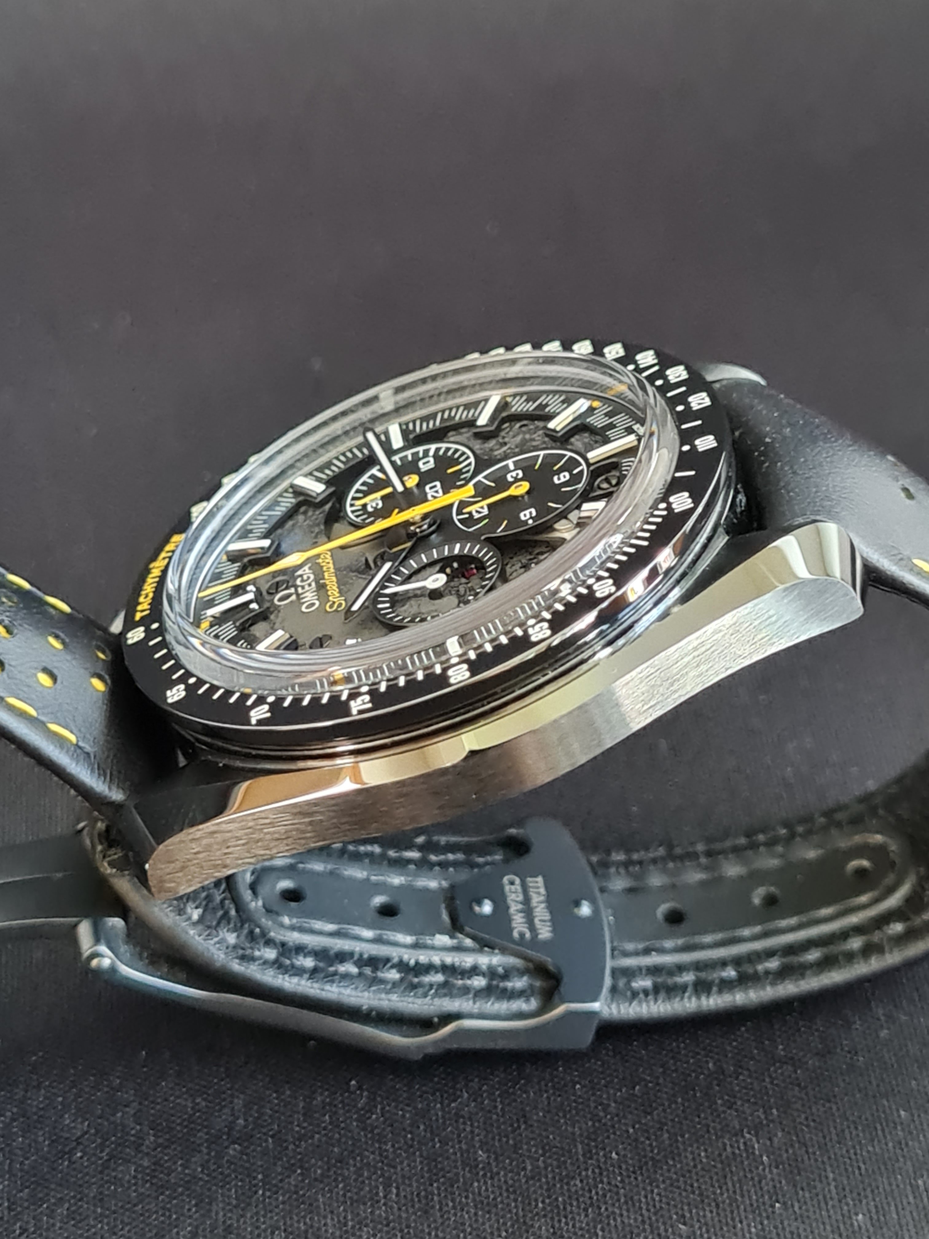 The extras: I am selling with the alternative Omega strap (the same colours and materials as the original strap) with original Omega titanium/ceramic buckle. It fits this watch perfectly and it was recommended as an alternative in many threads. I find it very comfortable and easier to wear vs the original strap. Currently this alternative strap is on the watch as you can see on the pictures. Addtionally I am also selling the watch with an original Omega black fibric/leather NATO that fits this watch very nicely.
