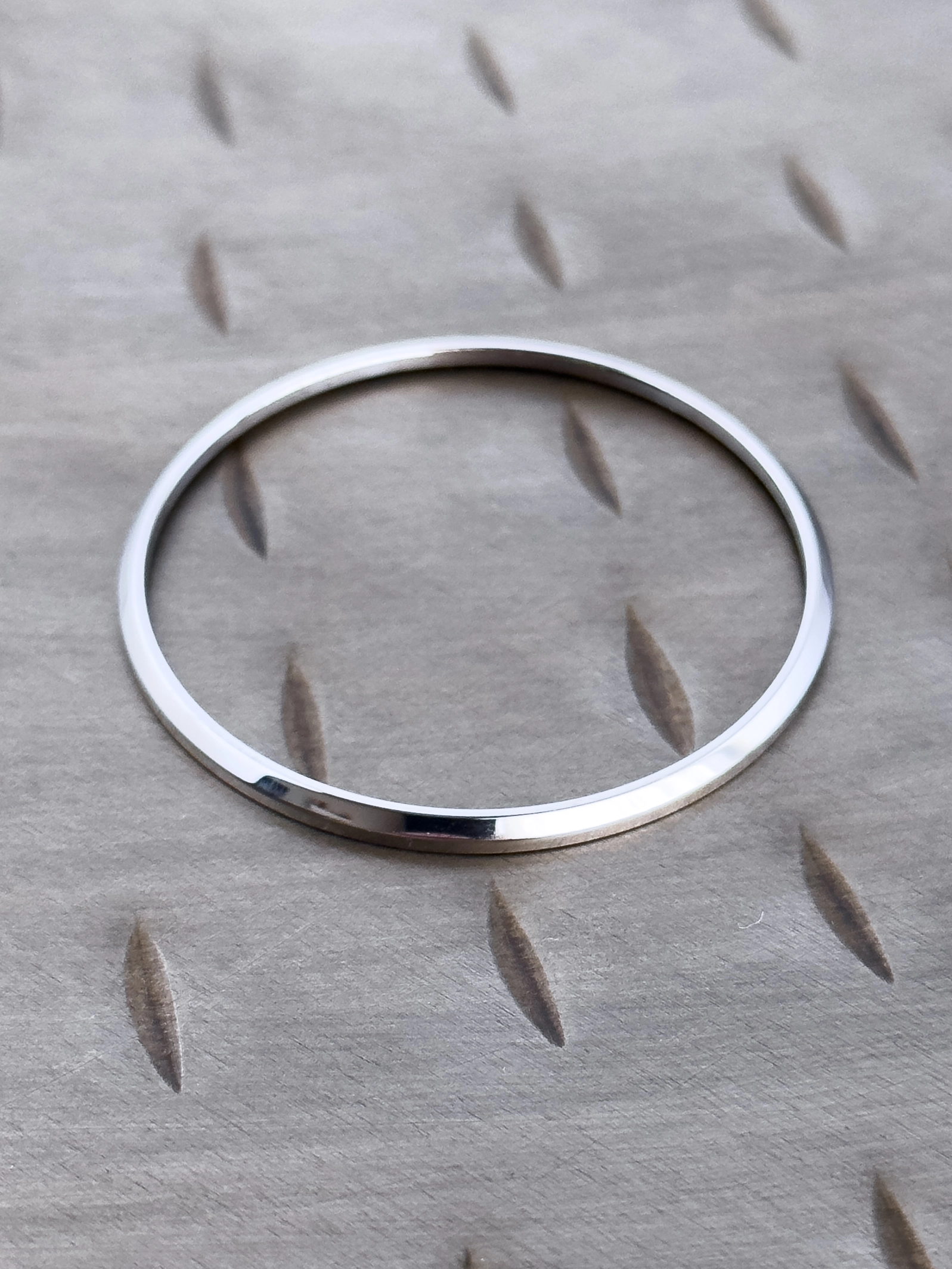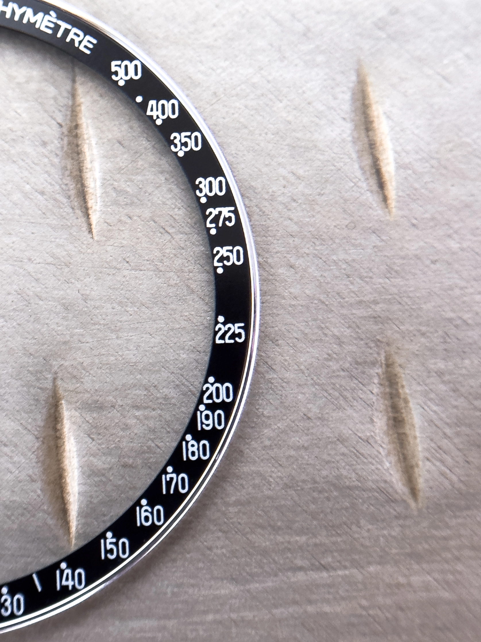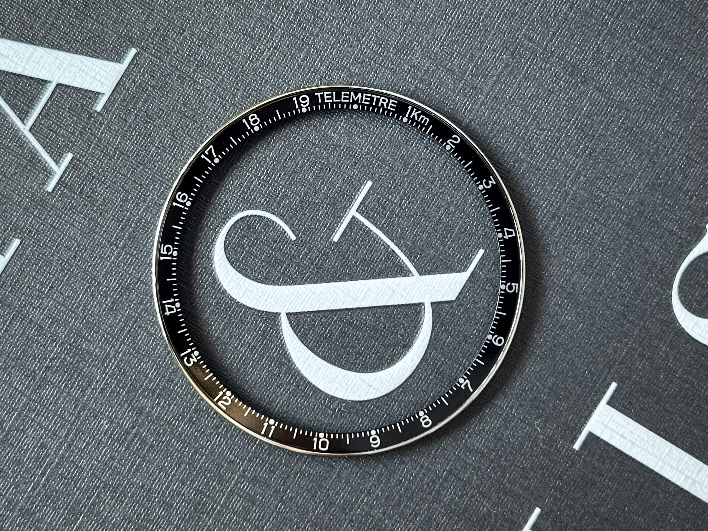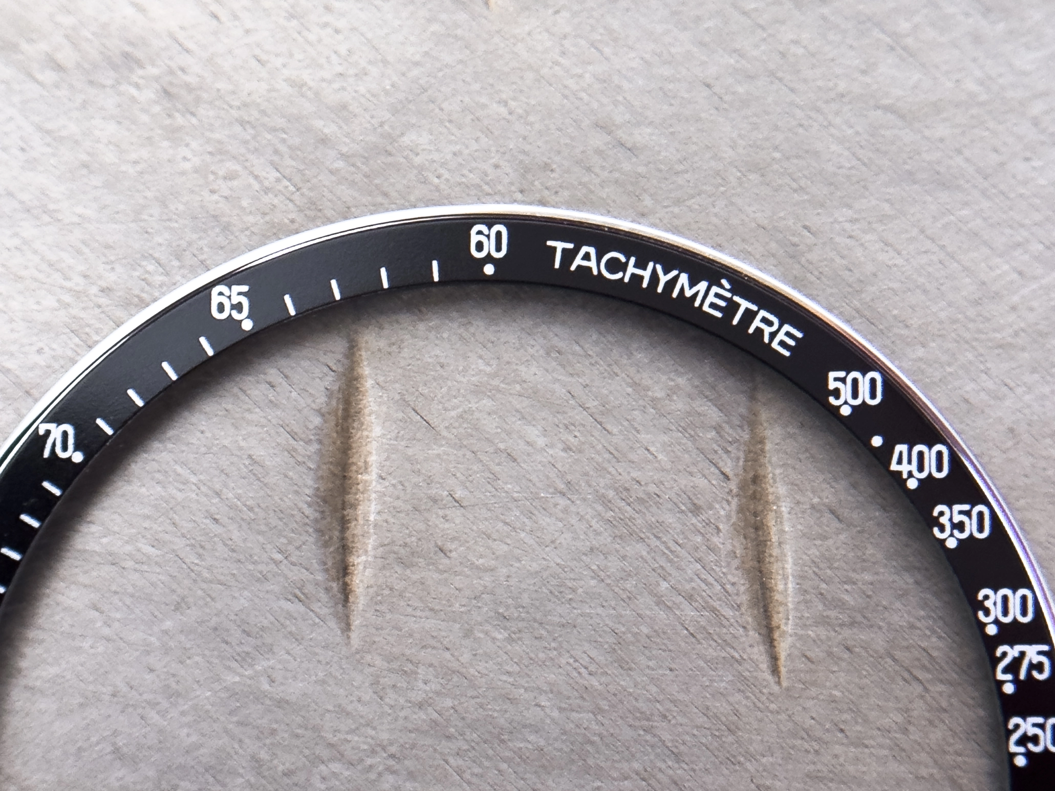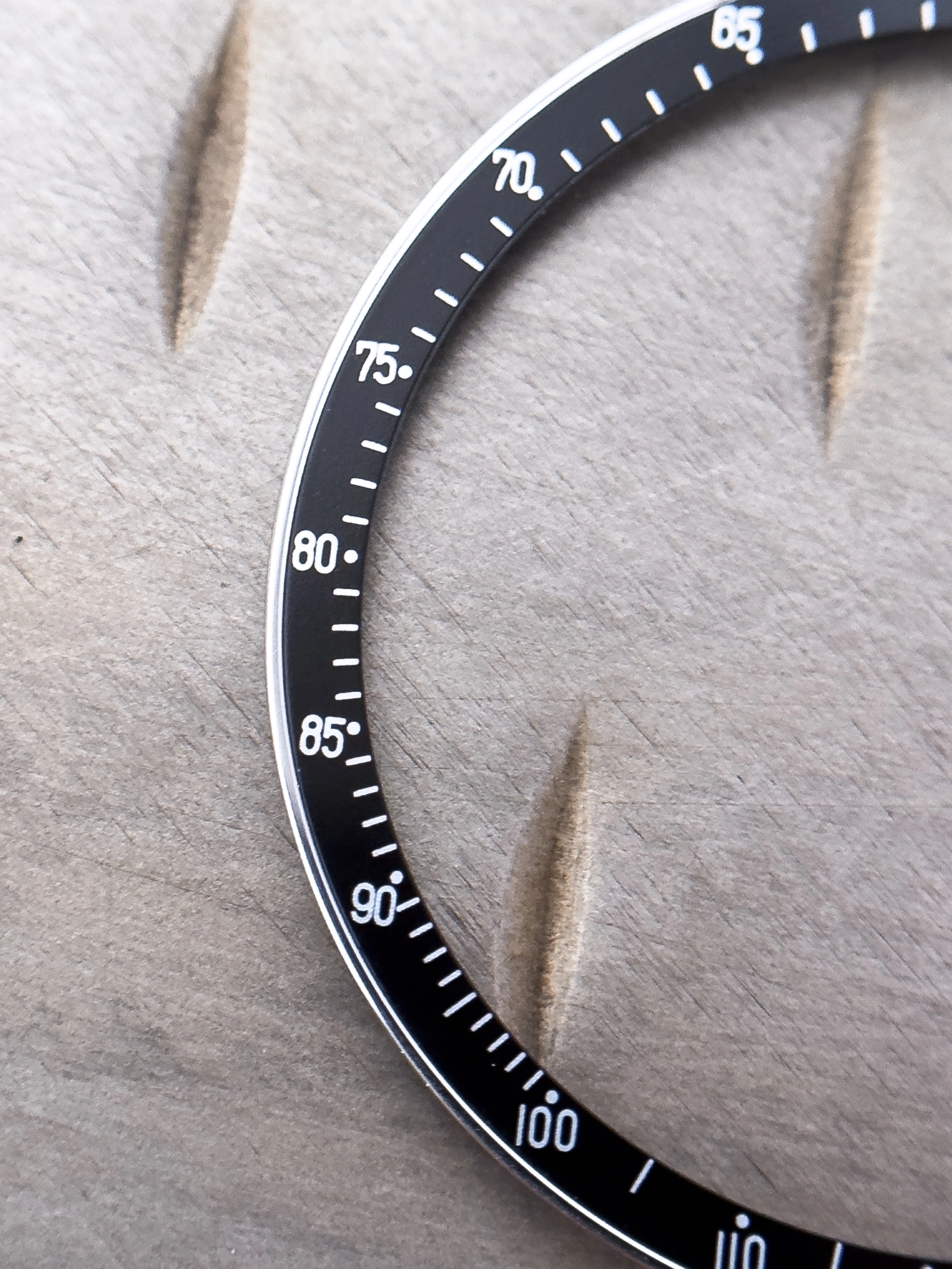 This bezel came off my brand new 3861 Speedmaster a few days into ownership and has since been stored away for a future project. The condition remains like new. If you see anything on the bezel in the photographs, it is dust. While the polished ring is only compatible to the 3861 case using a spacer, the bezel itself shares the same dimensions as earlier Speedmaster Pro bezels and can be seated in the rings to fit earlier Speedometer Pro cases. Great for a mod or project without using an aftermarket part. This bezel does not come with any Omega packaging as it came directly off my watch.