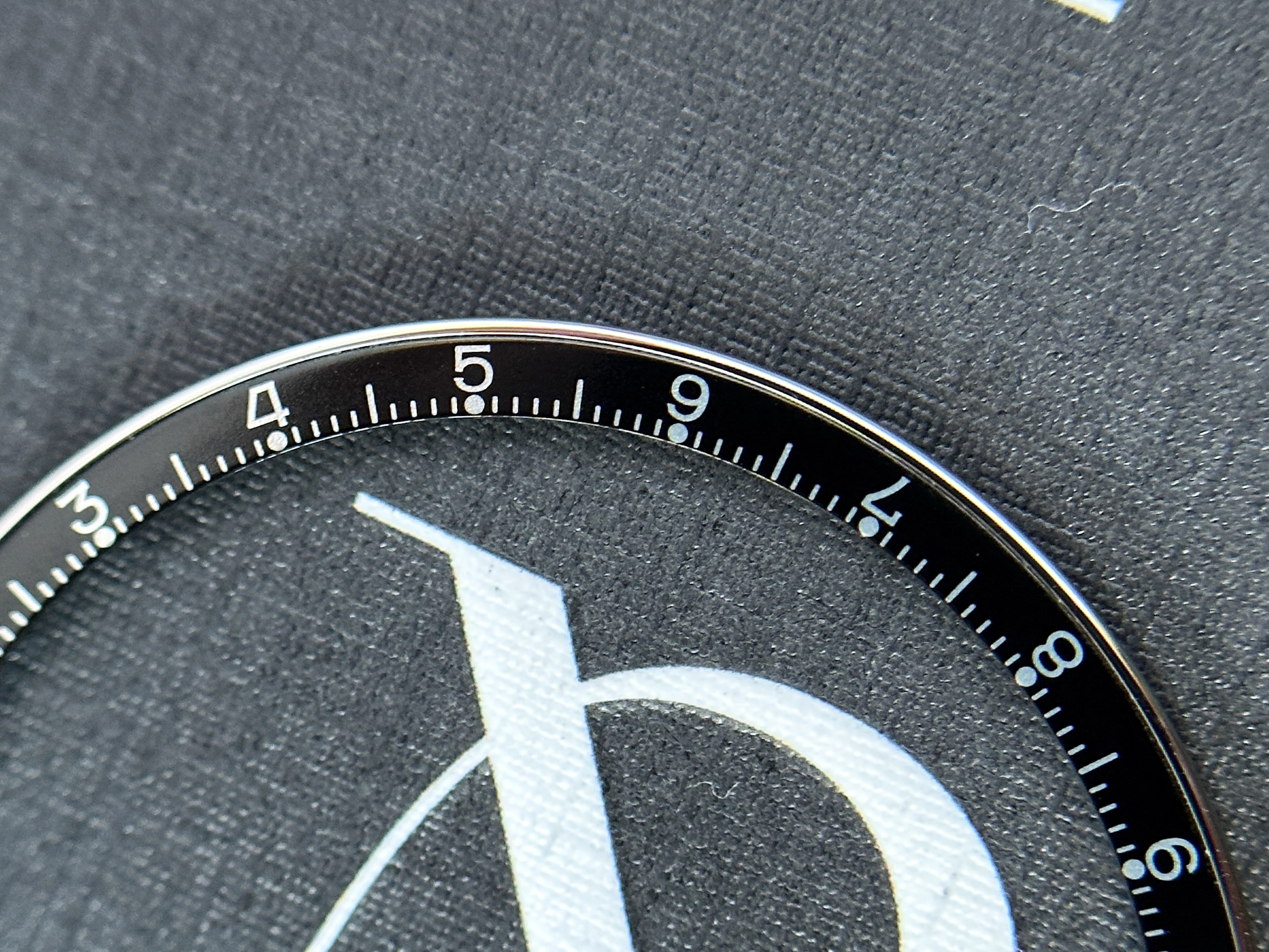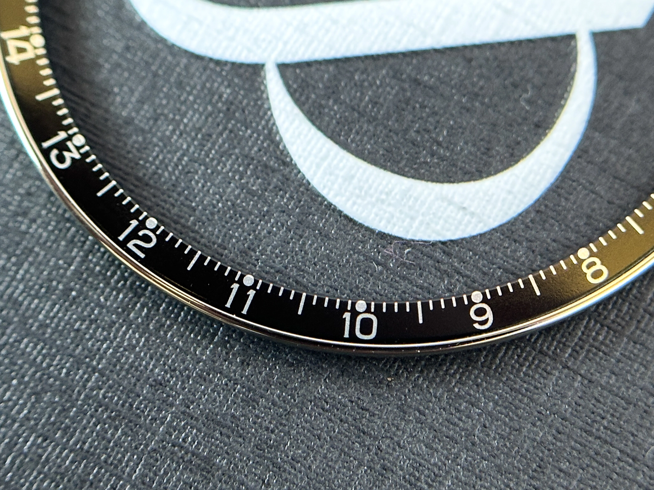 I ordered this bezel new/unopened for a specific project, proceeded to open the packaging, and upon holding the bezel for the first time, decided to retain it for a different project. It has never been mounted to a case, so the condition remains like new and unused. Just open packaging. If you see anything on the bezel in the photographs, it is just dust.