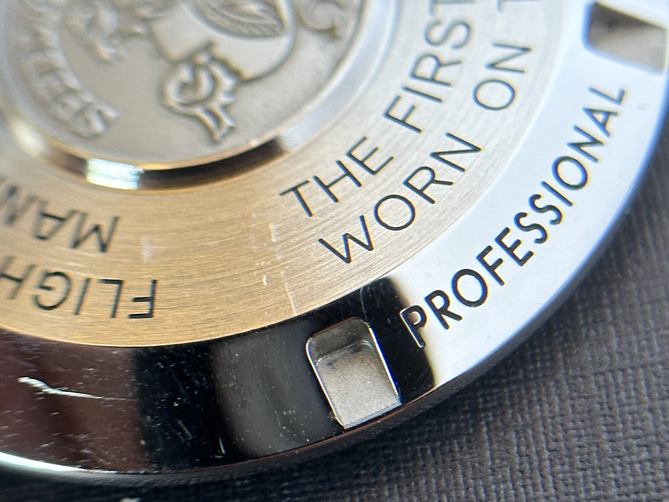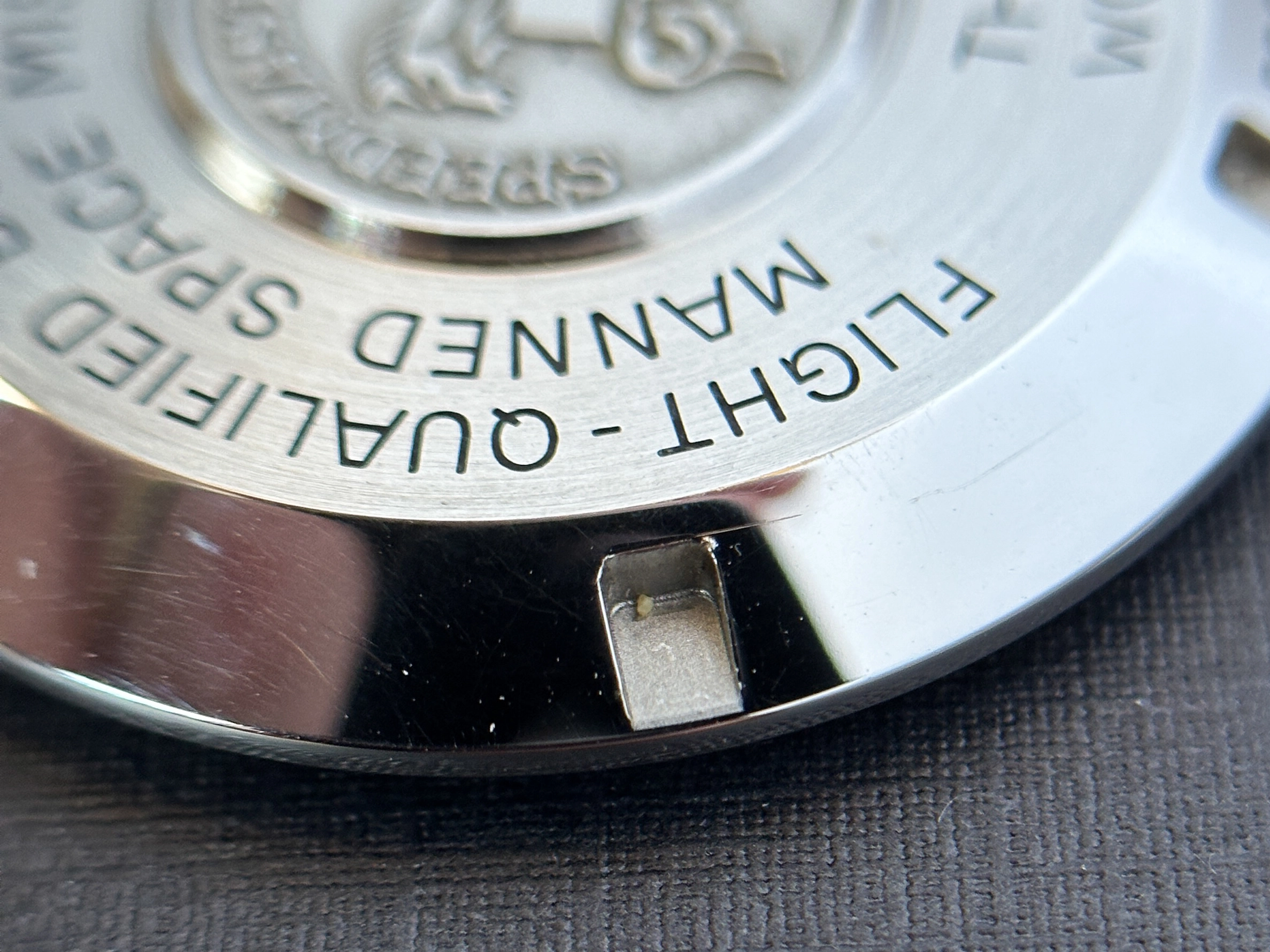 This came off my 1861 Speedmaster that I had modded using a TinTin dial. I alternated between using this caseback and a sapphire caseback until I eventually found a new/sealed TinTin caseback and relegated this one to storage. There are a few slip marks on the outer polished surfaces, as shown in the pics below, along with superficial wear marks from repeated wear. That said, the caseback is in good condition and ready to be used.