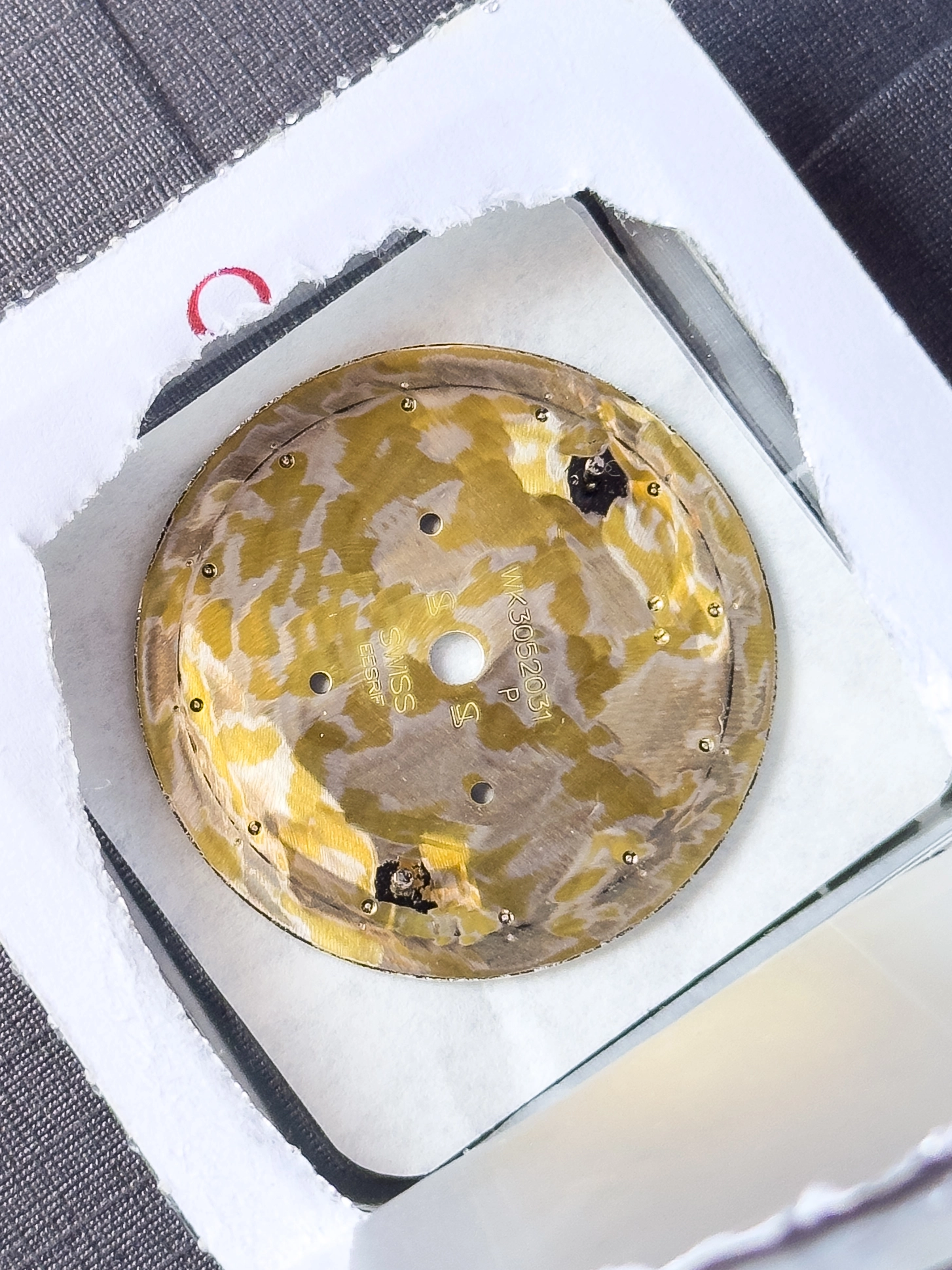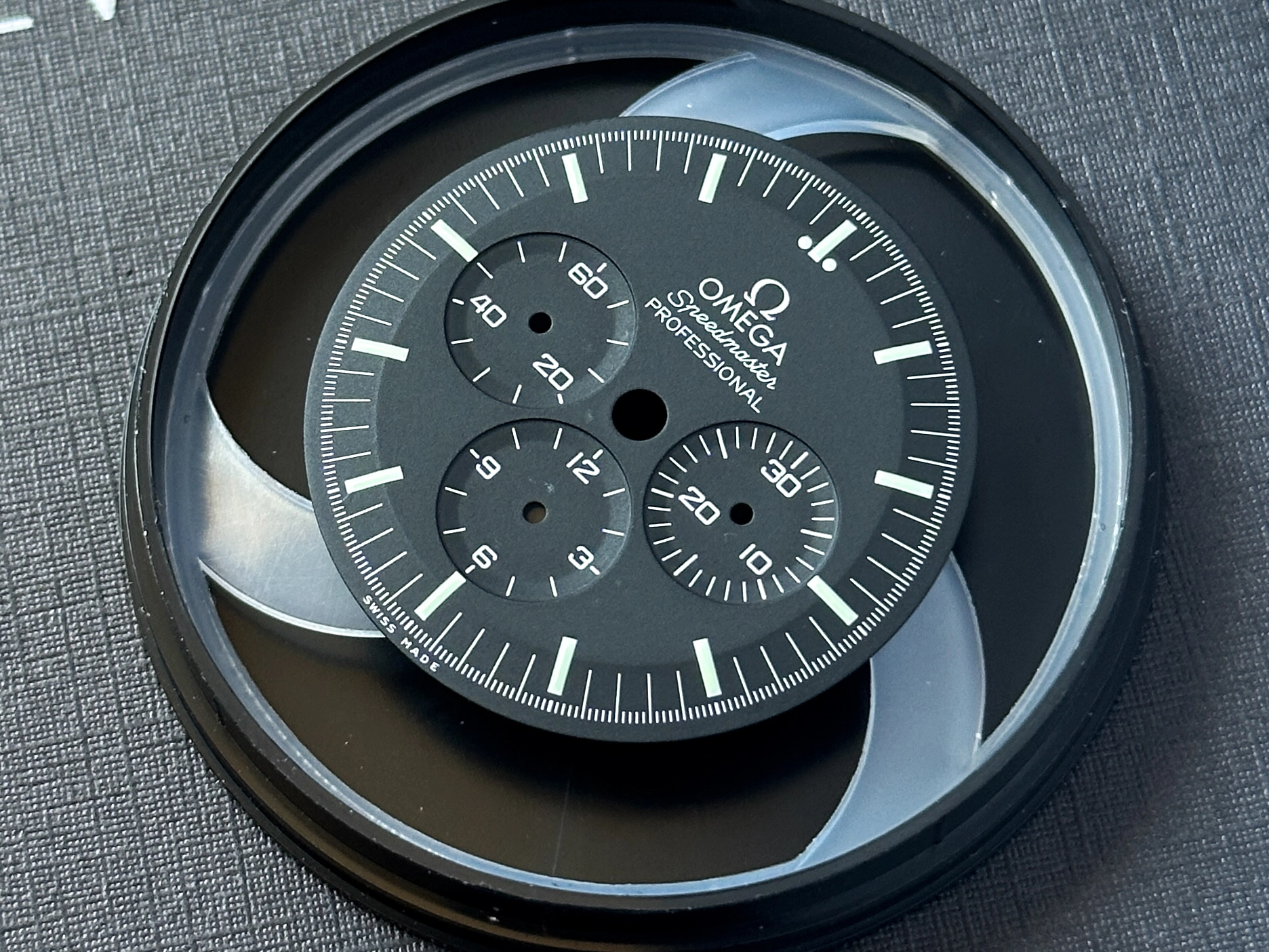This one was going to be a drawn out exciting project to be completed when I finished my bachelors degree, but as I mentioned above, plans change and my family has other projects to work towards. This dial is used but it is in excellent condition. It comes with the complete handset that are currently secure and individually packaged. I really don't want to remove them from their packaging cocoon, so I did my best to show a few of the hands that can be seen As I said though, the hands are complete. If you see anything on the dial it is dust. I don't have the original dial packaging for this but I will be shipping it in the Omega TinTin dial packaging that I held onto.