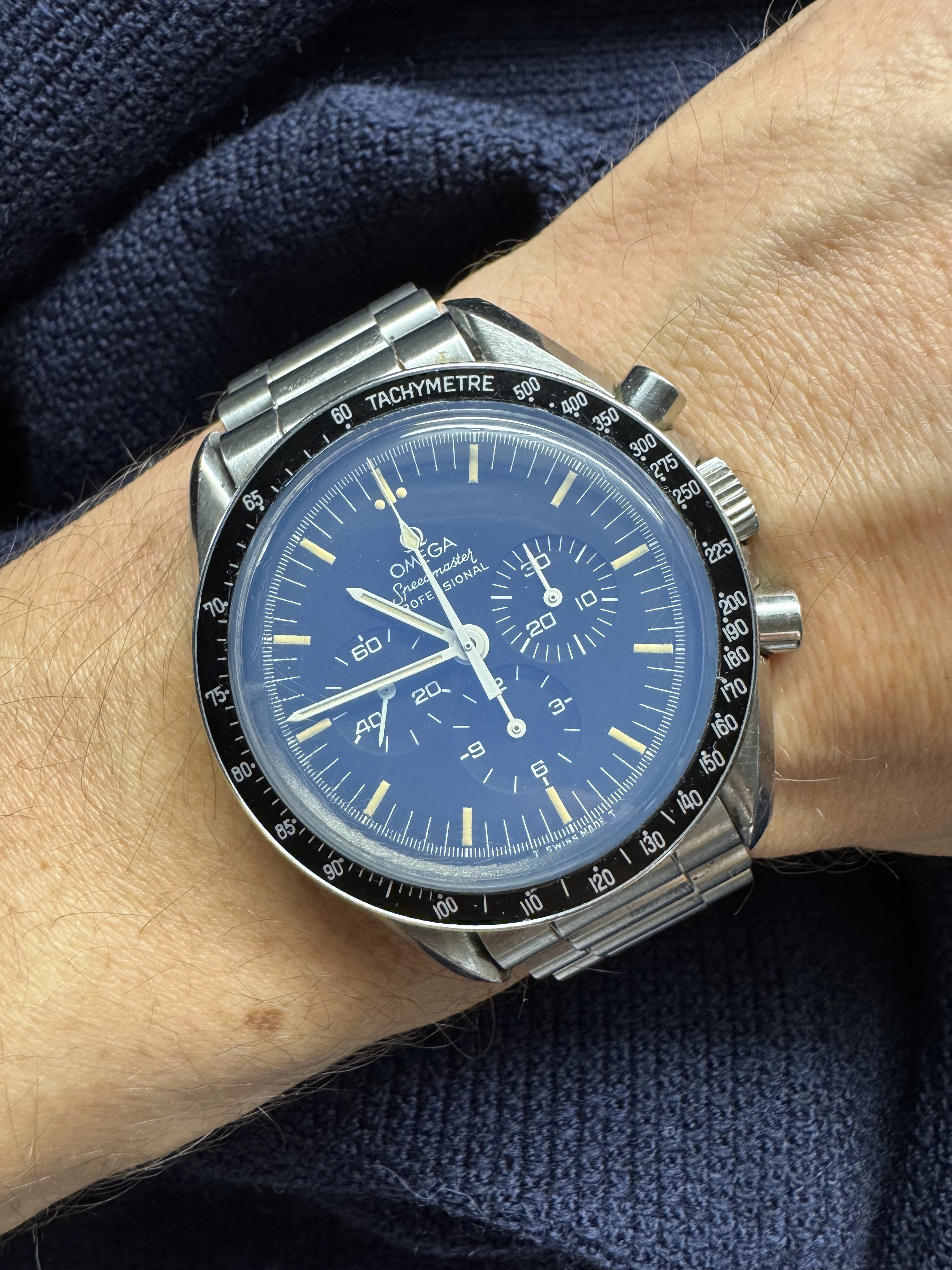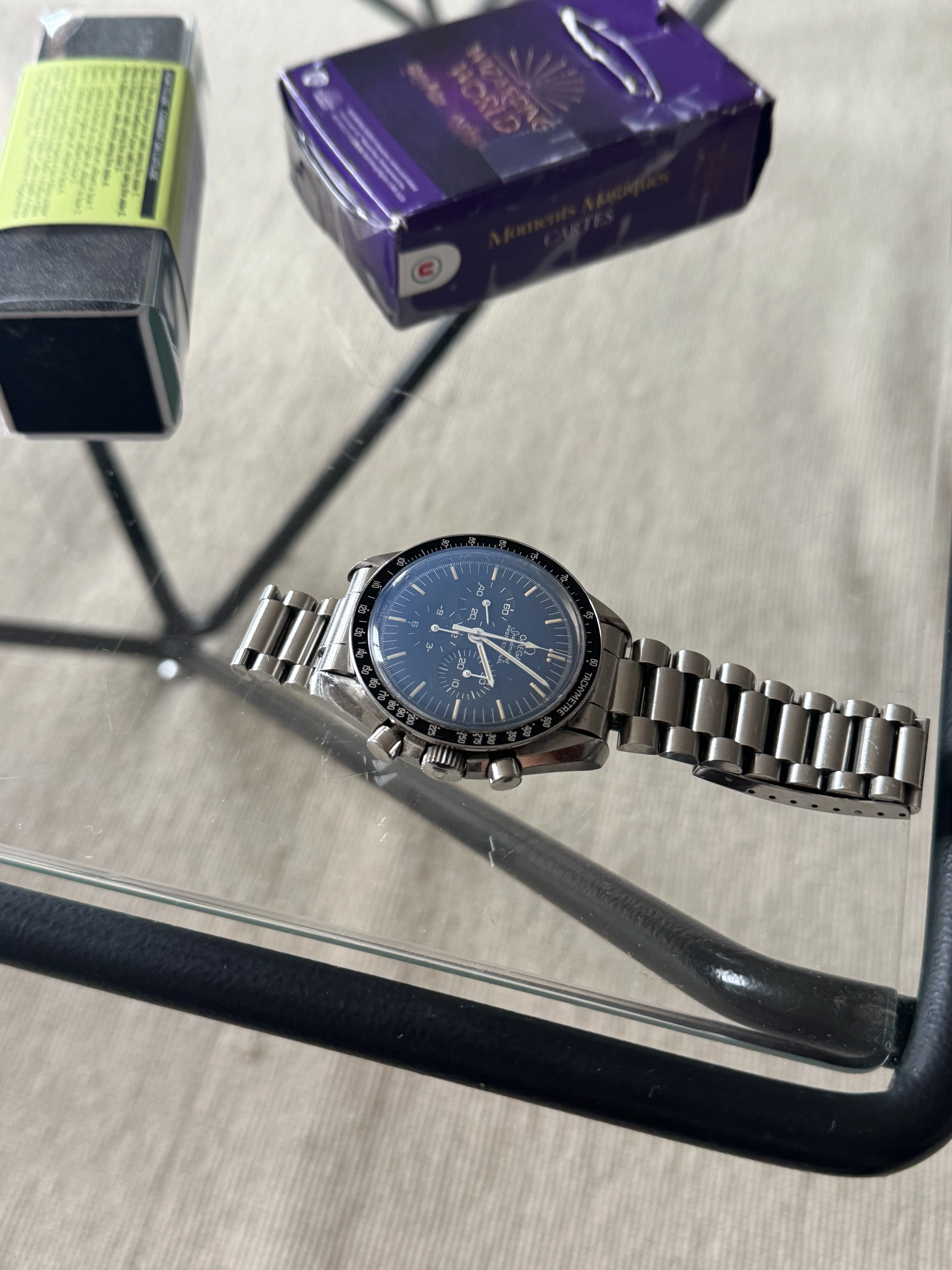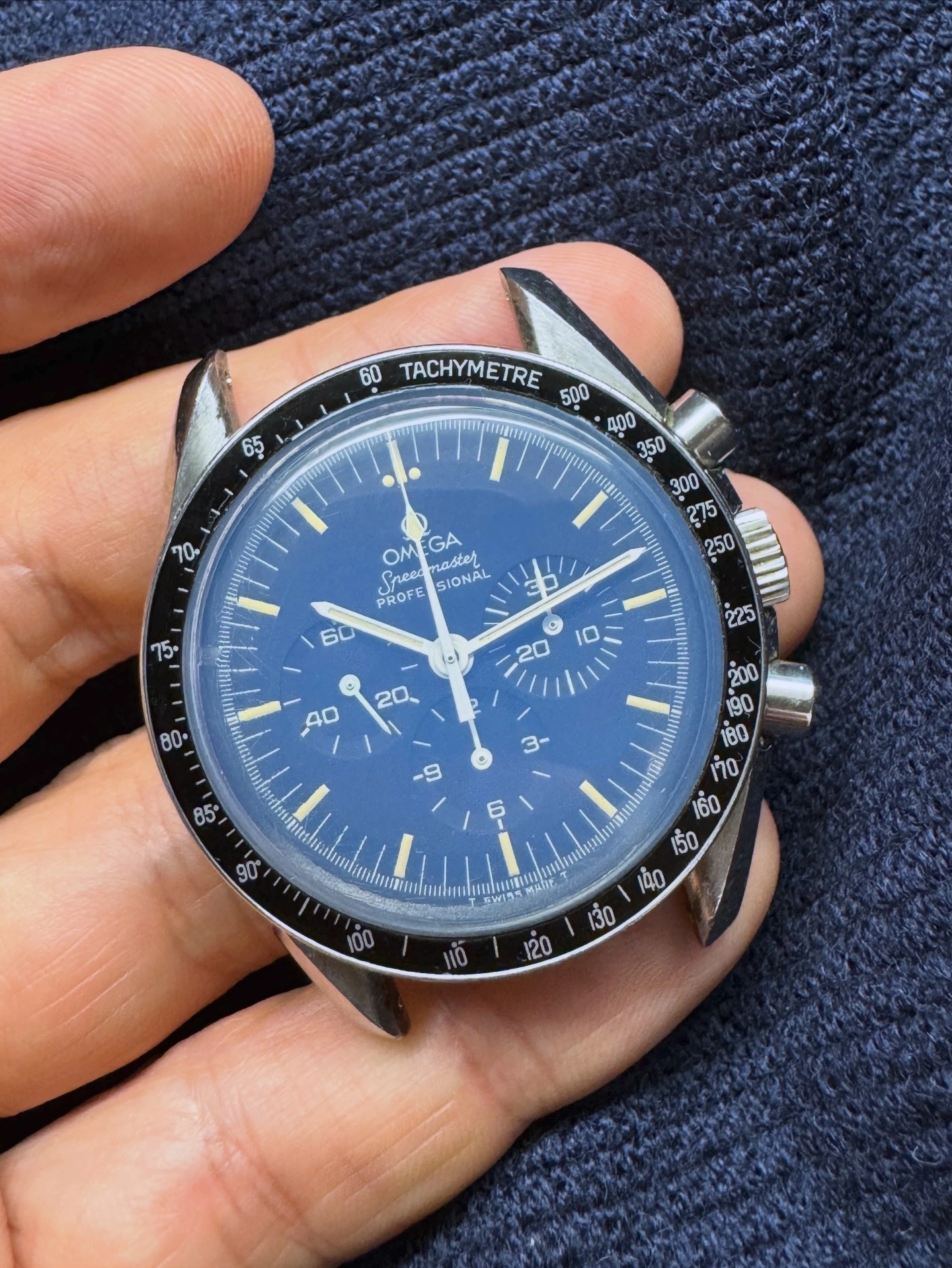 What makes it really special and spectacular is its blue crystal. It has been seen on a very few speedmaster and Holy grail from the same period.