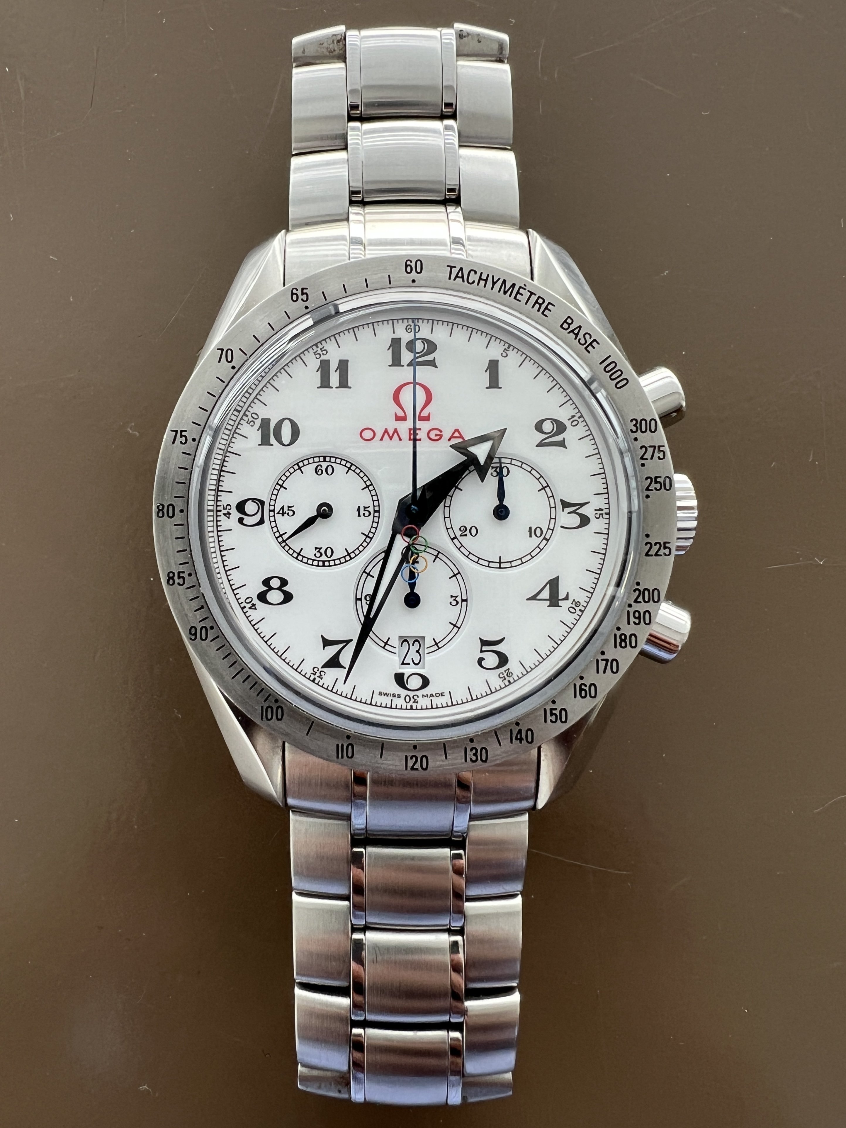 This is Speedmaster model 321.10.42.50.04.001, quite a mouthful I know. I think I'll stick with Broad Arrow Olympic Edition, though there are other quite different watches that also claim that title.