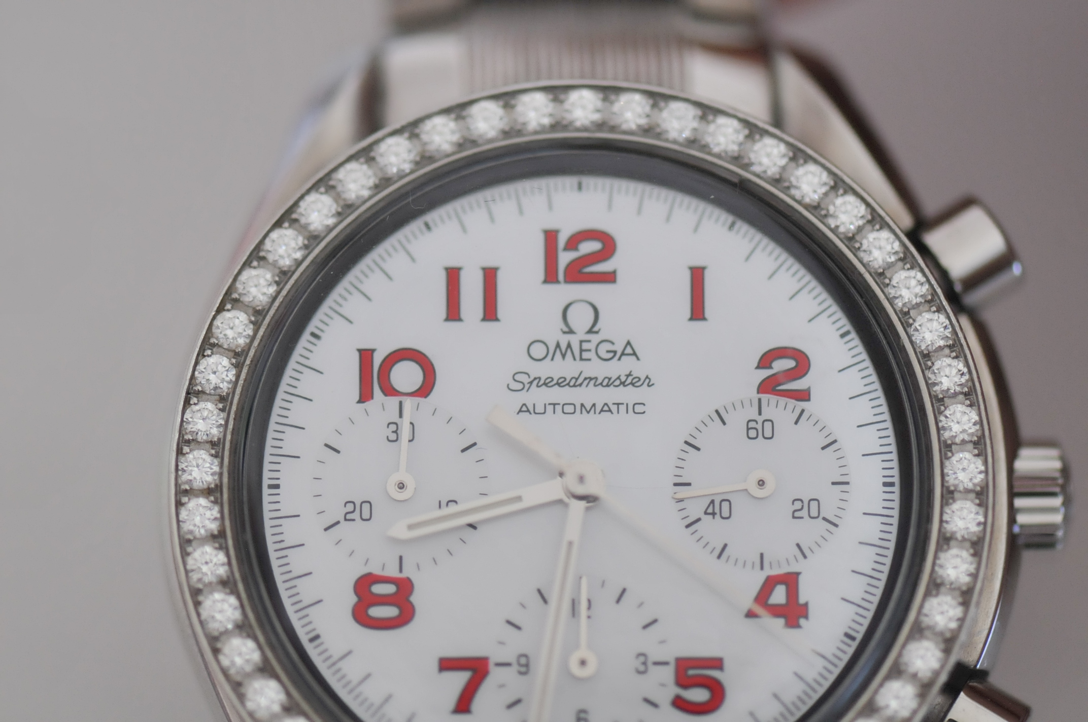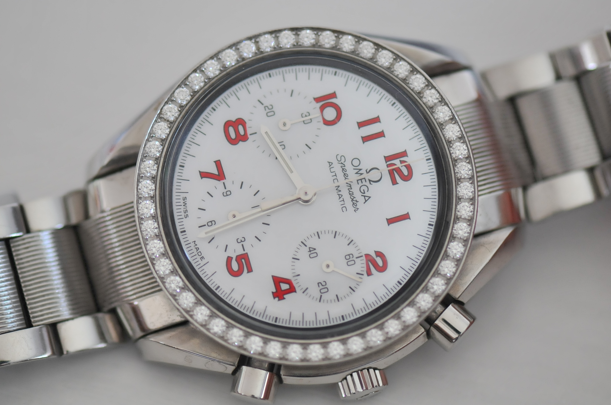 I have for sale a very nice Omega Speedmaster chronograph 39mm case size with diamonds bezel