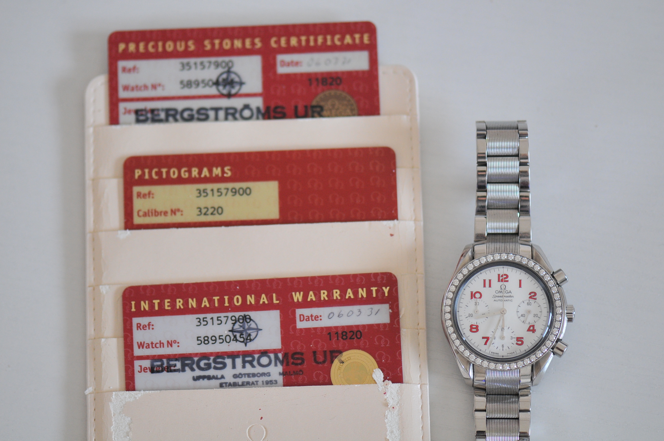 I do not know the service history of the watch but all the functions runs as it should and has an error of about 6 sec per day. The bracelet will now fit on small wrist size but i have all the extra links which were removed from the bracelet. The chronograph start, stop, reset very well. I have all the cards for this watch included the precious stone card.