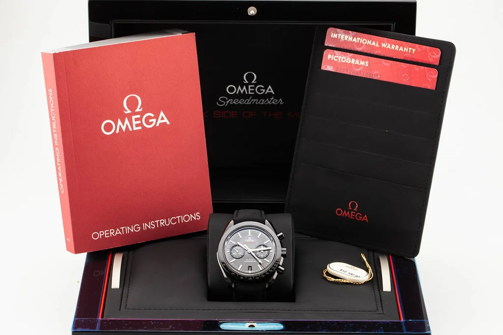 ·Up for sale is a mint condition Omega Speedmaster Moonwatch Dark Side of the Moon / DSOM with Titanium Deployment Clasp, reference # 311.92.44.51.01.007 It comes complete with all boxes, papers, booklets, hang tag and Omega Warranty Card dated June 2023.