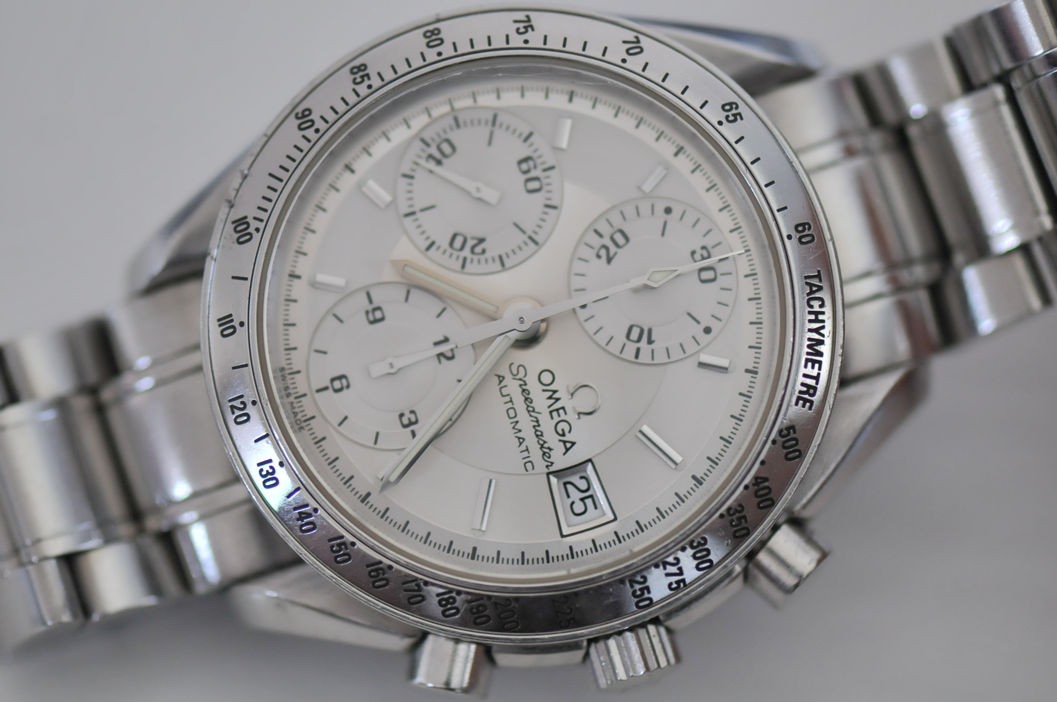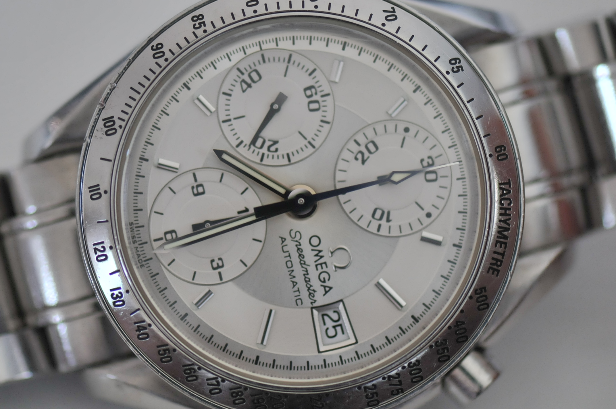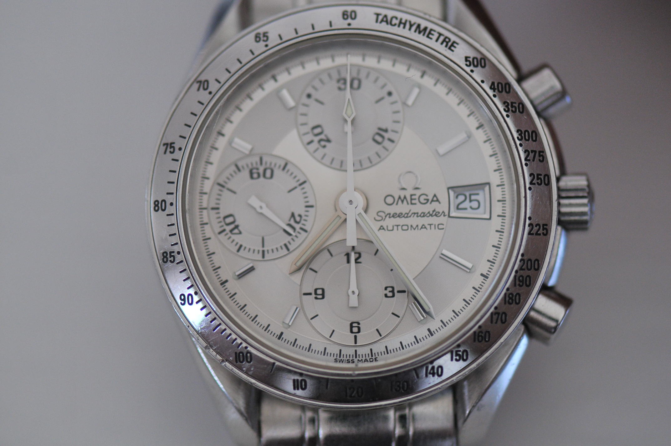 I have for sale a nice Omega Speedmaster chronograph 39mm case size with Date and white dial