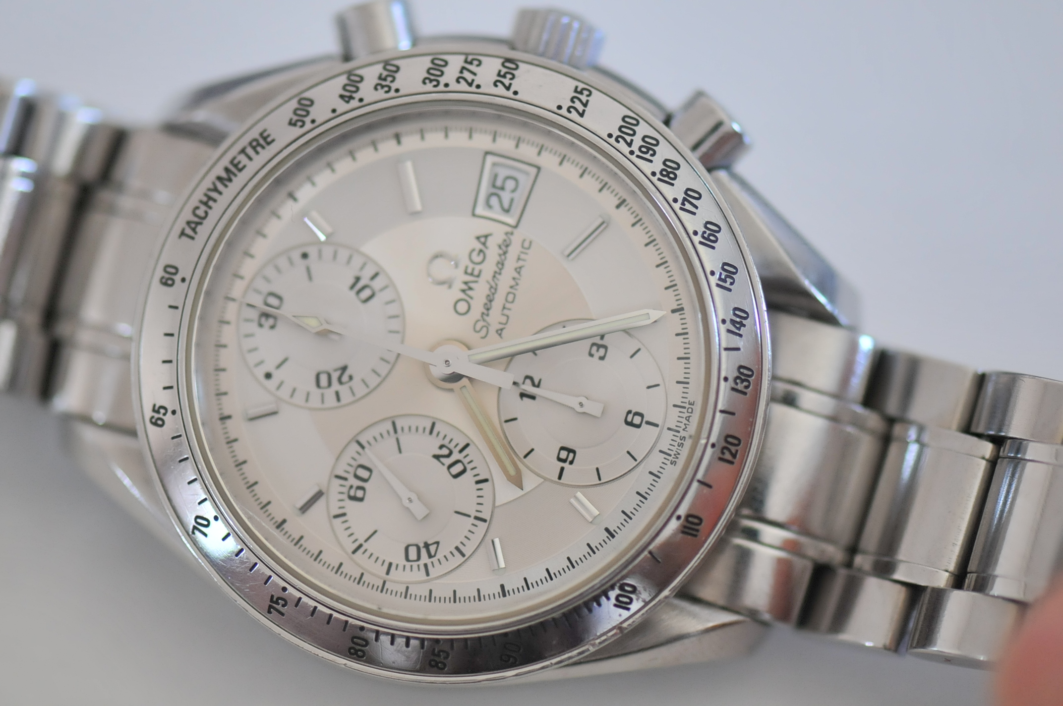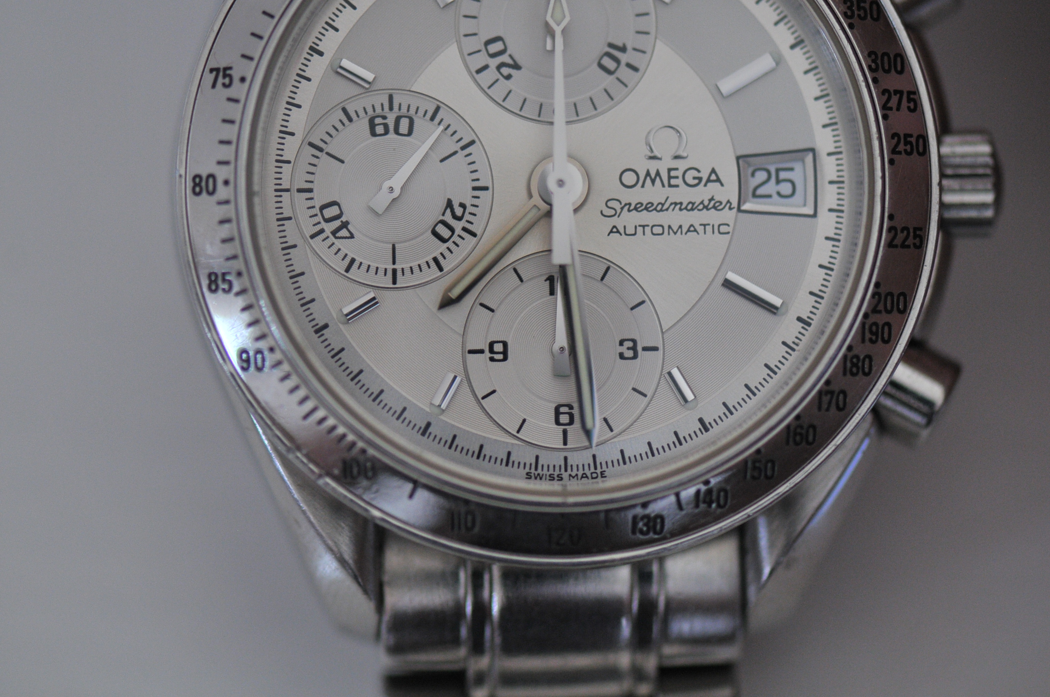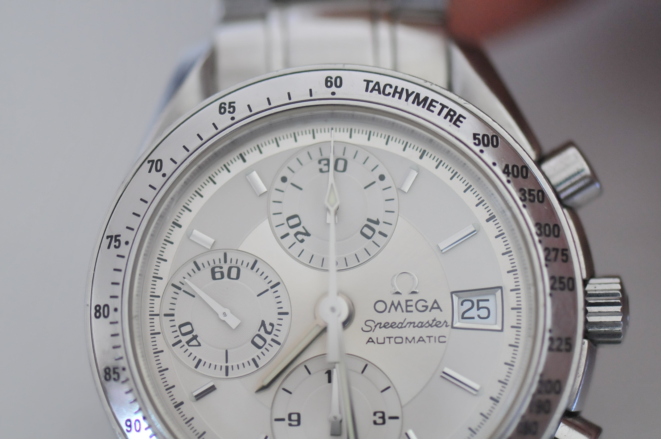 I have for sale a nice Omega Speedmaster chronograph 39mm case size with Date and white dial
