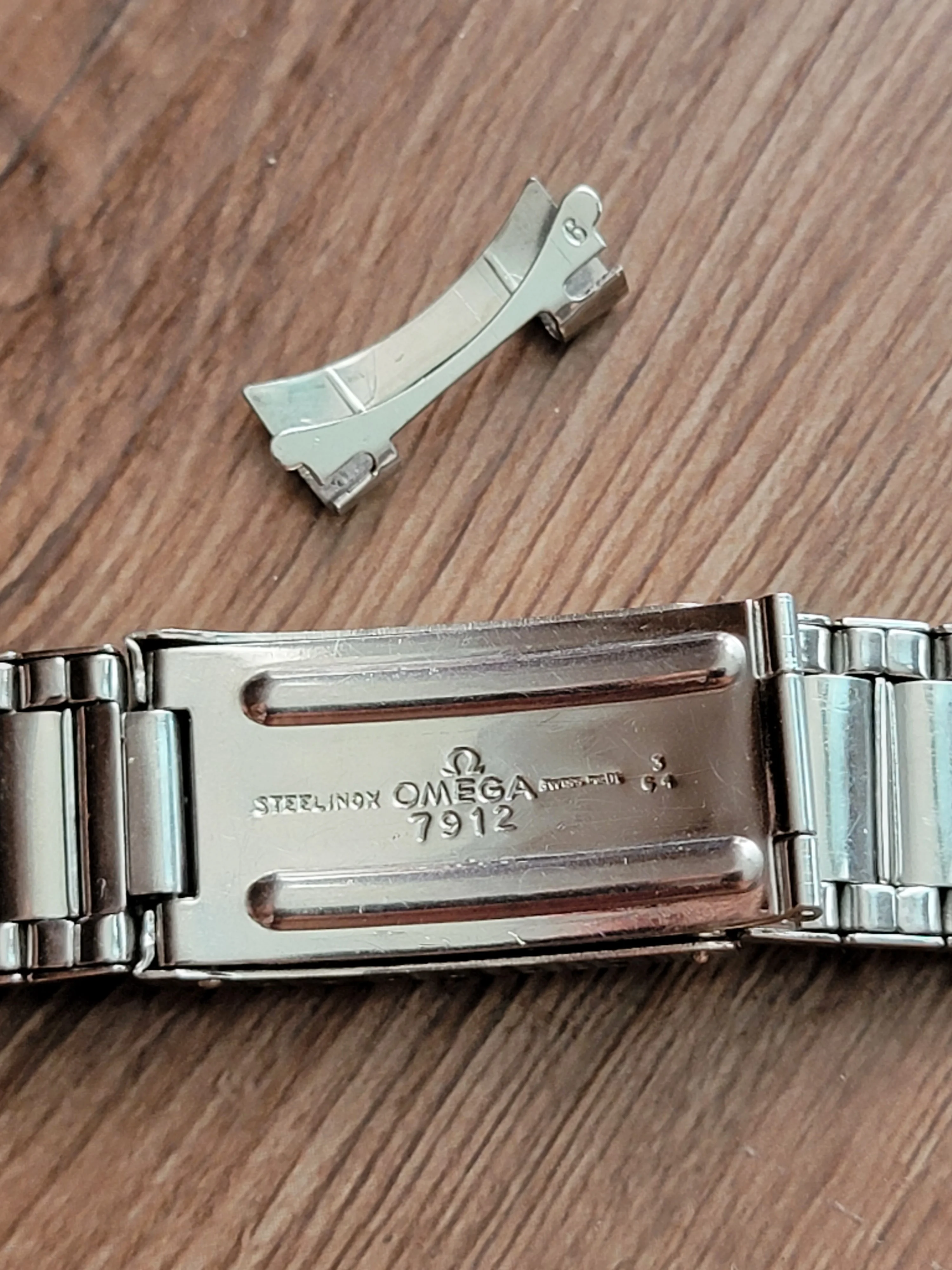 Bracelet: Omega 7912 bracelet dated to 1964 with ONE #6 end-link. Bracelet links are bit loose given its age and could afford to be sent to a specialist for tightening.
