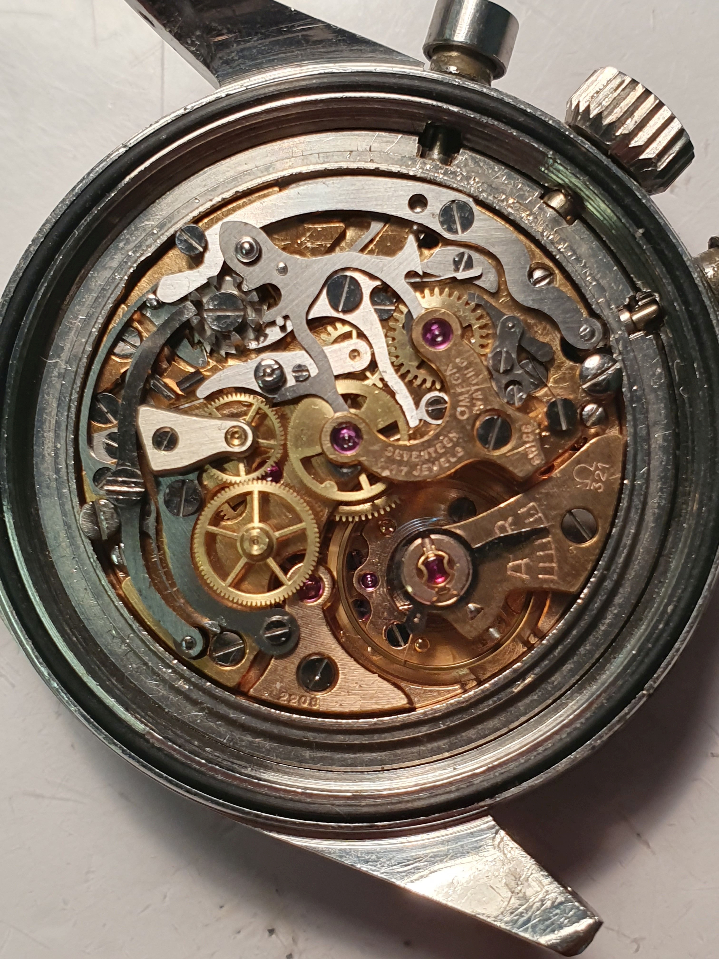 ...the caliber 321 movement looks pretty clean, runs strong, there are no signs of damage or pollution ...also the backside view of the lugs are seen in this pic...the watch has been inspected by my watchmaker in 08/2019, I