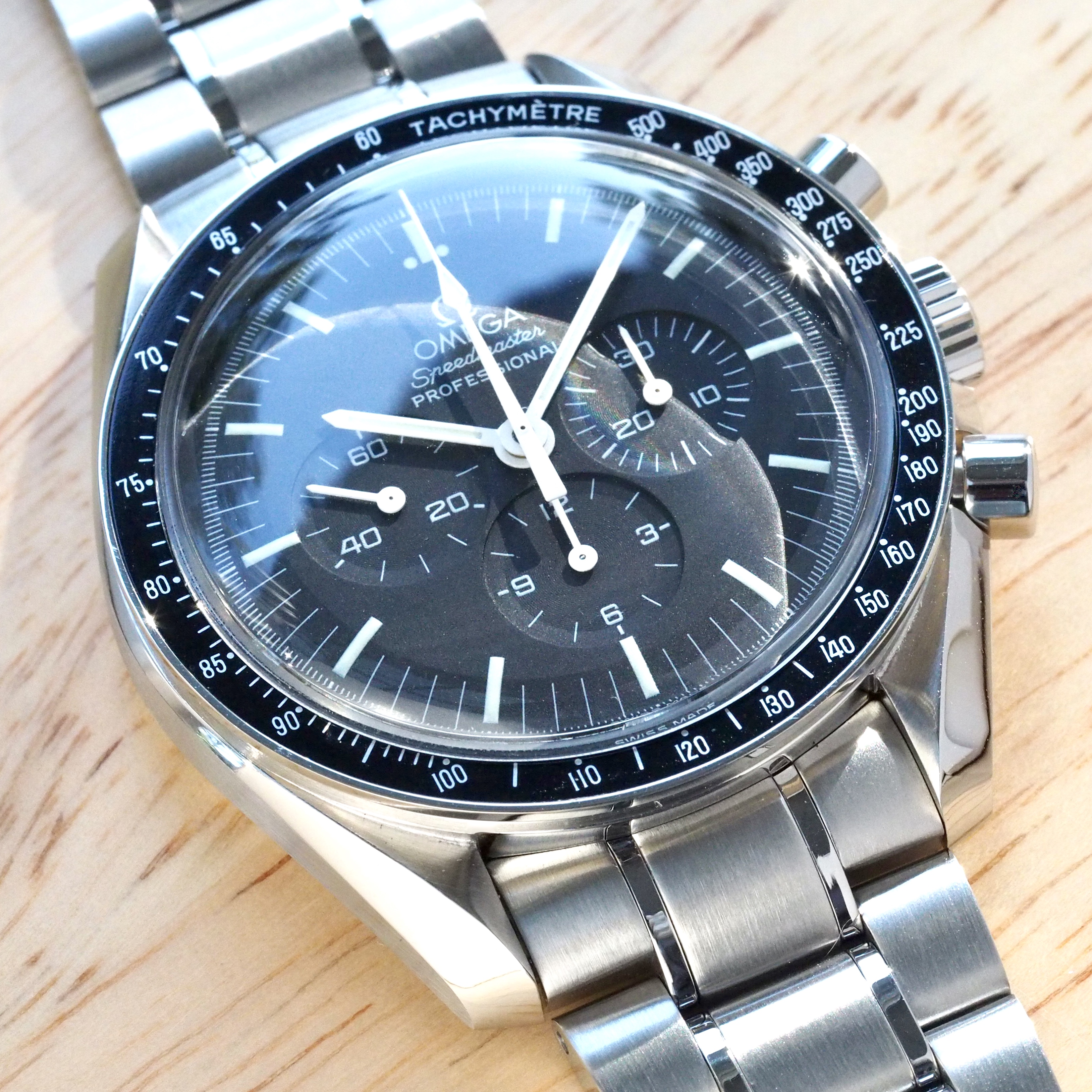 I have a 3572.50 Speedmaster Pro for sale. This is the display back version with Hesalite front crystal. It has been given a complete overhaul and now runs and looks like new. All work was completed to OMEGA standards including the refinishing. All parts are correct for this reference. Comes with an Extract of the Archives.
