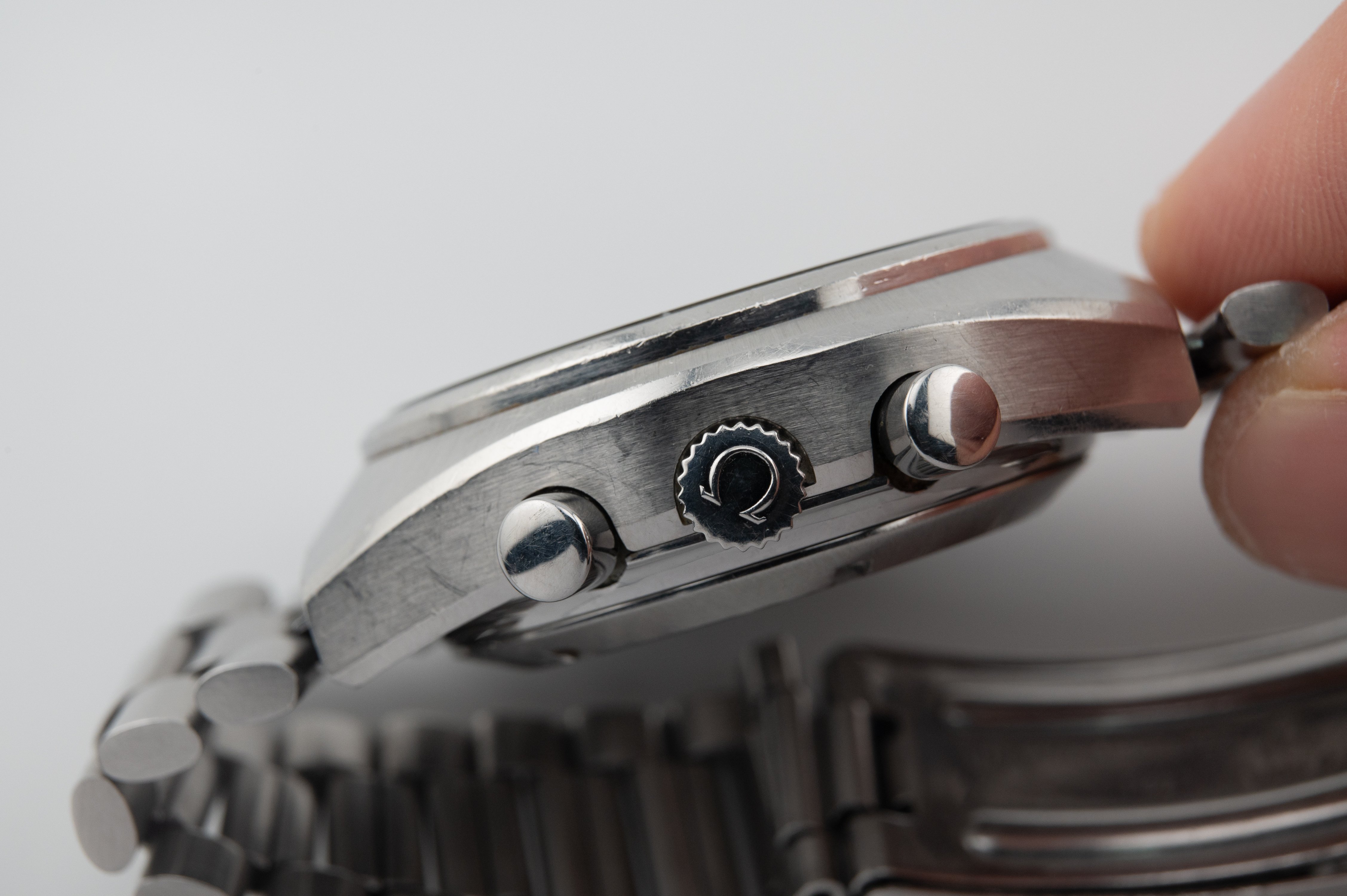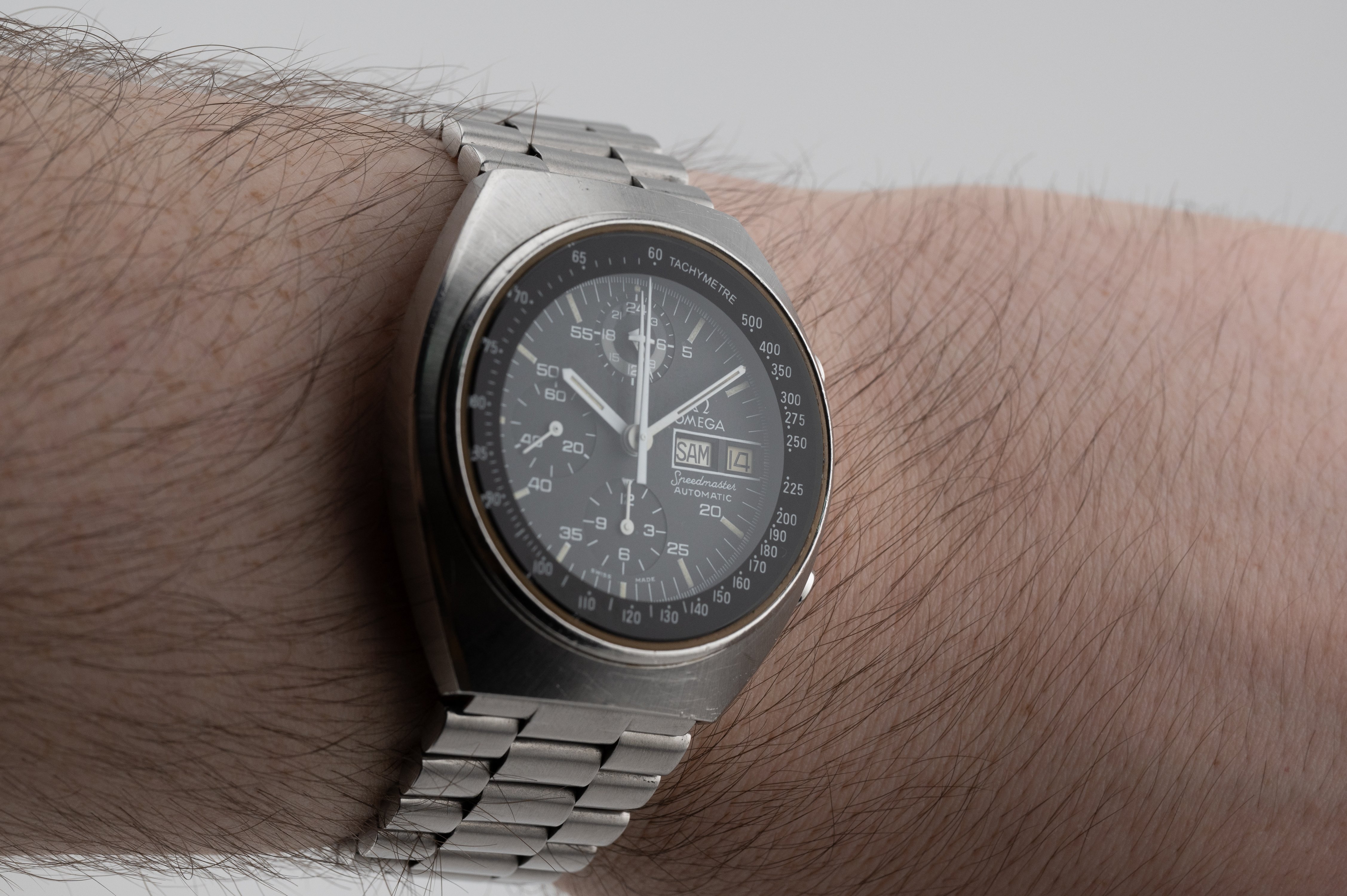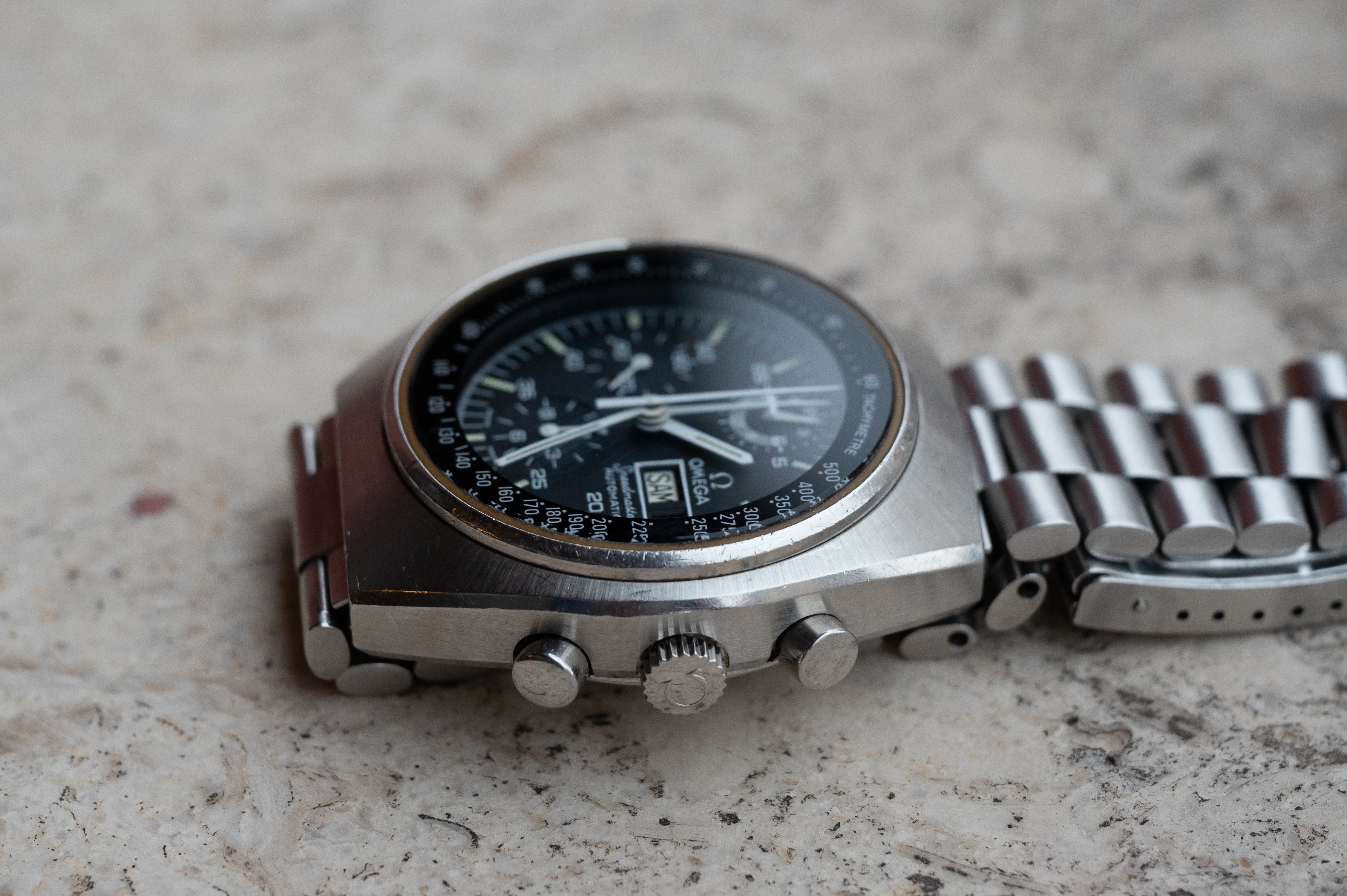 I am selling an Omega Speedmaster Mark 4.5, reference 176.0012, with a caliber 1045. It comes with a 1162/172 bracelet, which is correct for the reference. I've had it for almost 6 months and at the time I really liked the idea of wearing it, but I've come to like smaller watches, especially in height.