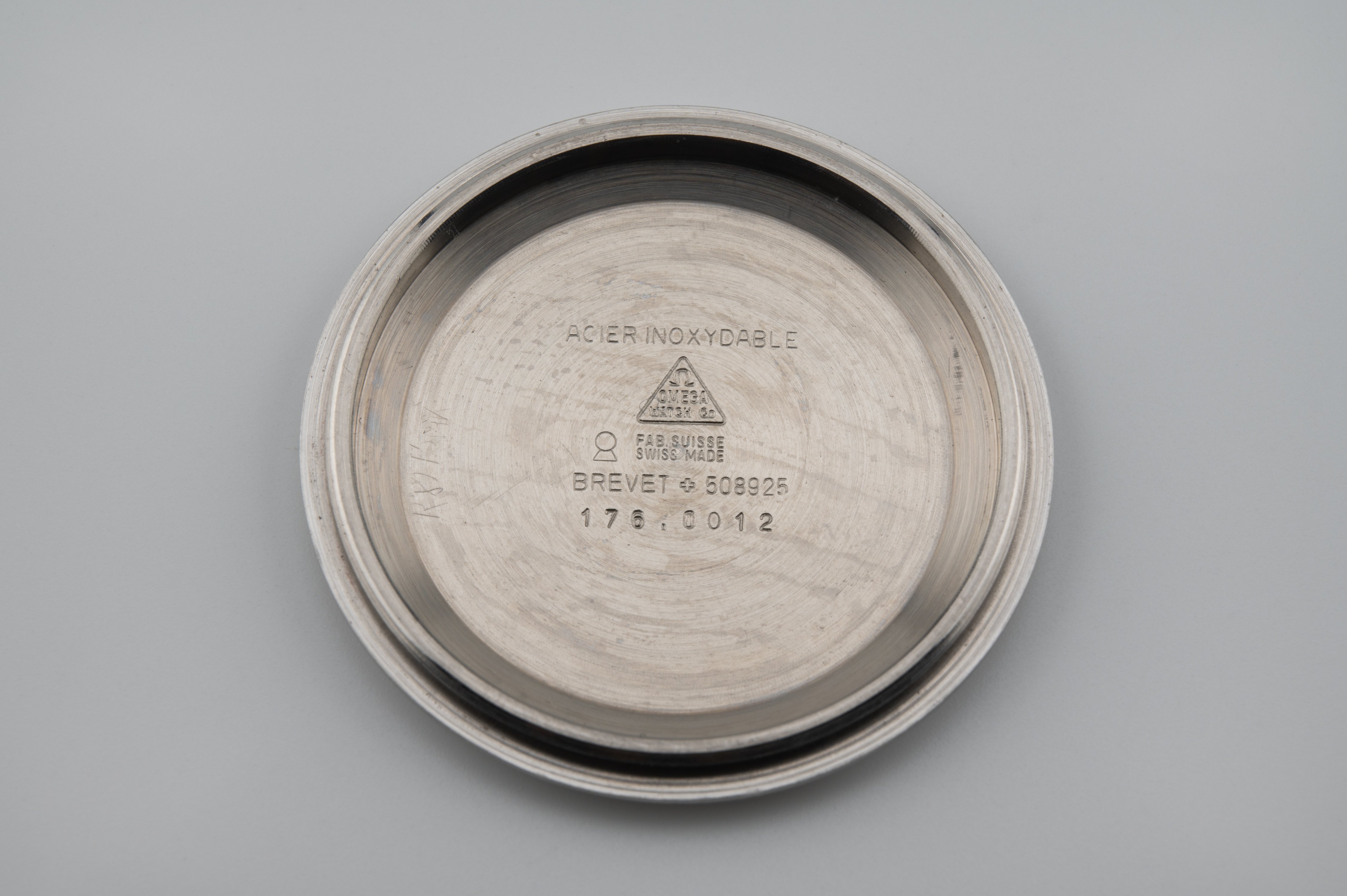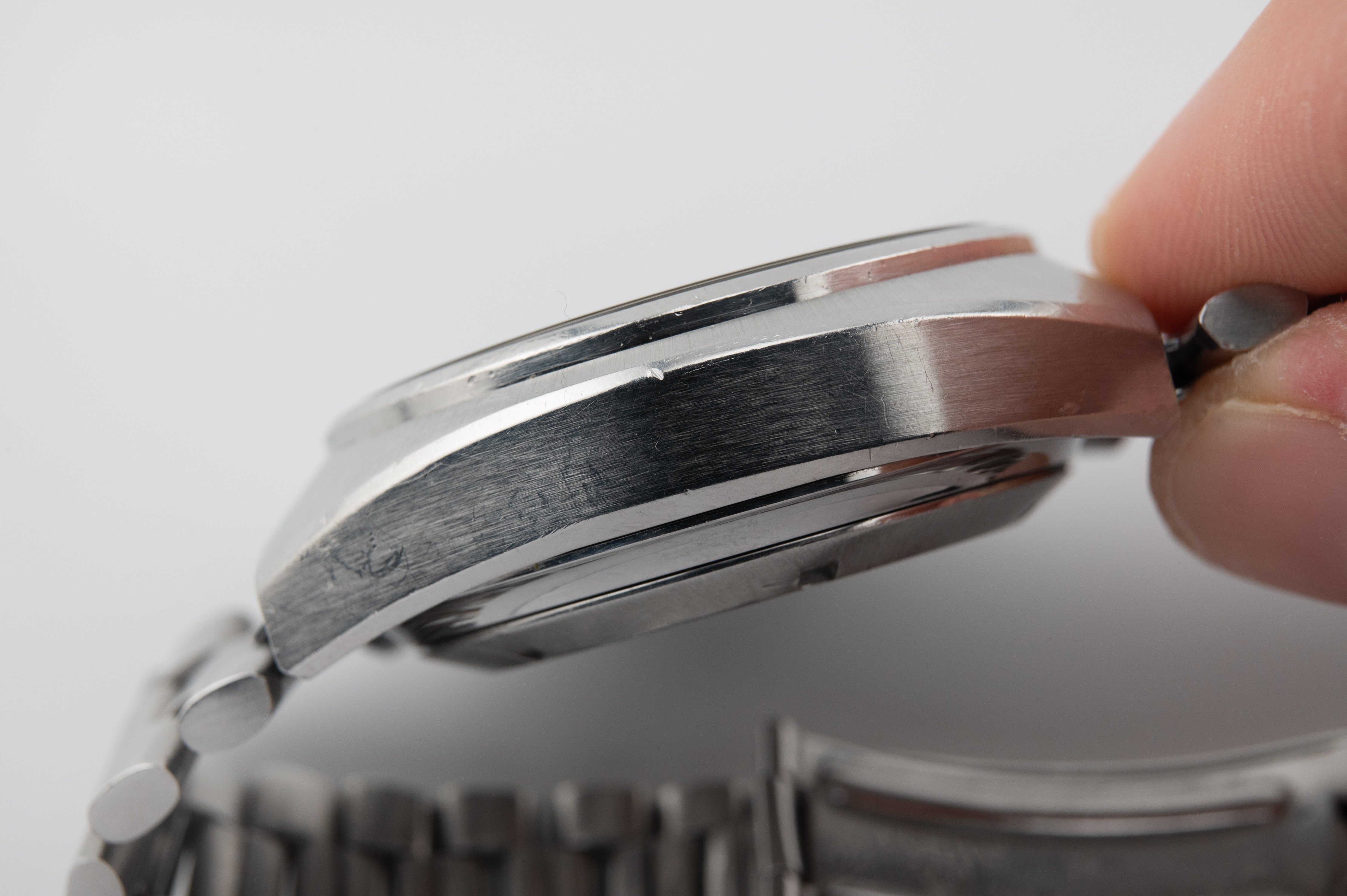 Case has scratches and little dents all around. It's not a museum piece, so it would be a great daily wearer. Top of the case has the original sunburst finish, and considering the general shape, I don't think it has been polished. Crown and pushers I believe to be original to the watch.