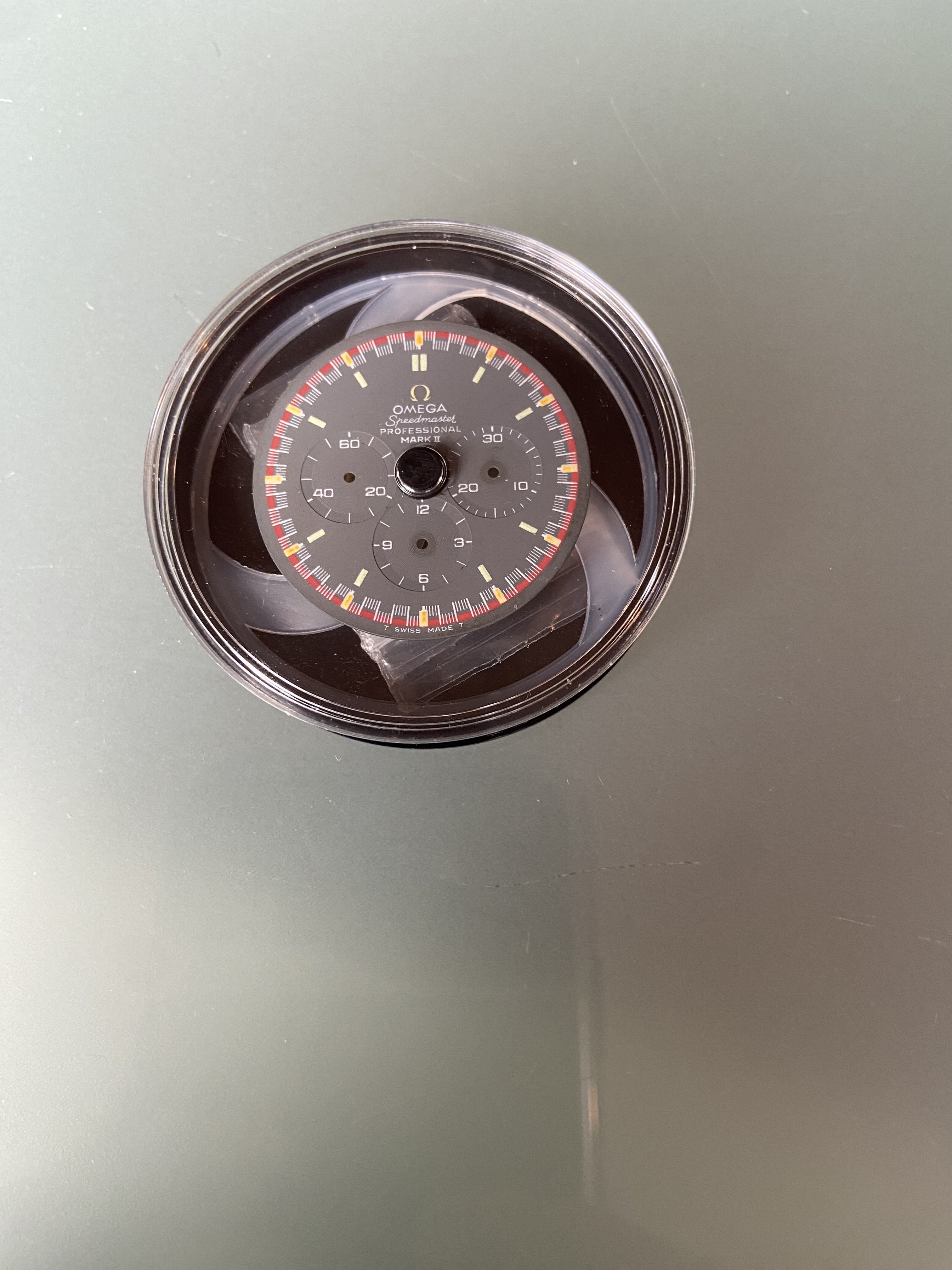 For sale is a dial and handset from a Speedmaster Mark II, very popular for modding into a professional case. I did 2 of these mods and ended up with extras.
