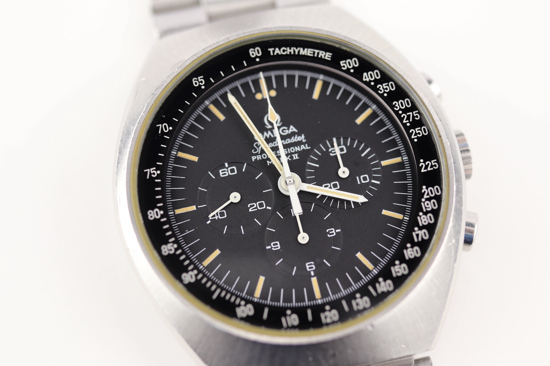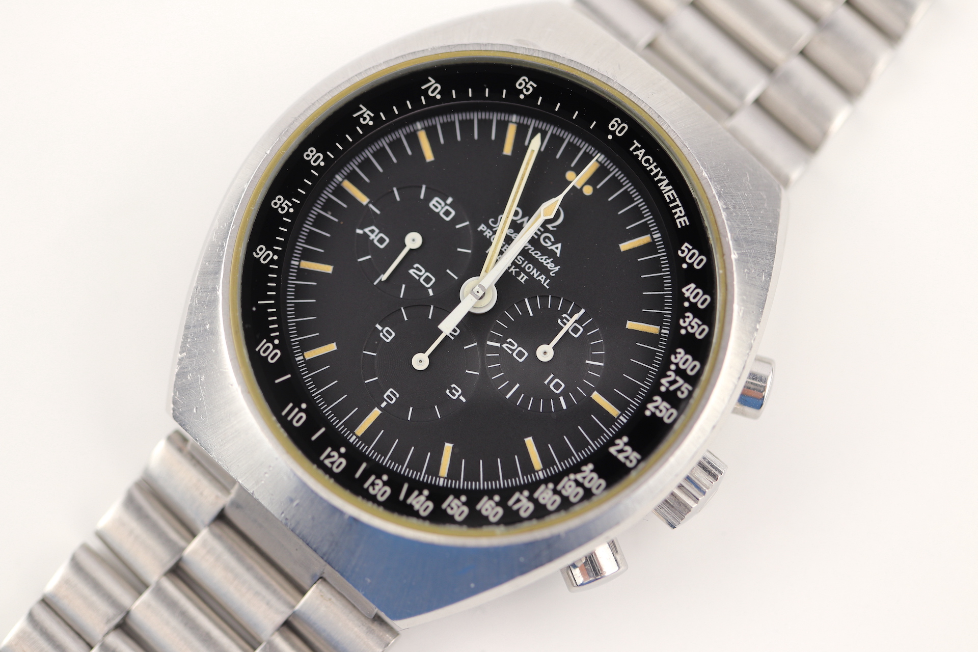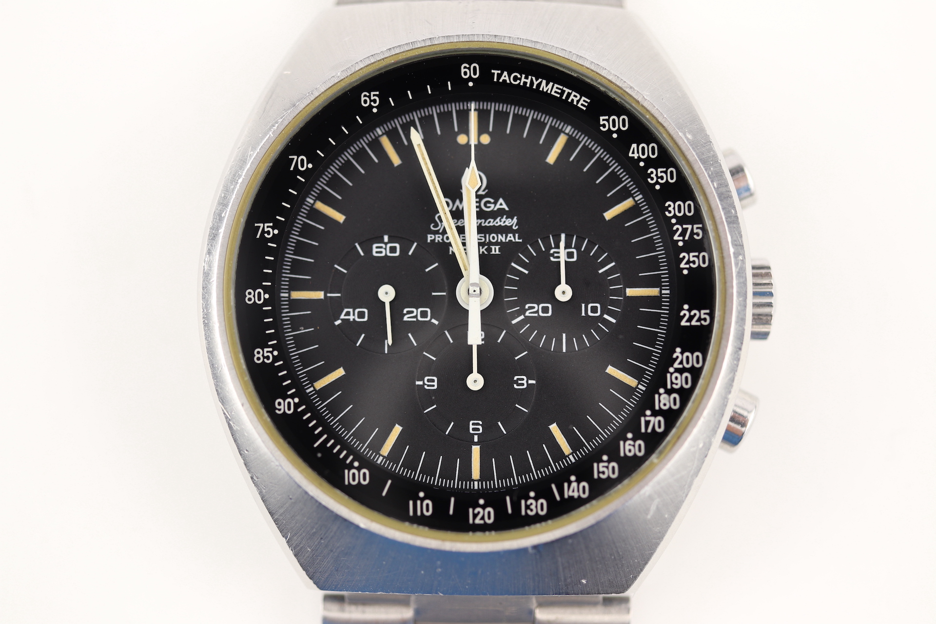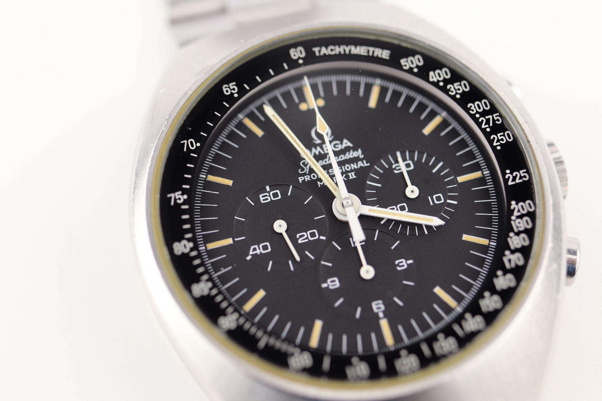 ·For sale, I have an Omega Speedmaster Mark II 145.034. It has the Caliber 861 which is a mechanical movement. The case measures 41mm without the crown. The watch was serviced last in 2020. The watch will come with the original 1162 bracelet.