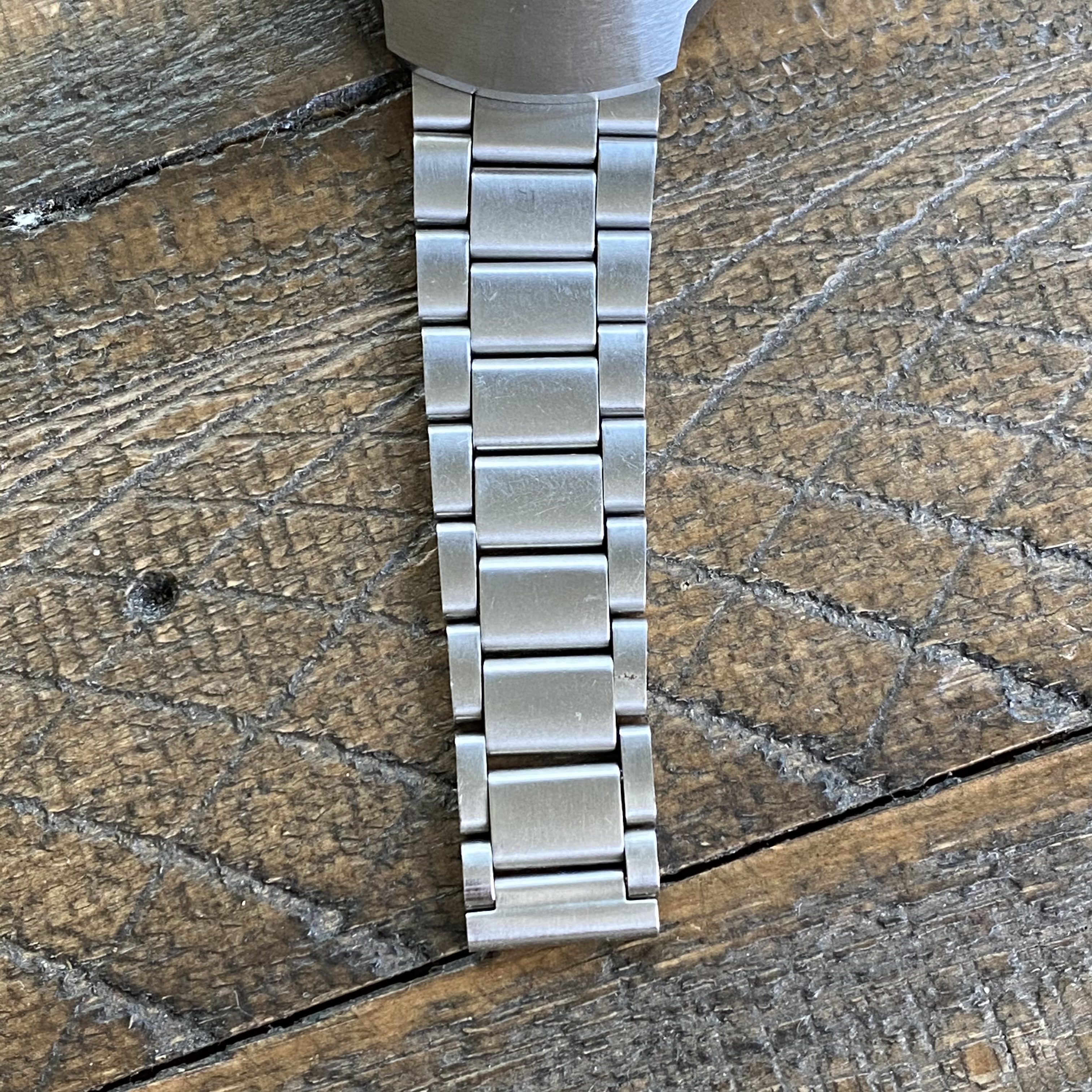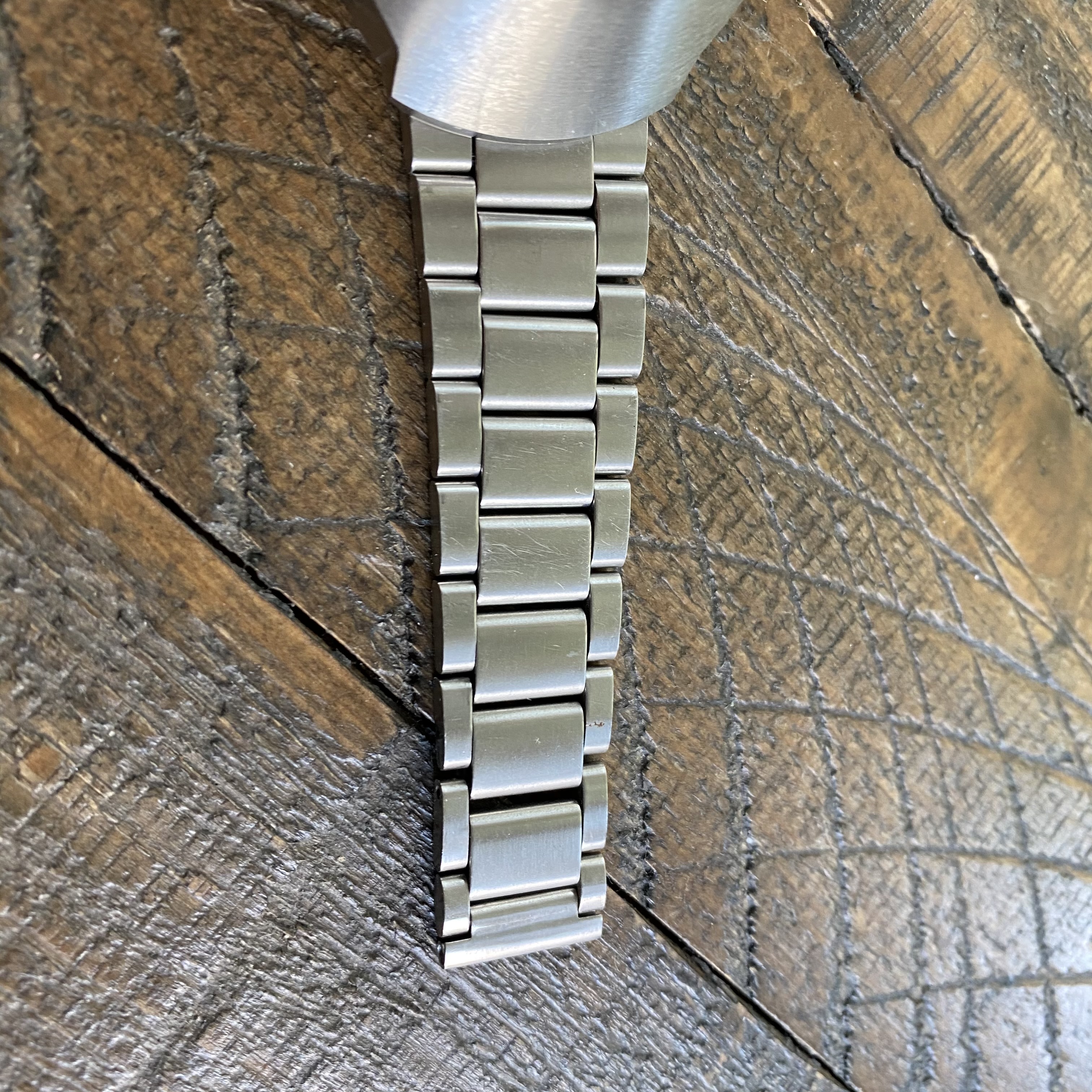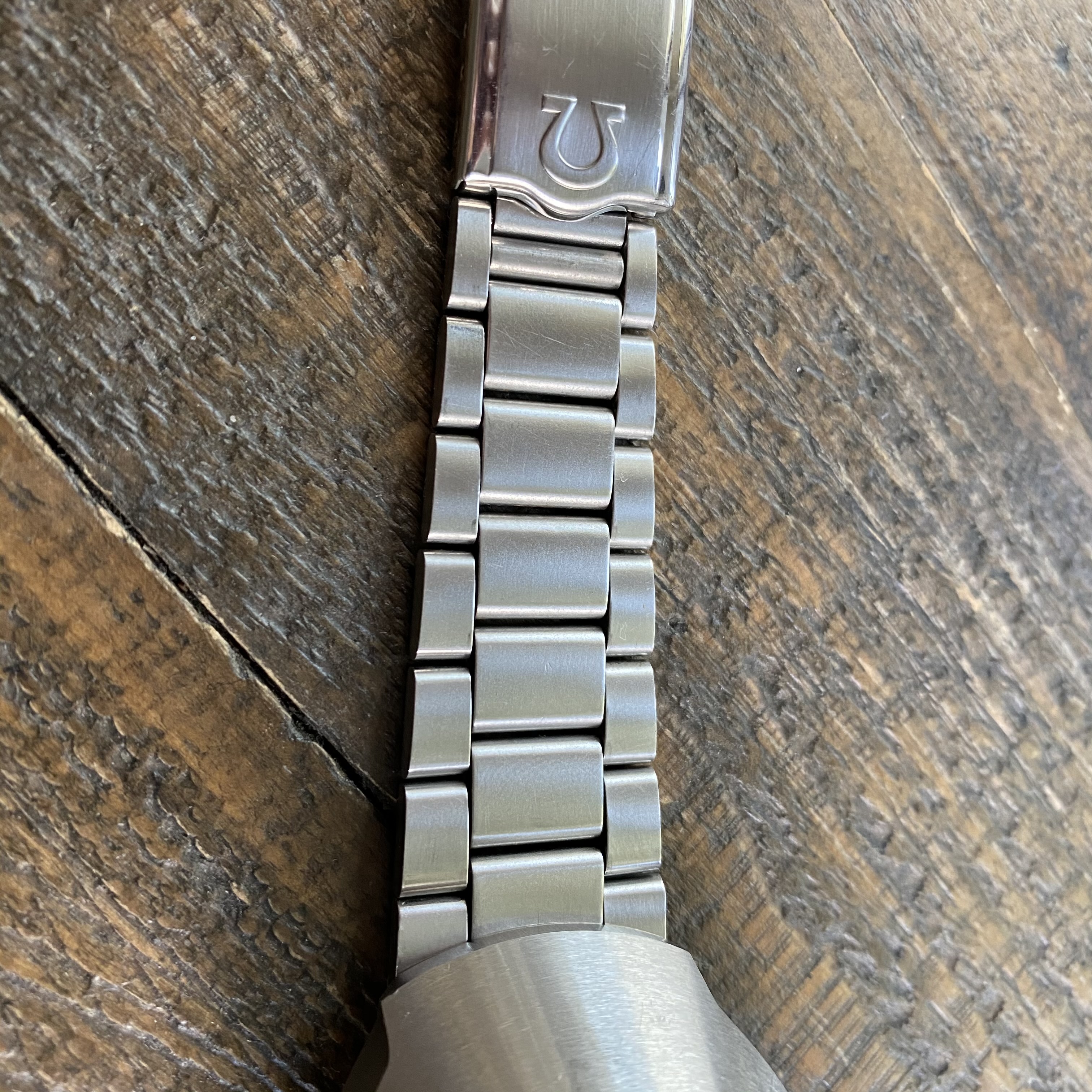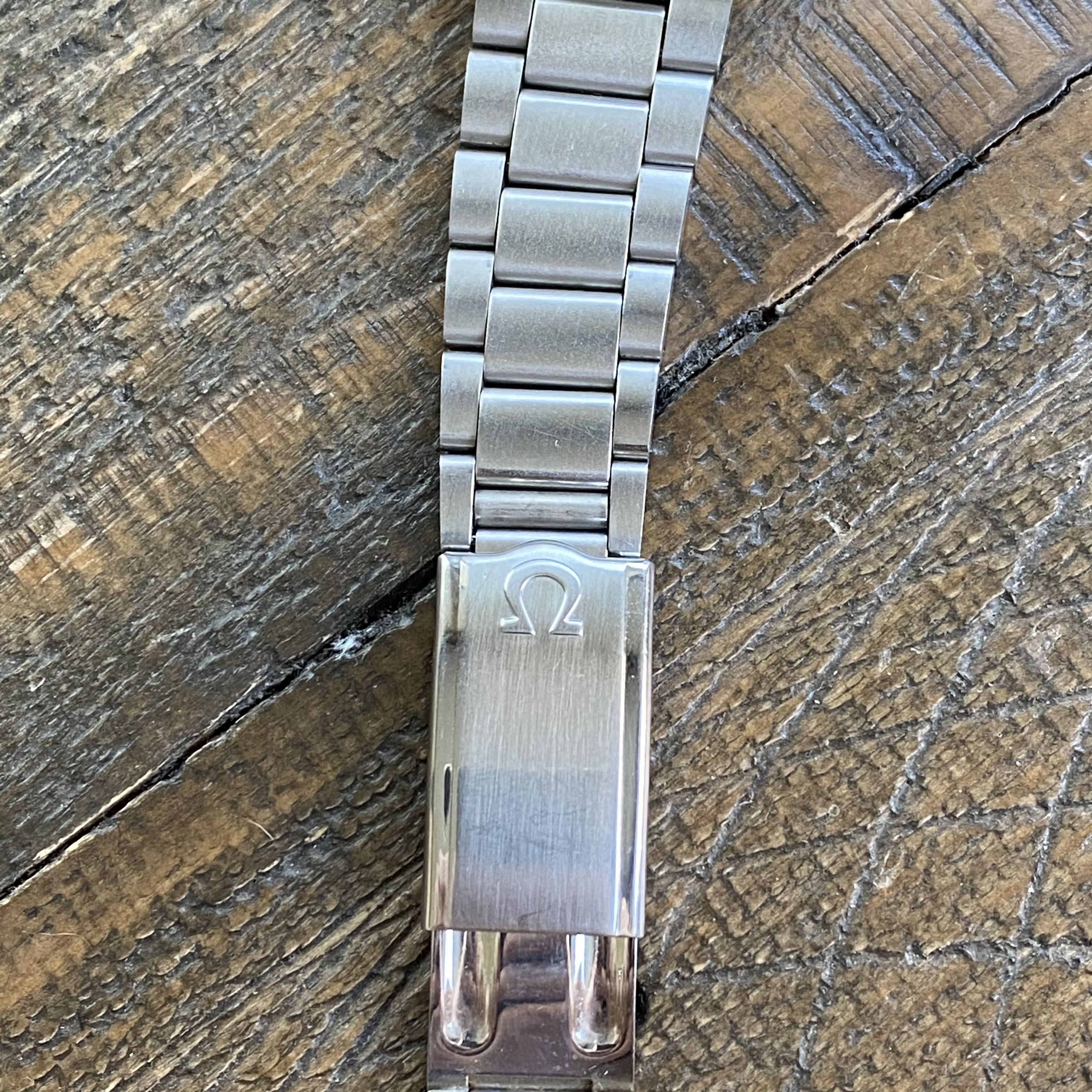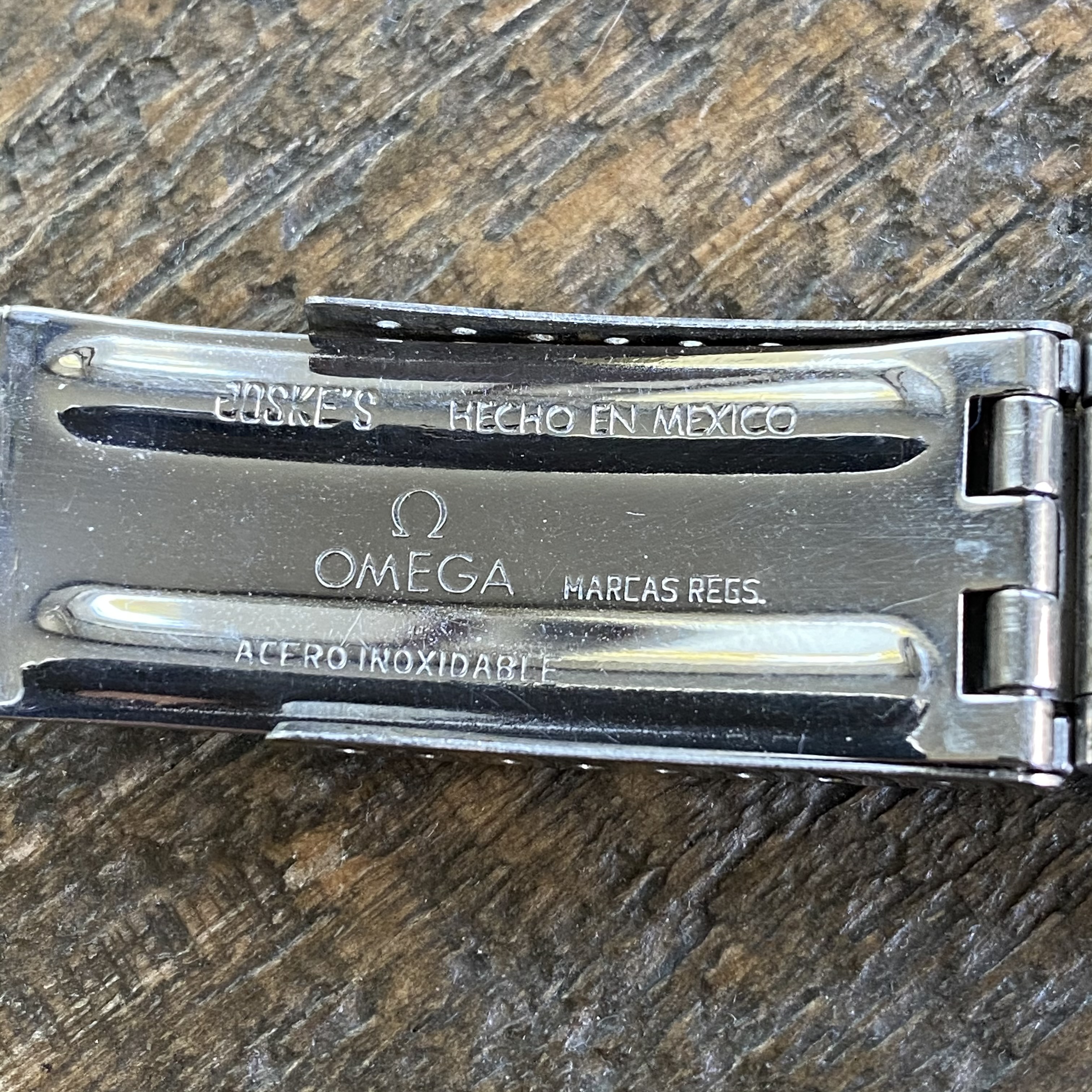 Comes on a non-Omega oyster-style bracelet with Mexican Omega clasp. Bracelet fits a 7.75 inch wrist.