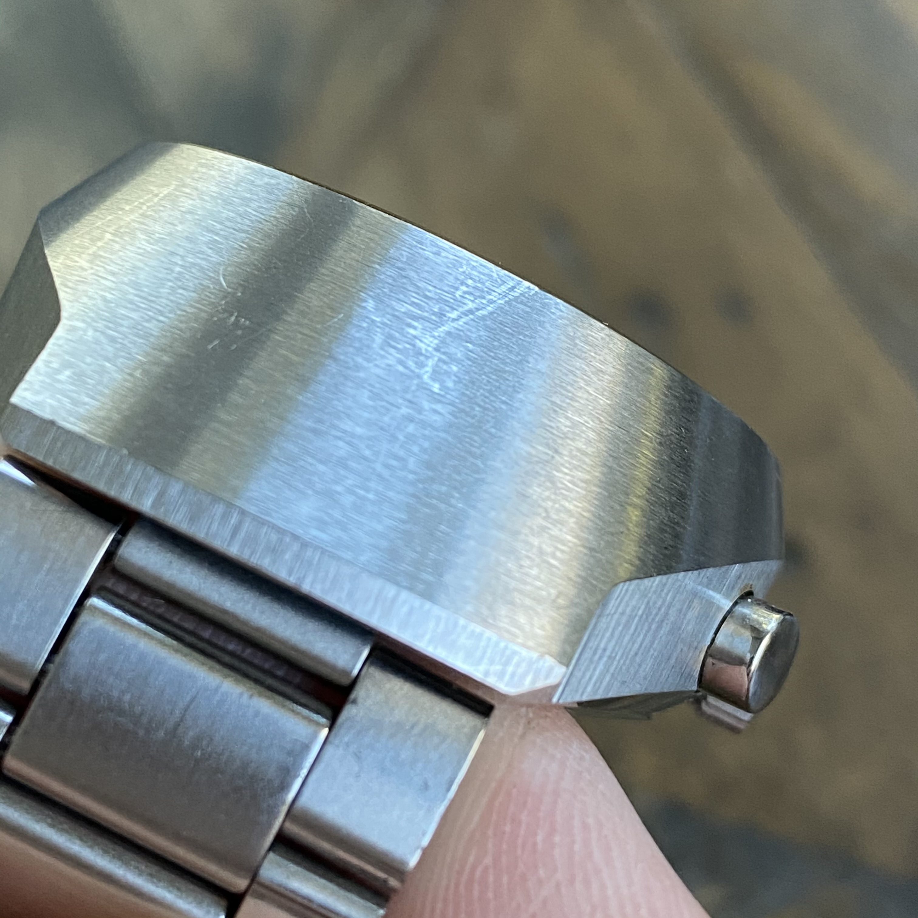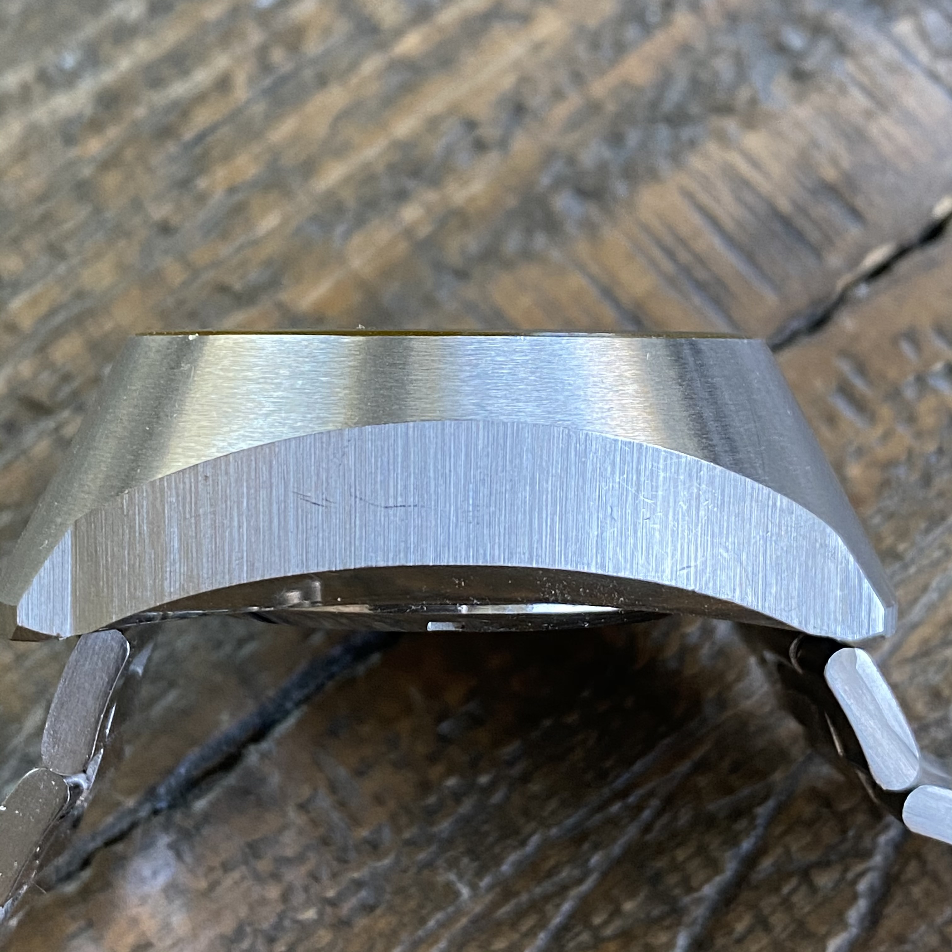 Mark III pilot style case is unpolished and in excellent condition. It retains its sharp edges but does show some minor surface marks. This case has original horizontal brushing.