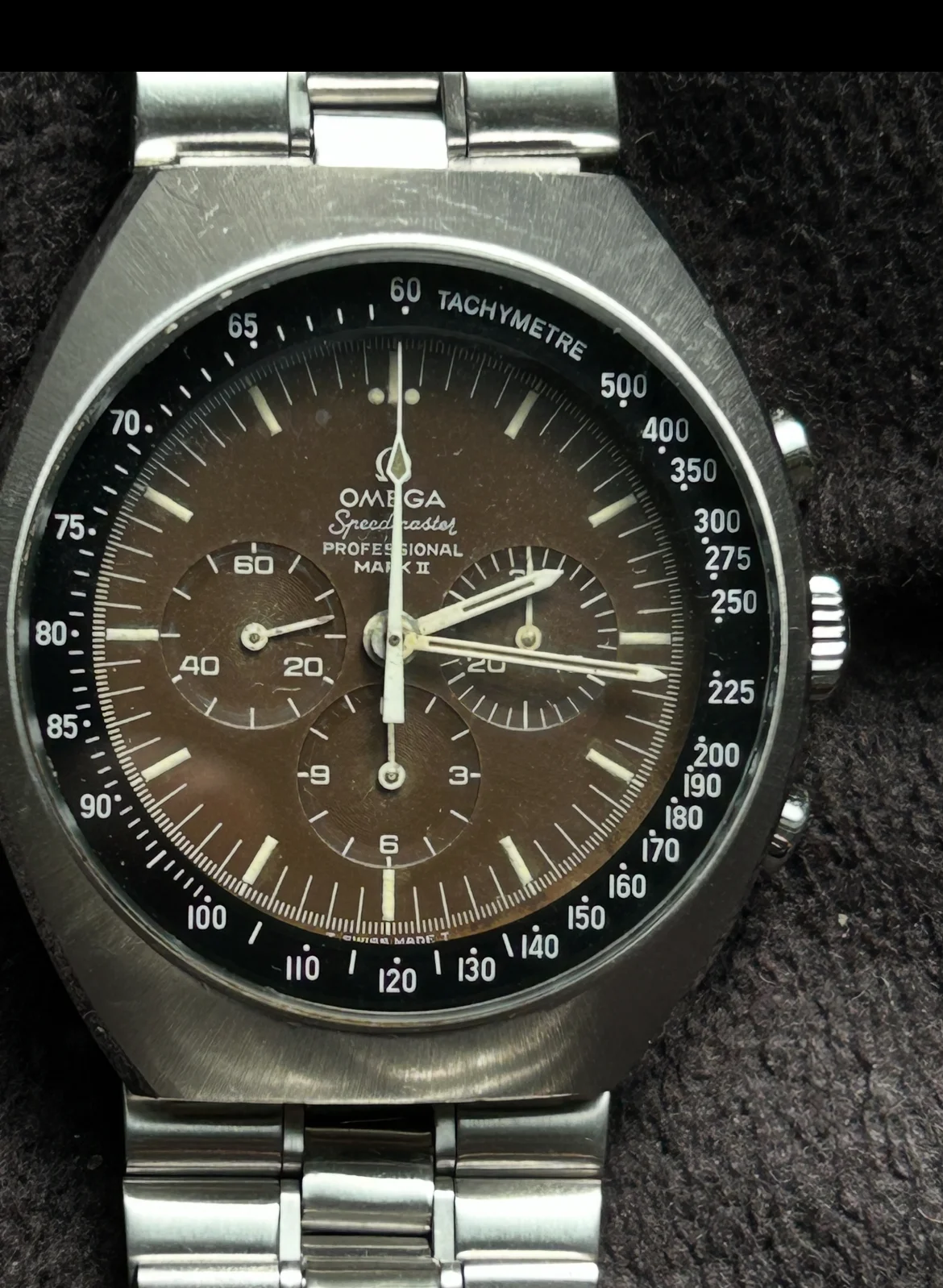 ··IG: #blubarb19omega Speedmaster Mark ii Chronograph (manual winding) 42 mm. Dial is a very desirable tropical dial.