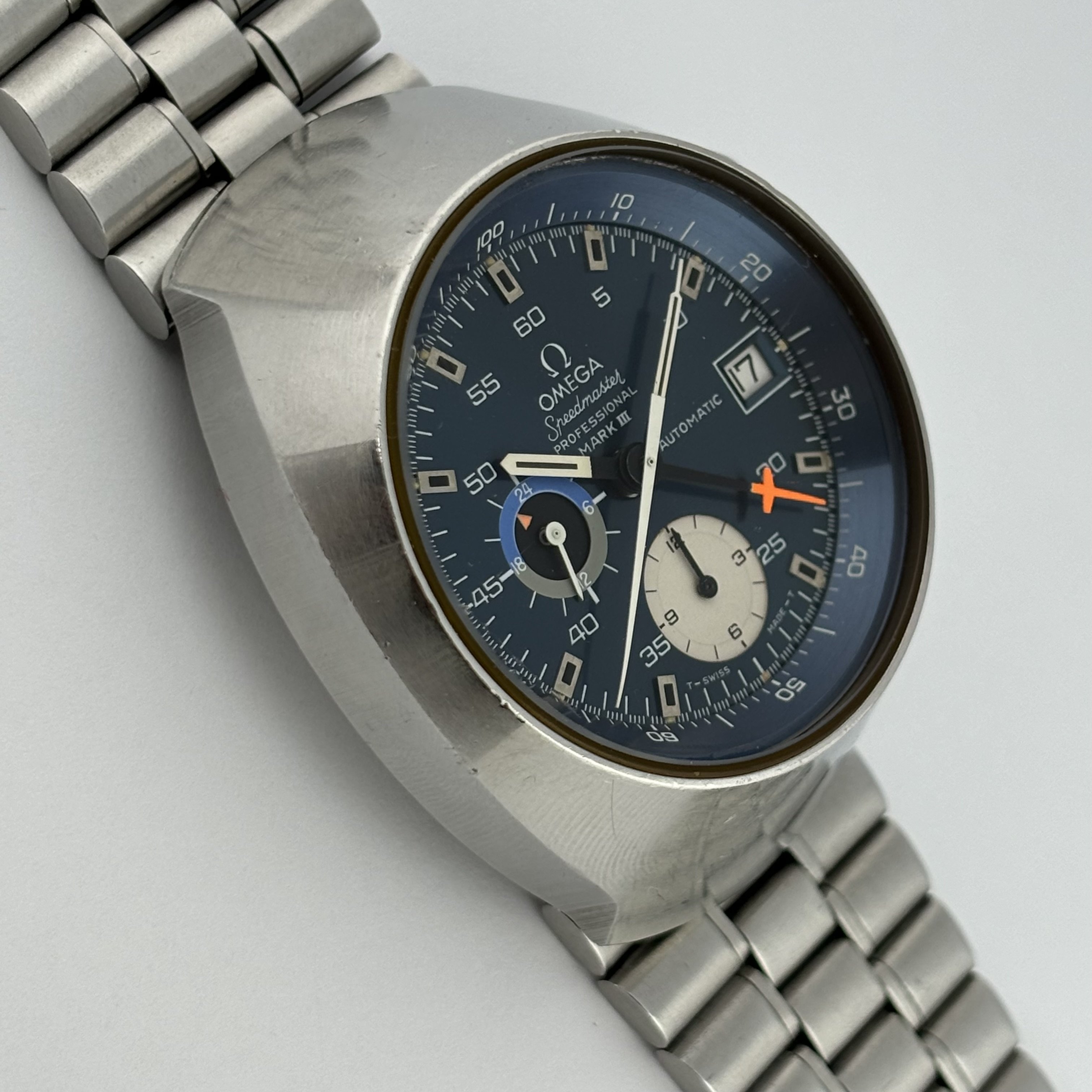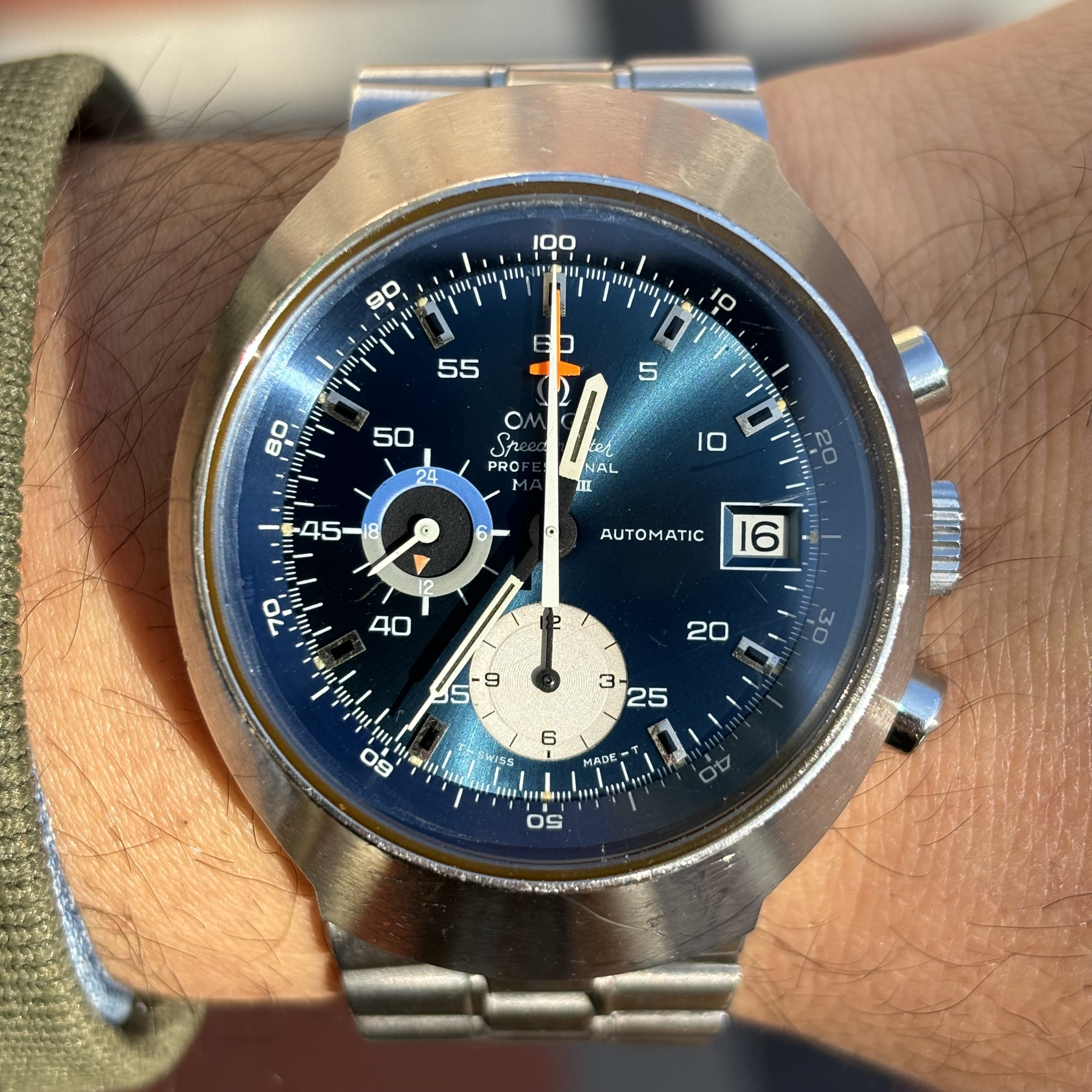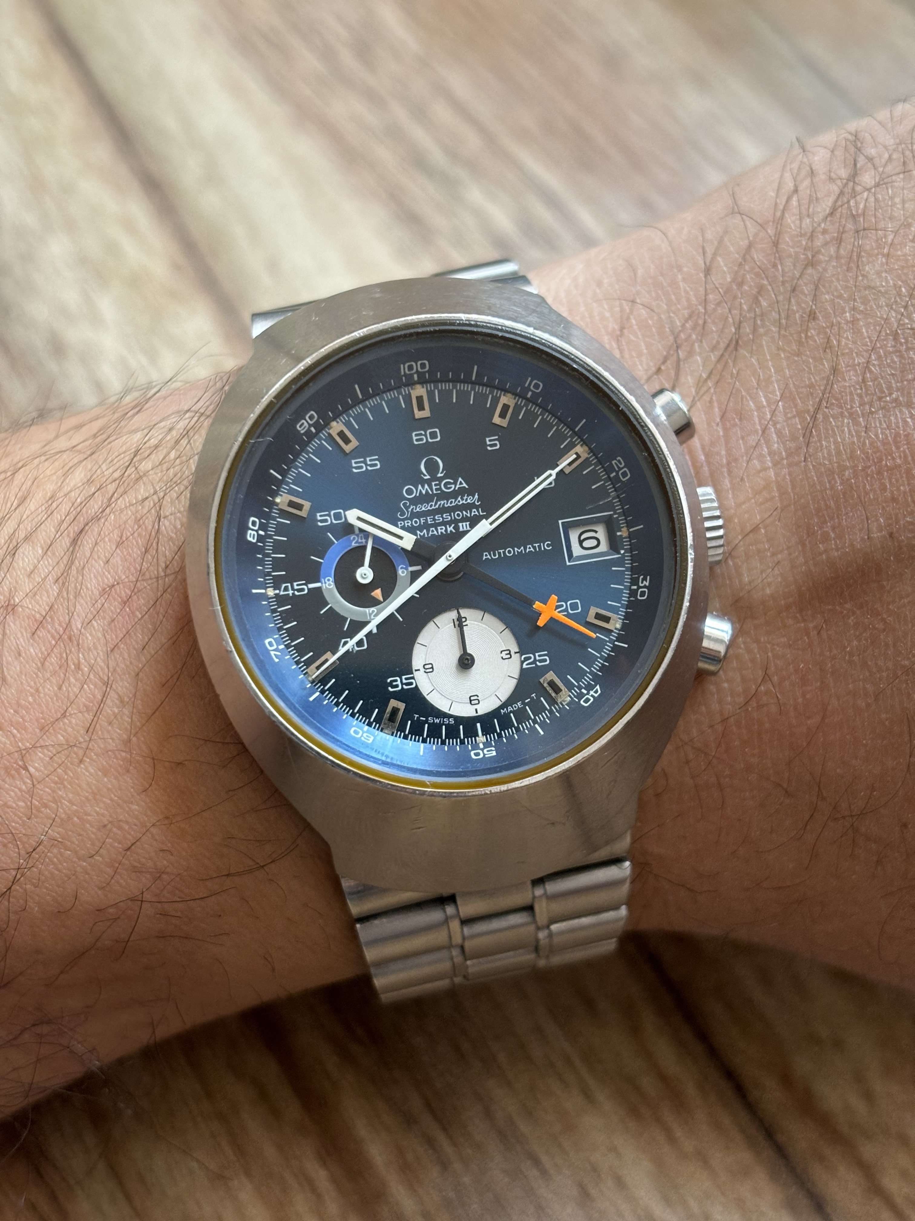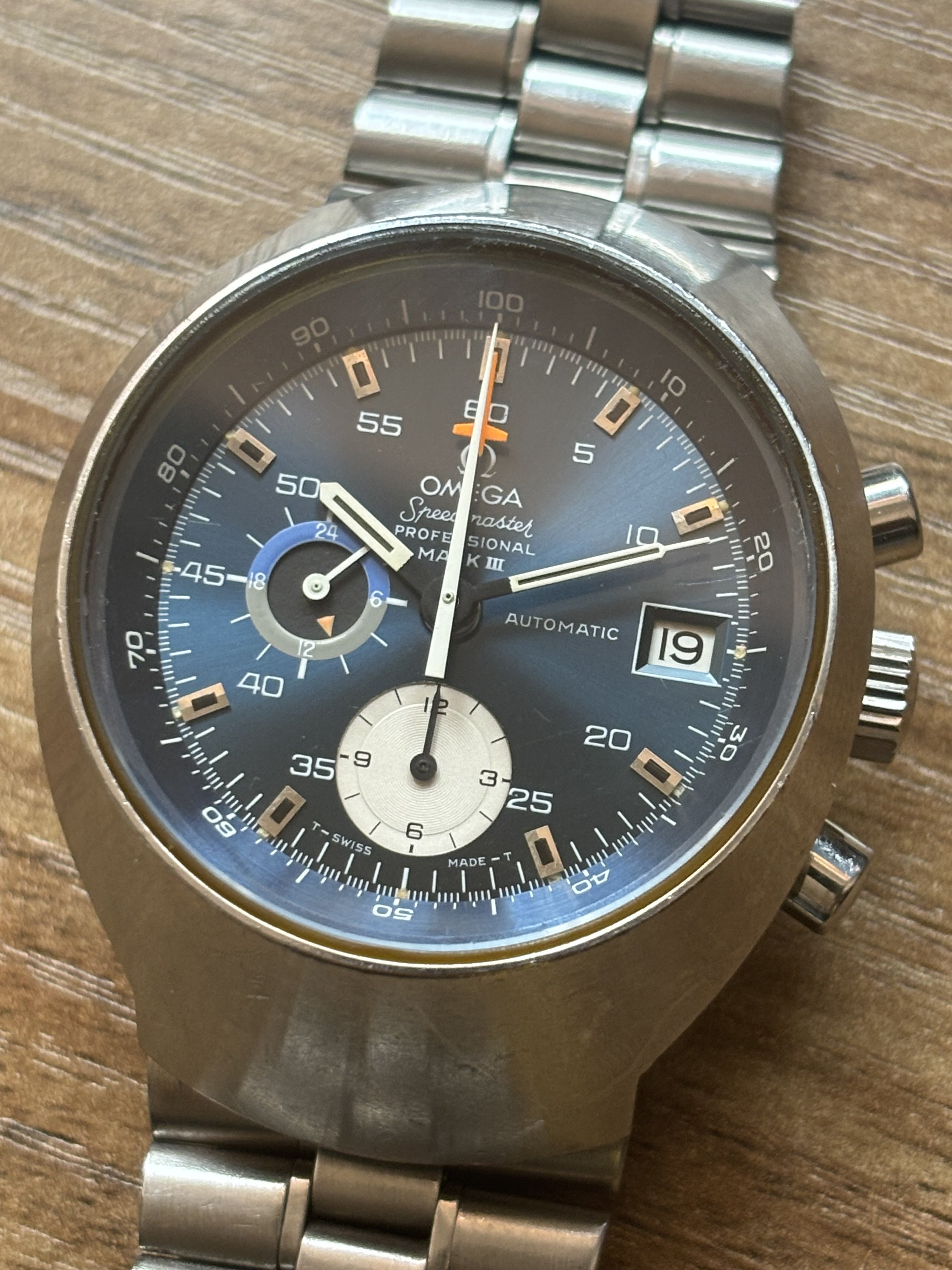 I have been collecting Omega with the so called “pilot” case for years, now since I am focusing on other models I am letting some go to a new home. So, here for sale my Speedster MK III with a great blue dial.